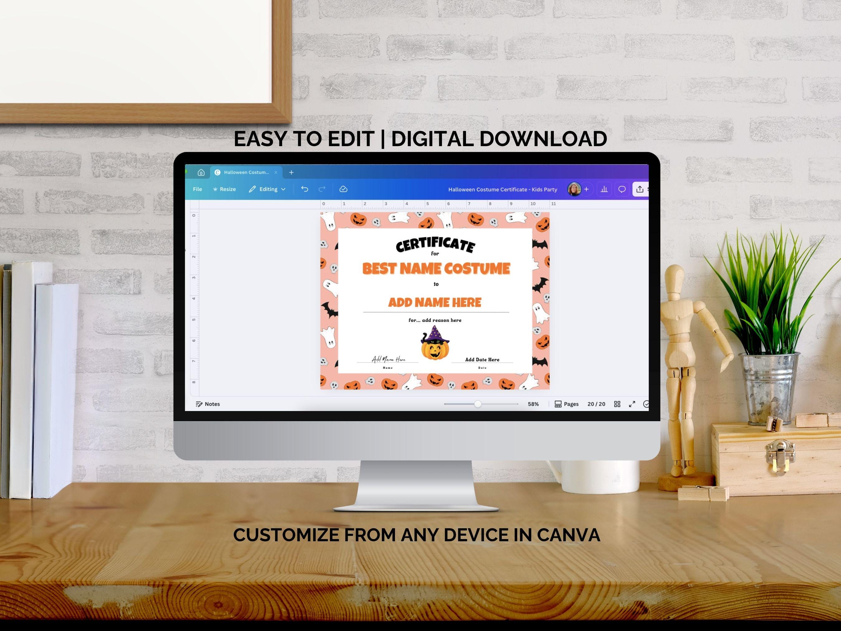 HOW TO GET YOUR FILE Add to cart – Select this spooky bundle and complete your checkout. Access your files – After purchase, you’ll have instant access to Etsy’s downloads page. You can also find your files anytime by going to Your Purchases. Download and save – Save the files to your computer for easy access. Customize in Canva – Use Canva, a free and user-friendly design tool, to edit the names and dates to the certificates. Or create your own award name to make it uniquely yours! Print and share – Print your certificates at home or through a professional printing service.