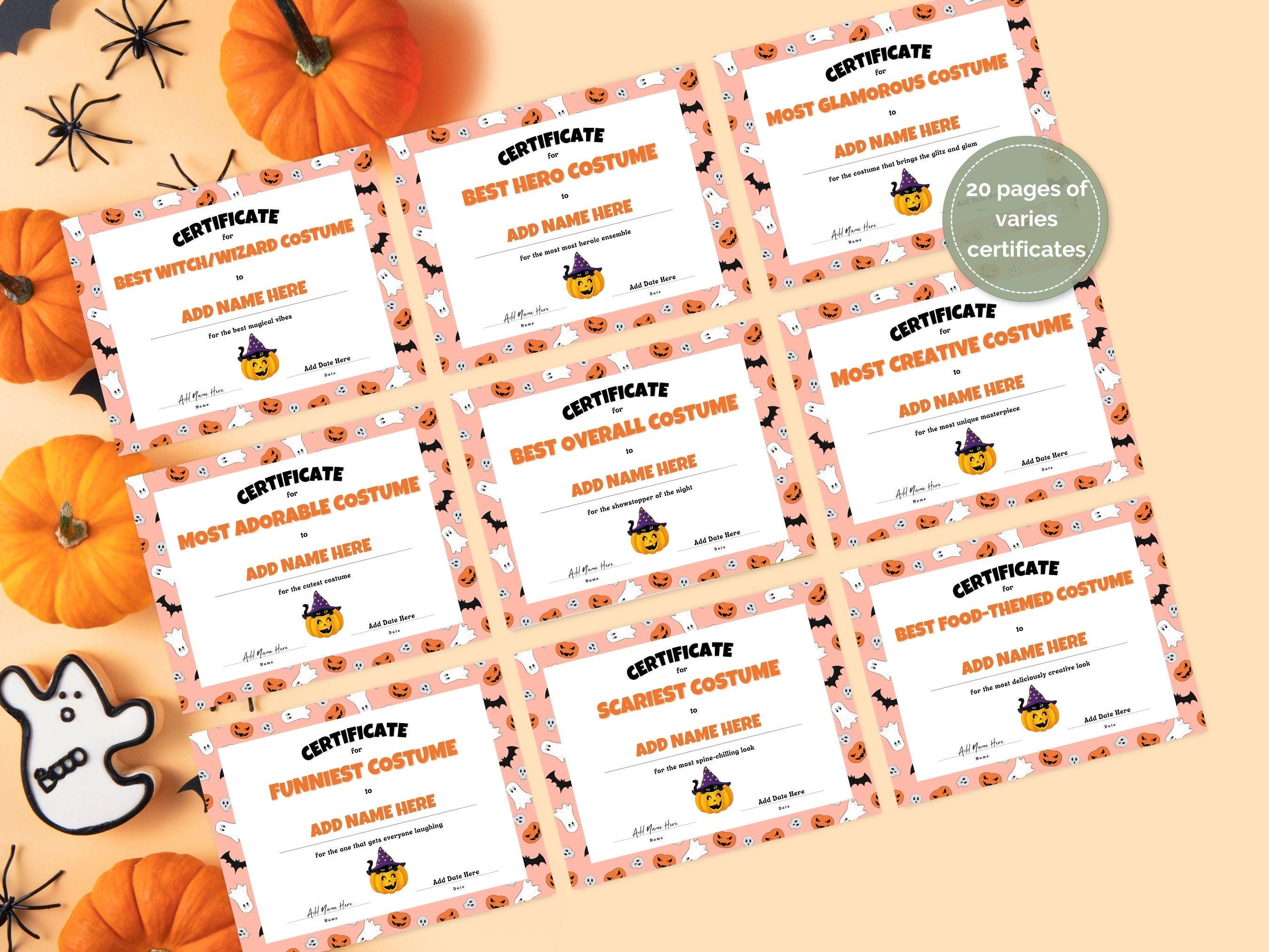 Spook Up Your Party with This Halloween Costume Certificate Bundle! 🎃👻 Get ready to add some ghoulishly good fun to your Halloween celebrations with this bundle of 20 printable costume awards! From the eerie to the hilarious, this set has something for everyone. Perfect for parties, contests, or classroom activities, these certificates will make your event a hauntingly memorable occasion.