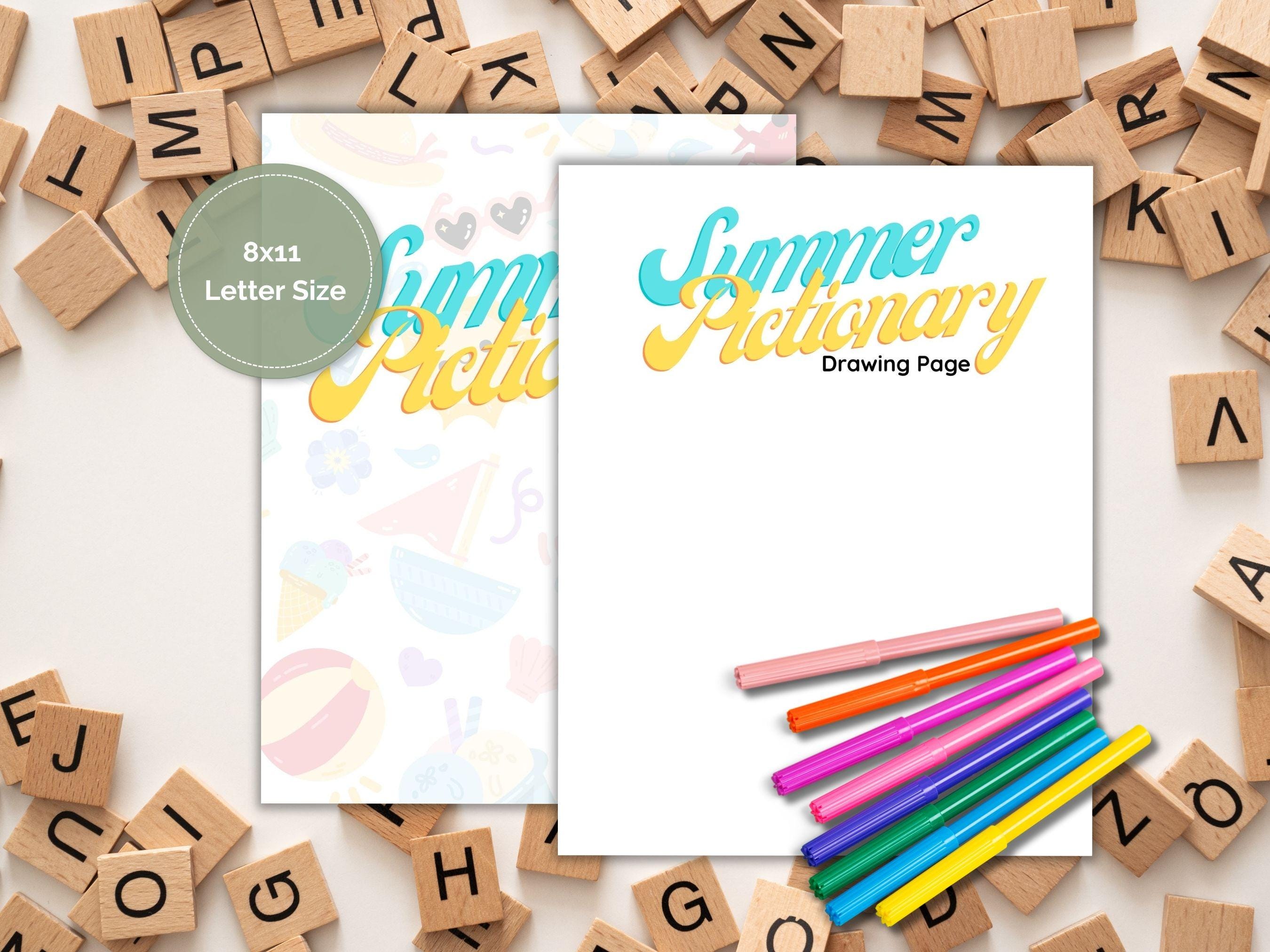 Pictionary: Creative drawing and guessing games inspired by sunny activities and objects.