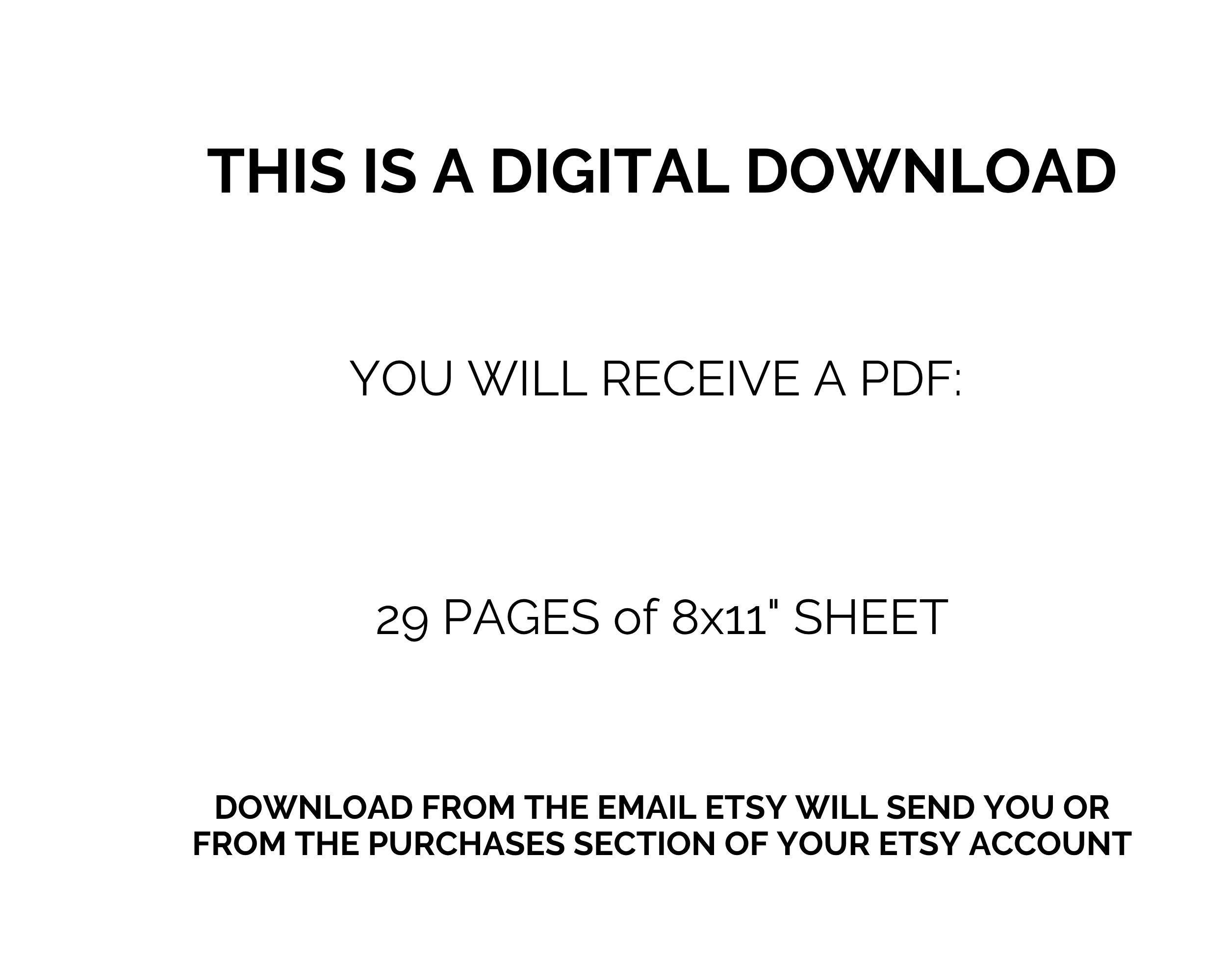 Access your files instantly through Etsy. After purchase, you’ll be directed to a download page, and files will also be available in your Purchases section (www.etsy.com/your/purchases).