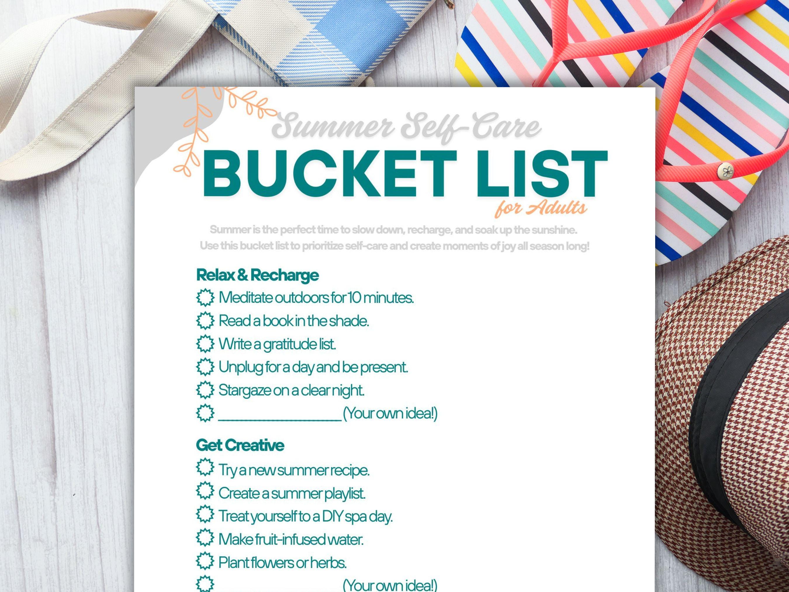 Summer Self-Care Bucket List for Adults – Relaxing, Creative, and Mindful Activities to Recharge This Summer! 🌞