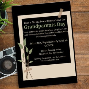 Nostalgic Grandparents Day Card: Two 5x7" cards formatted on an 8.5x11" PDF sheet for easy printing.