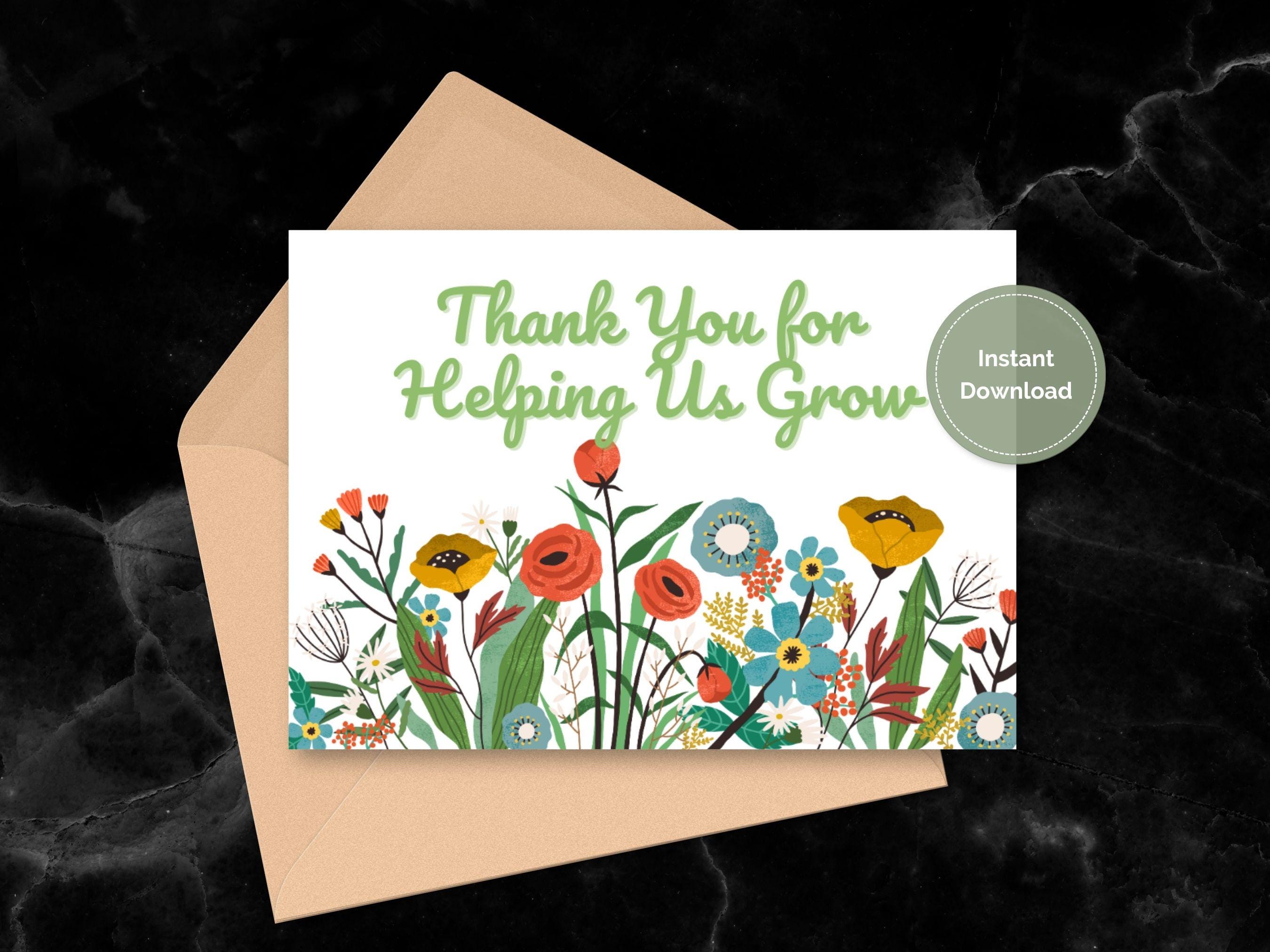 "Thank You for Helping Us Grow" Printable Floral Card Celebrate the special people who nurture, guide, and help us grow with this beautifully designed floral card! Perfect for grandparents, teachers, or anyone who has made a meaningful impact in your life, this card is a heartfelt way to say “thank you.”