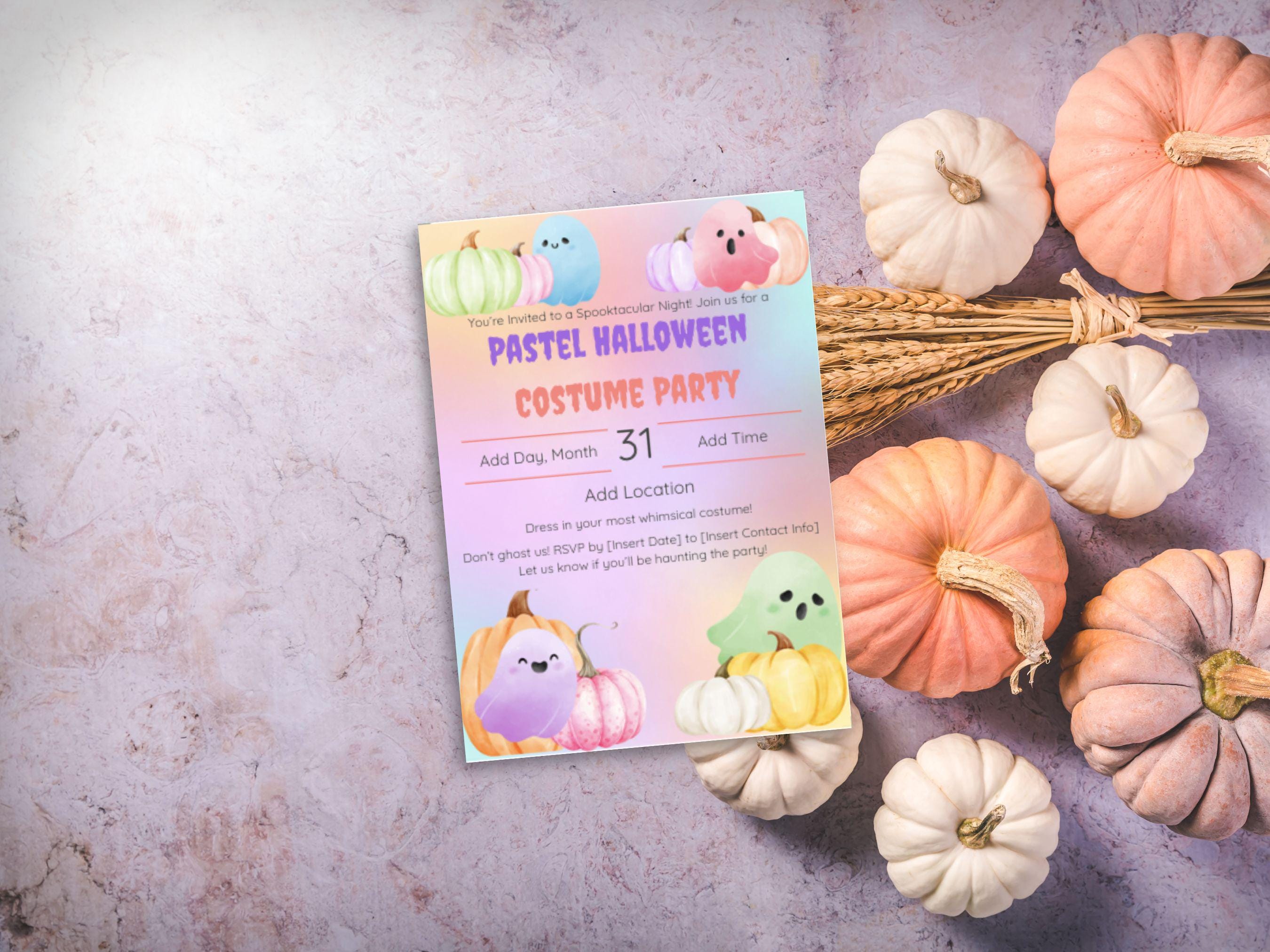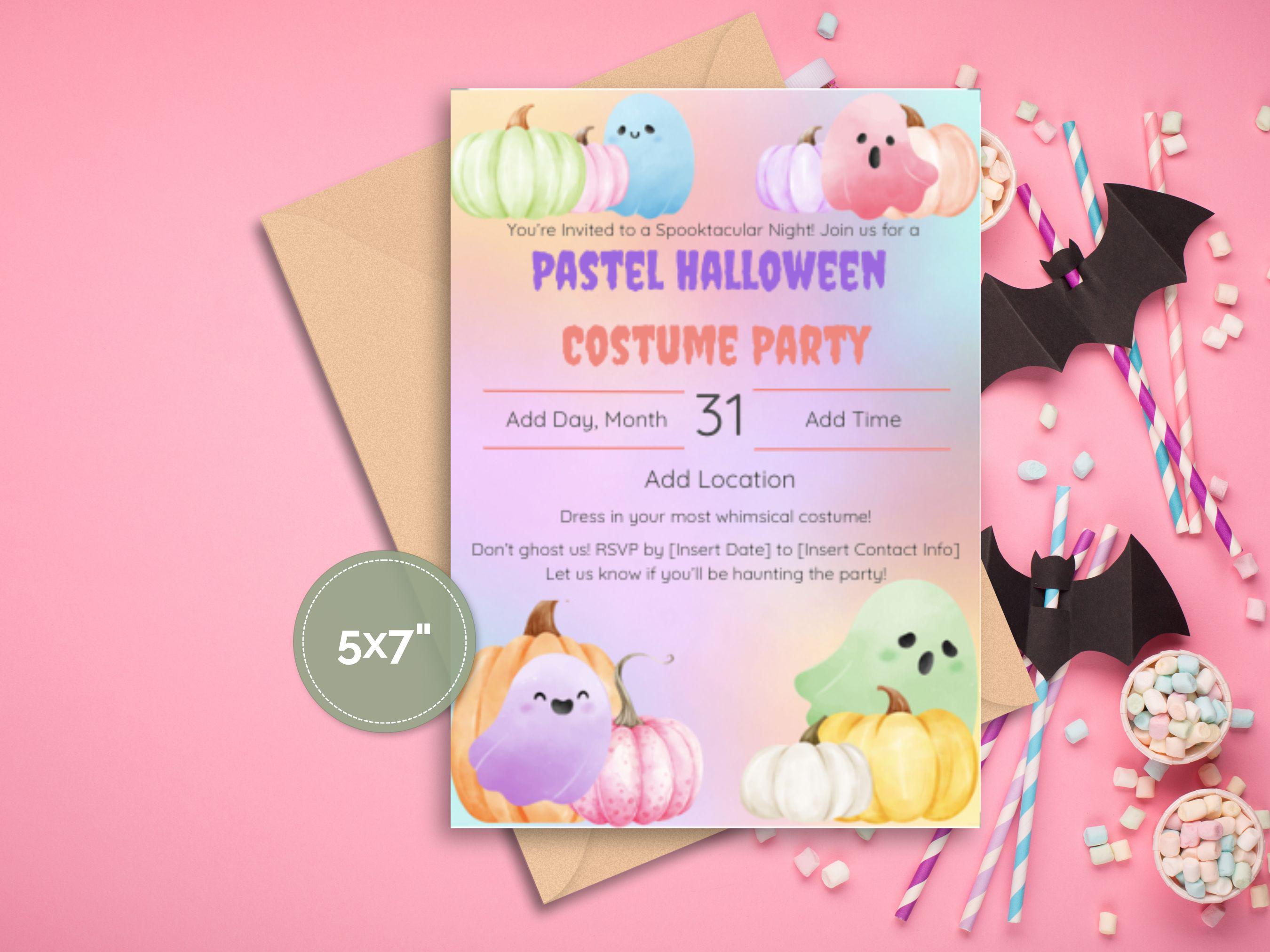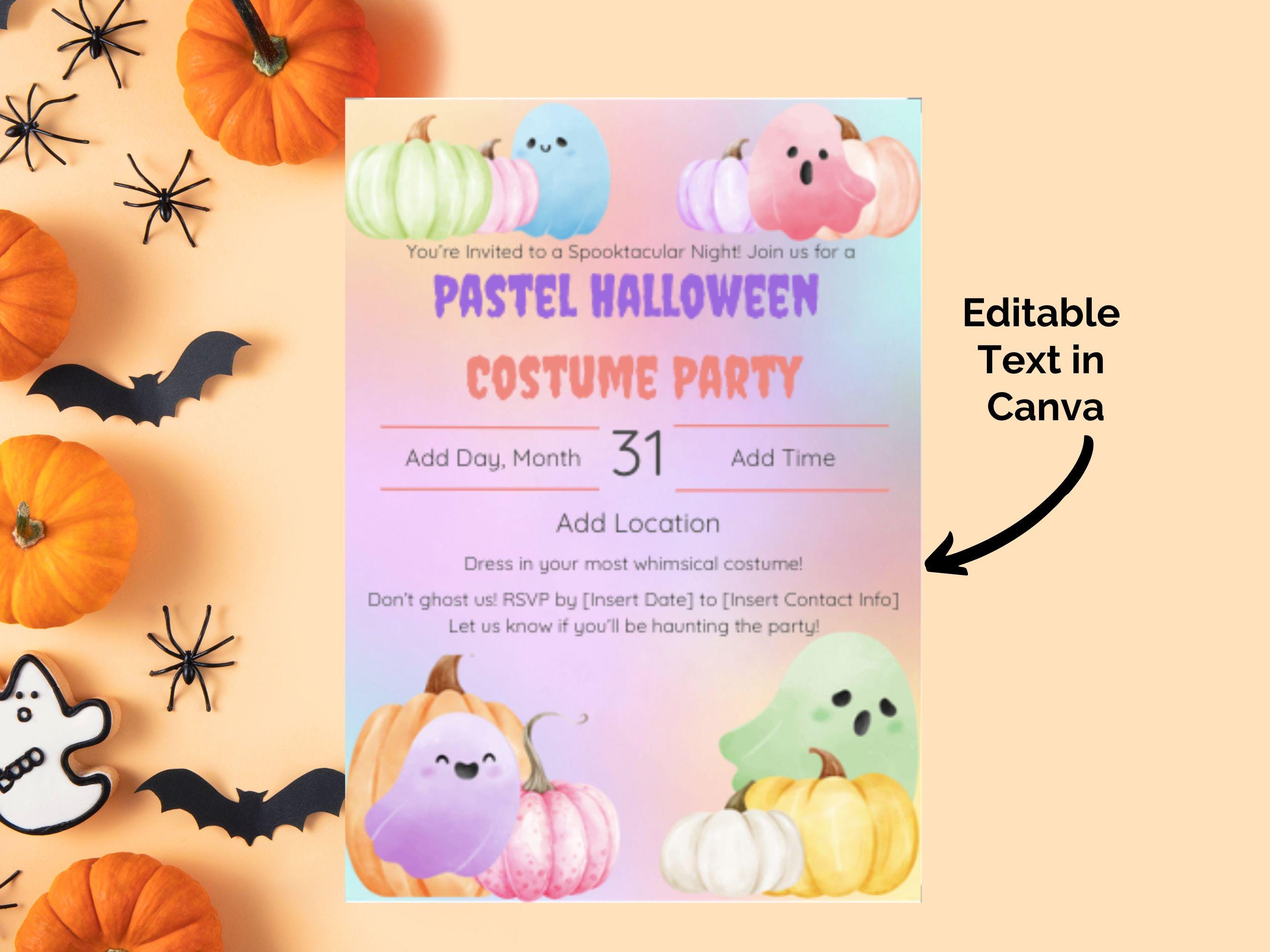 Editable Pastel Halloween Party Invitation Template Make your Halloween celebration extra enchanting with this Editable Pastel Halloween Party Invitation Template! Perfect for a whimsical costume party, this template is designed to bring a lighthearted and charming touch to your spooky soirée. With its pastel hues and playful details, it’s an ideal choice for hosts looking to stand out with a fun, family-friendly theme.