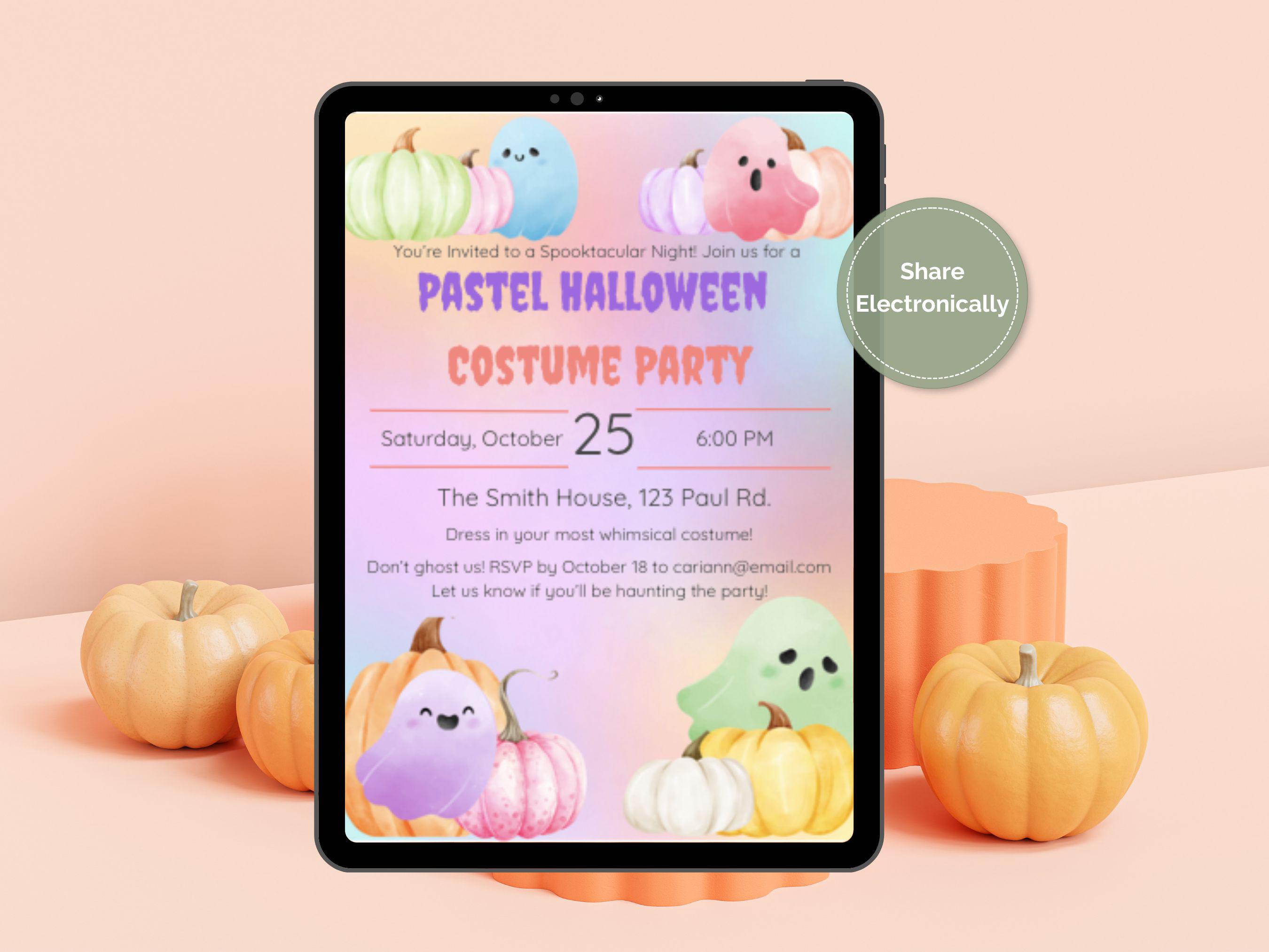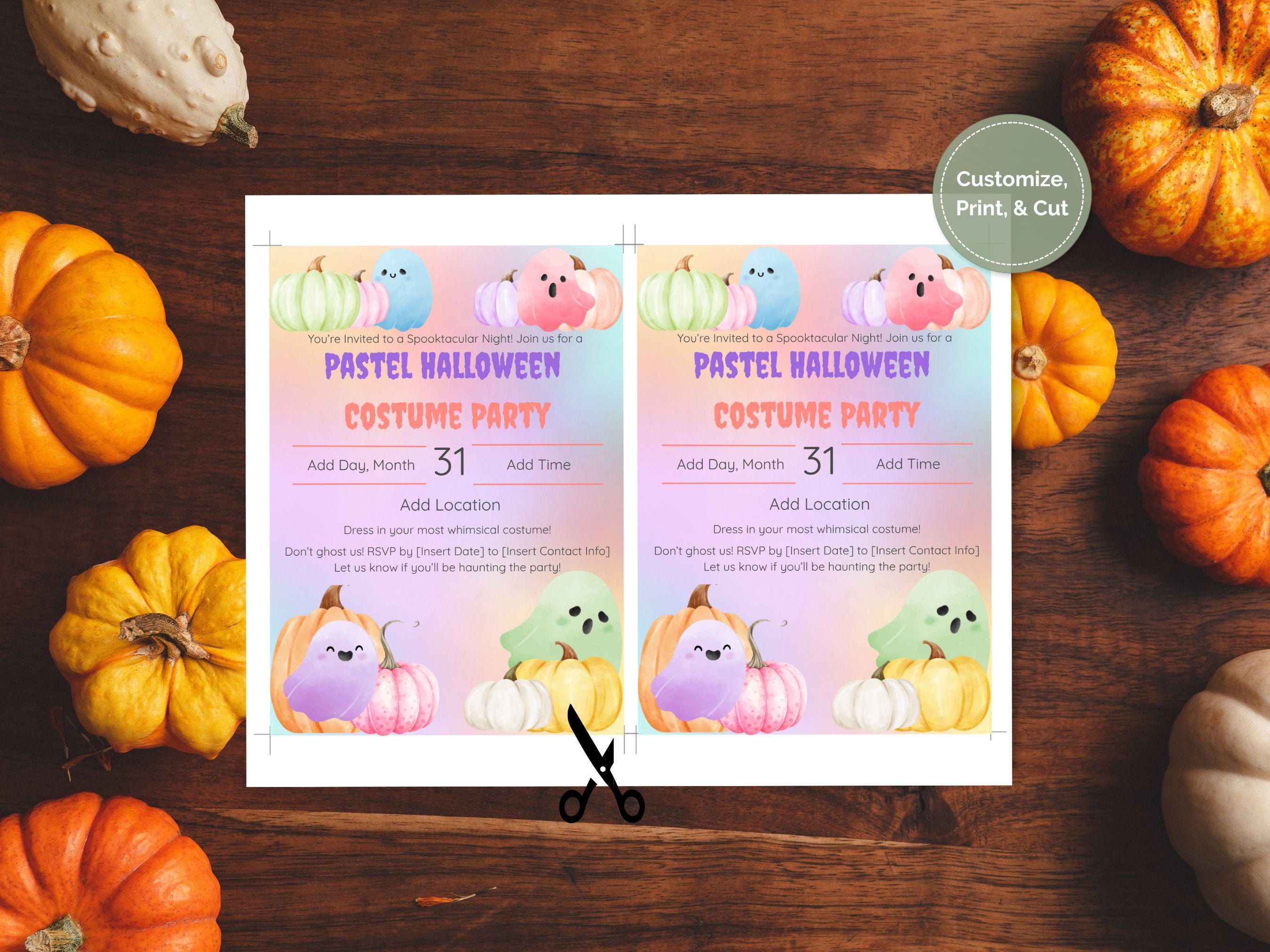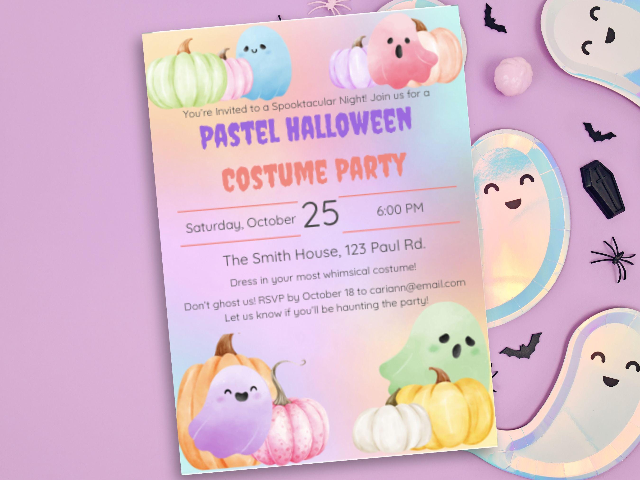 Editable Pastel Halloween Party Invitation Template Make your Halloween celebration extra enchanting with this Editable Pastel Halloween Party Invitation Template! Perfect for a whimsical costume party, this template is designed to bring a lighthearted and charming touch to your spooky soirée. With its pastel hues and playful details, it’s an ideal choice for hosts looking to stand out with a fun, family-friendly theme.