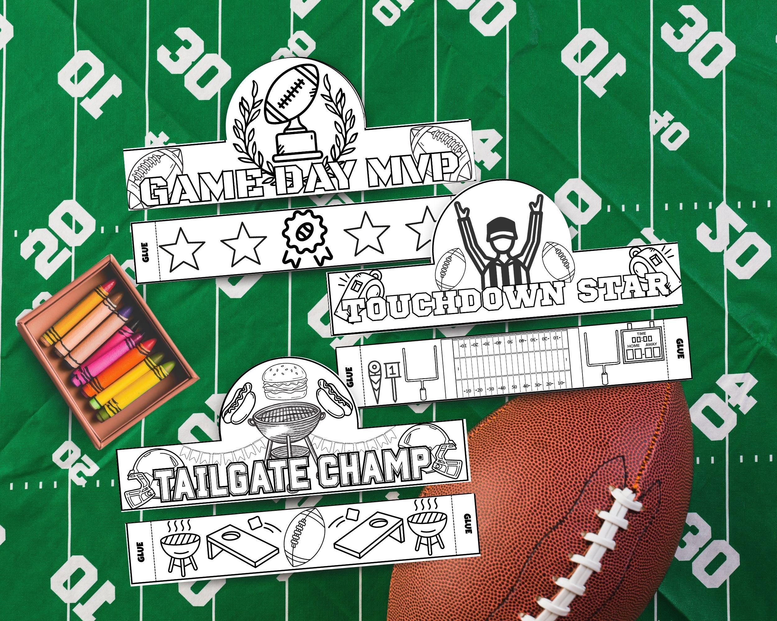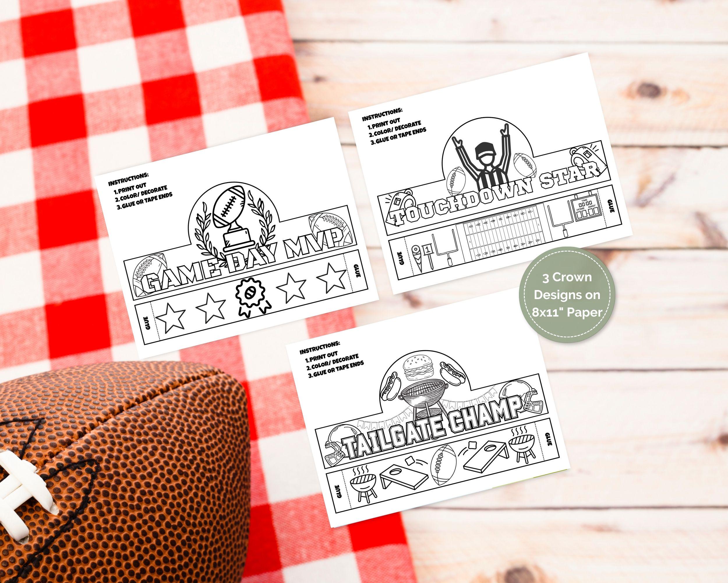 Set of 3 Printable Football Crowns - Game Day Coloring Activities for Kids Bring excitement, creativity, and football spirit to your next event with our Set of 3 Printable Football Crowns! Perfect for kids and sports fans alike, this bundle includes three unique designs — Game Day MVP, Touchdown Star, and Tailgate Champ — making every child feel like a champion.