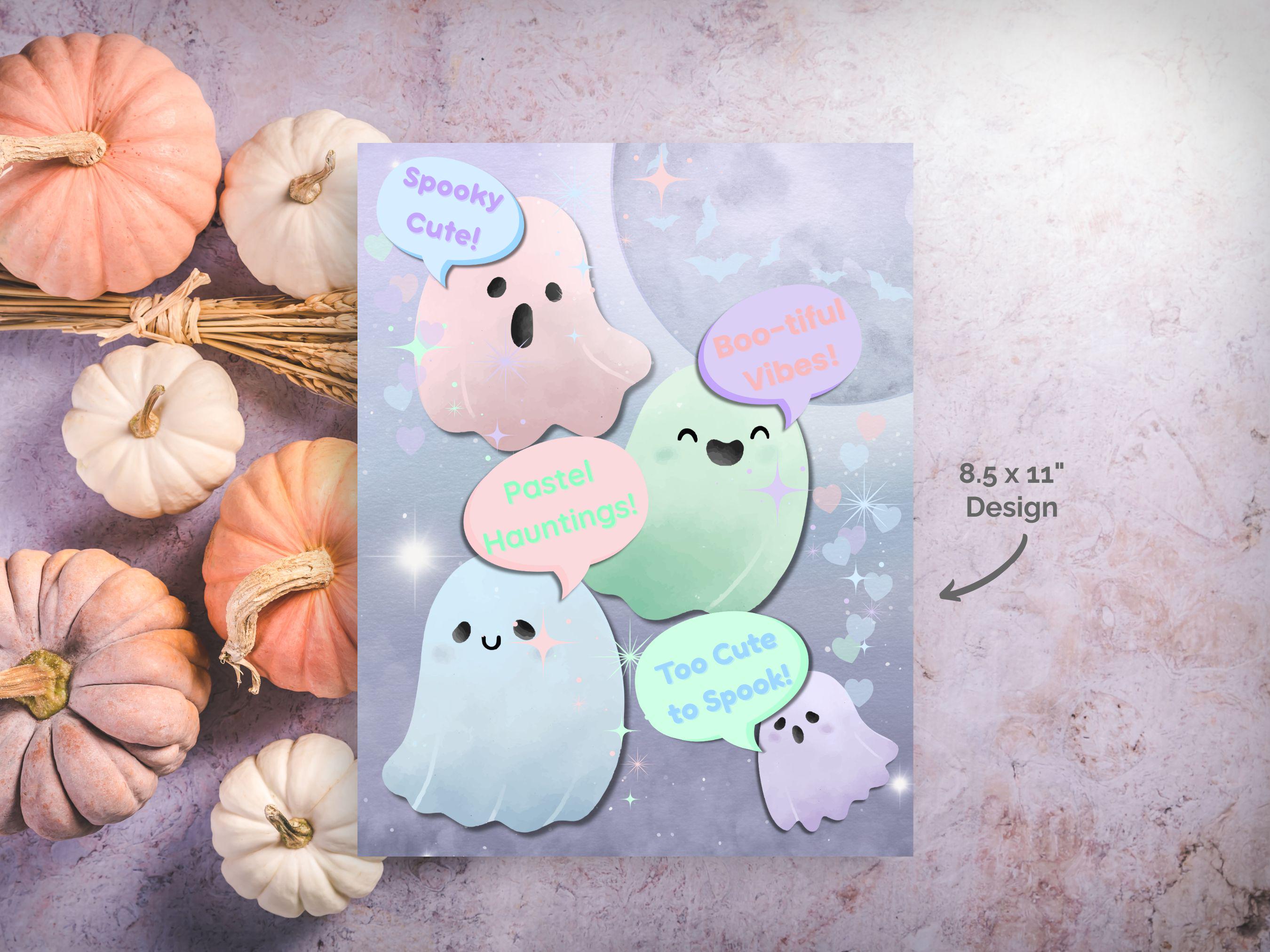 Why You’ll Love It: Kawaii Aesthetic: Cute, non-spooky ghosts in soft pastel colors make this art ideal for anyone who loves kawaii-style designs. Versatile Decor: Perfect for Halloween parties, kids’ rooms, playrooms, or as year-round decor for pastel lovers. Convenient Size: Designed at 8.5x11 inches, making it easy to print at home or through a professional service. Digital Download: Instant gratification—just download, print, and display! No need to wait for shipping.