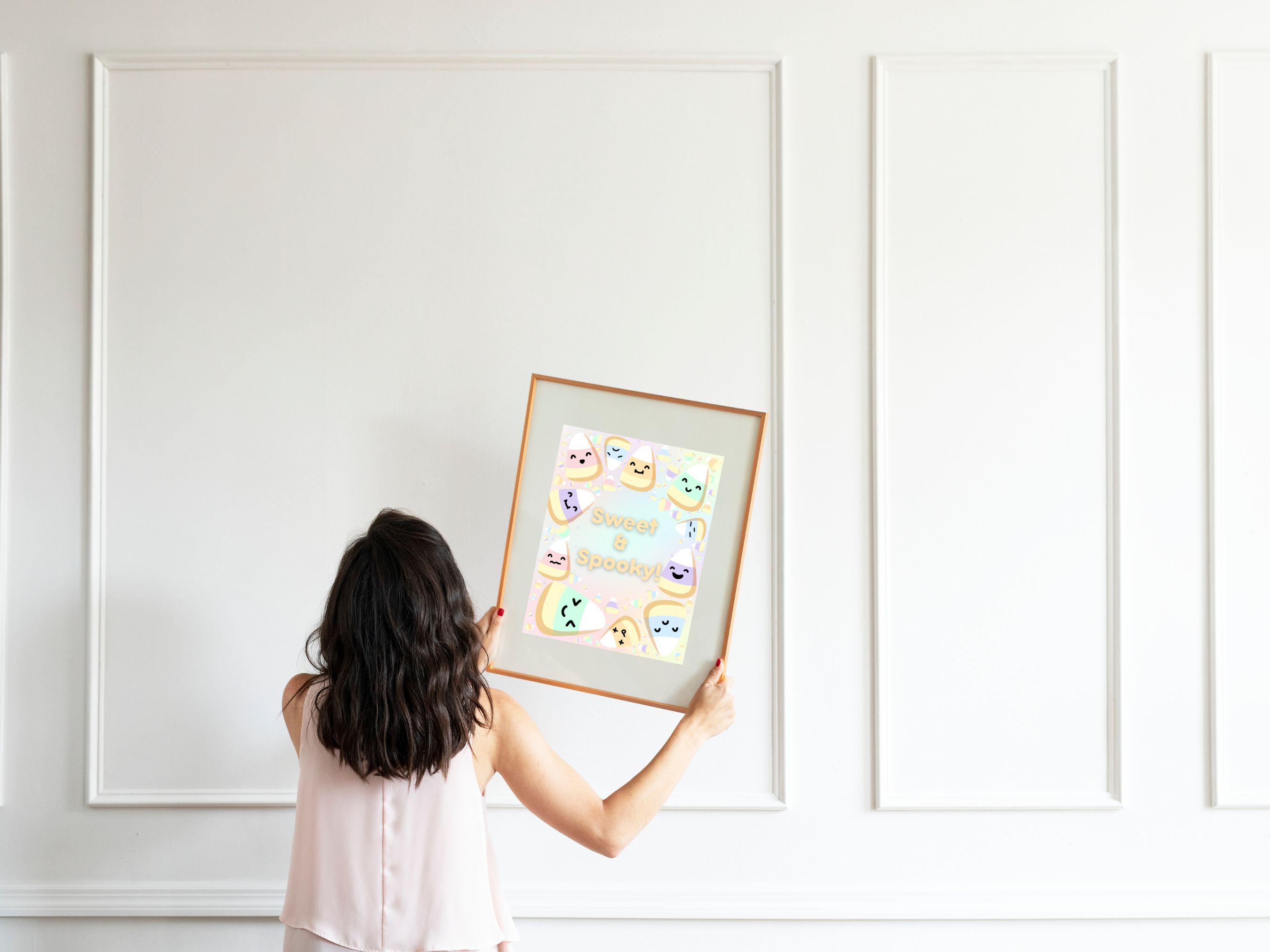 Fun Uses for Your Sweet & Spooky Art Kids’ Halloween Spaces: Create a friendly, not-too-scary setting in children’s bedrooms or playrooms. Party Décor: Spotlight this pastel candy corn art as part of your Halloween party decorations for a unique and whimsical vibe. Seasonal Accent: Add a subtle autumnal charm to your home or workspace without the usual dark, traditional Halloween tones. Easy-to-Print Perfection Designed at a standard 8.5x11-inch size, this printable Halloween décor is simple to use with most printers. The high-resolution file ensures vibrant colors and stunning details that stand out in any setting.