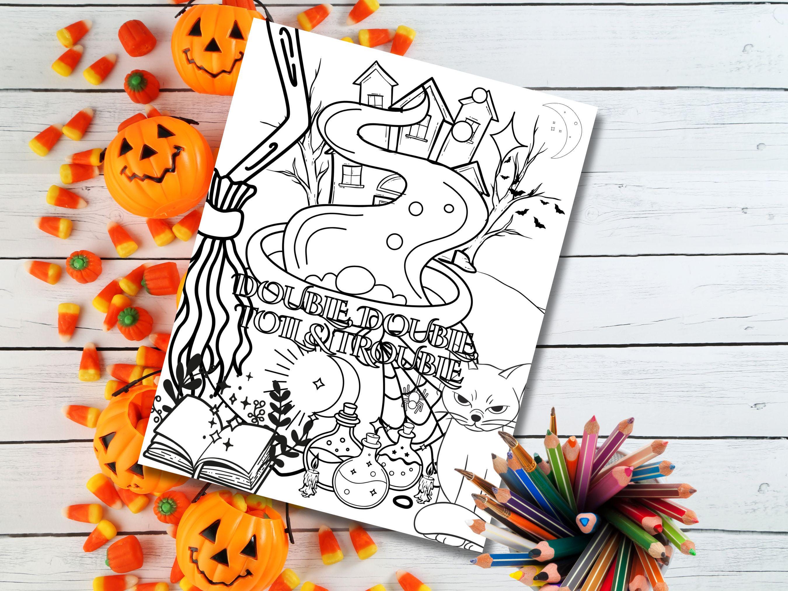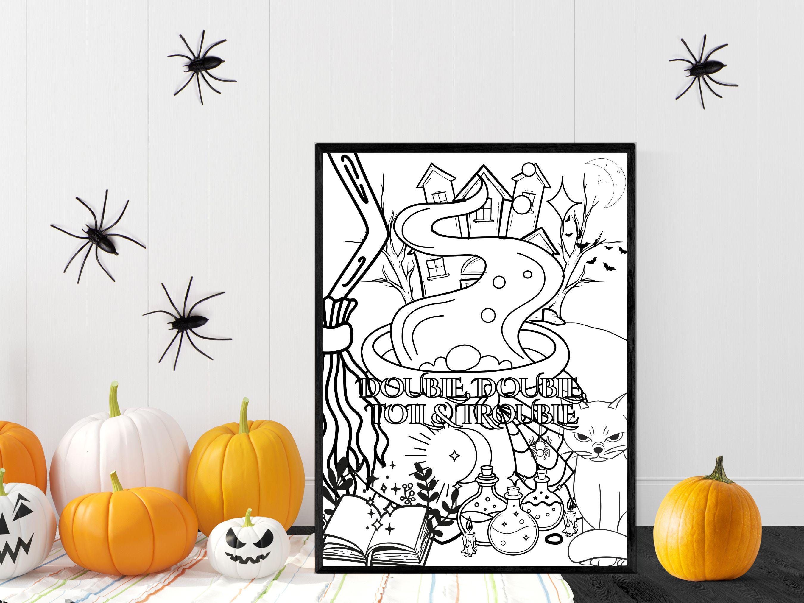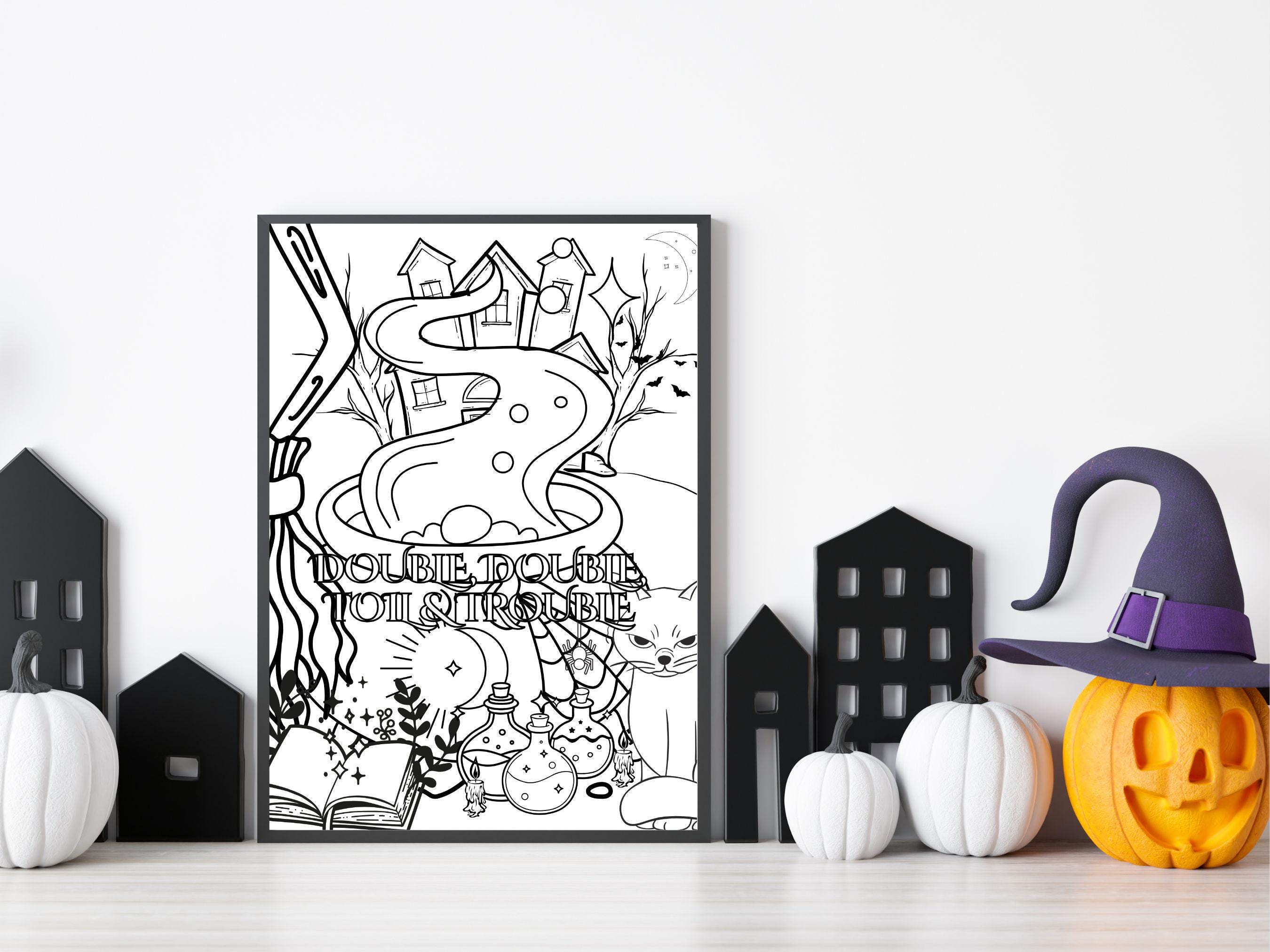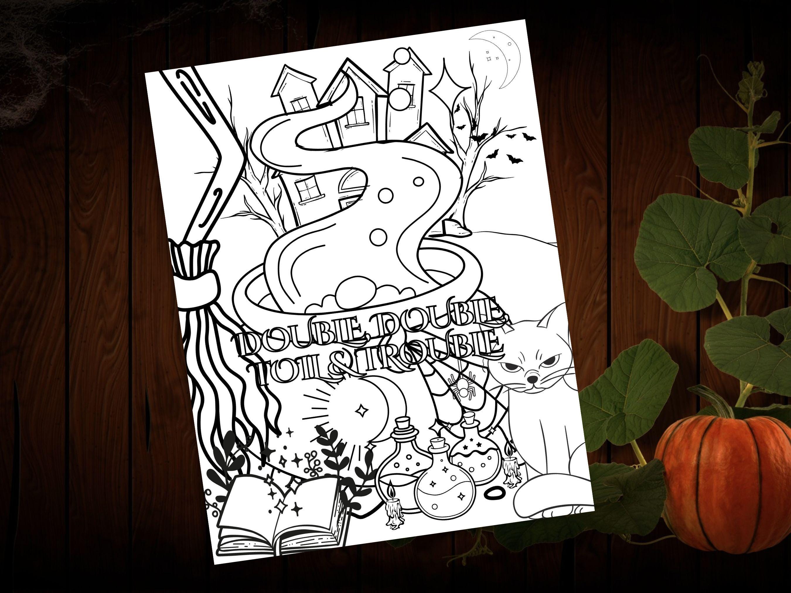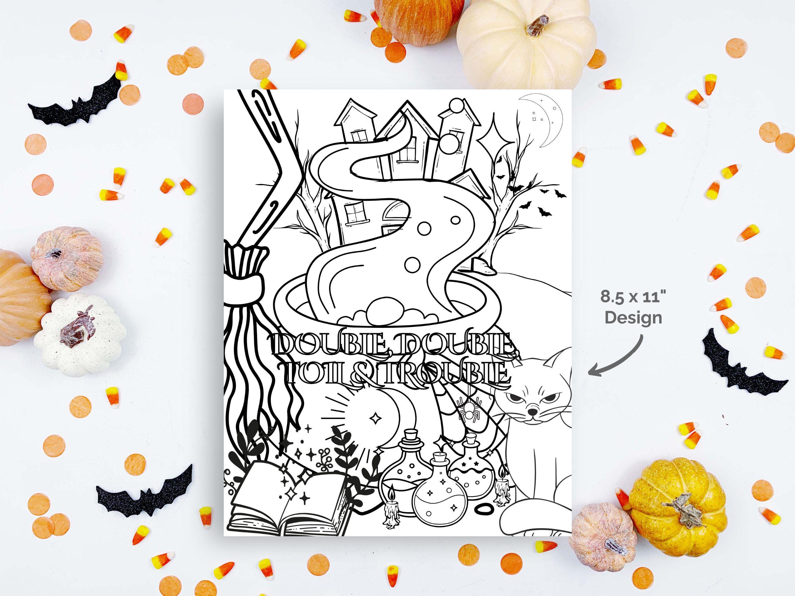 Step into the magical world of witches and spells with this "Double Double Toil & Trouble" printable coloring page! Perfect for Halloween enthusiasts, kids, and adults alike, this 11x8.5" design is packed with enchanting details that will spark your creativity and bring a touch of spooky fun to your holiday season.