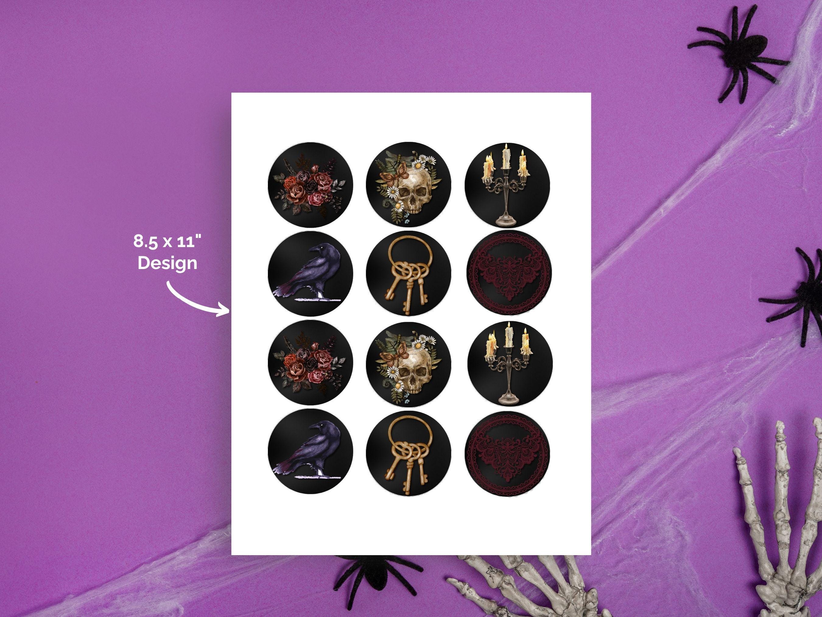 What’s Included: 12 Unique Designs featuring skulls adorned with flowers, black crows, roses in deep reds and pinks, antique keys, intricate lace patterns, and candle-lit candelabras. Printable Format ideal for easy DIY crafting.