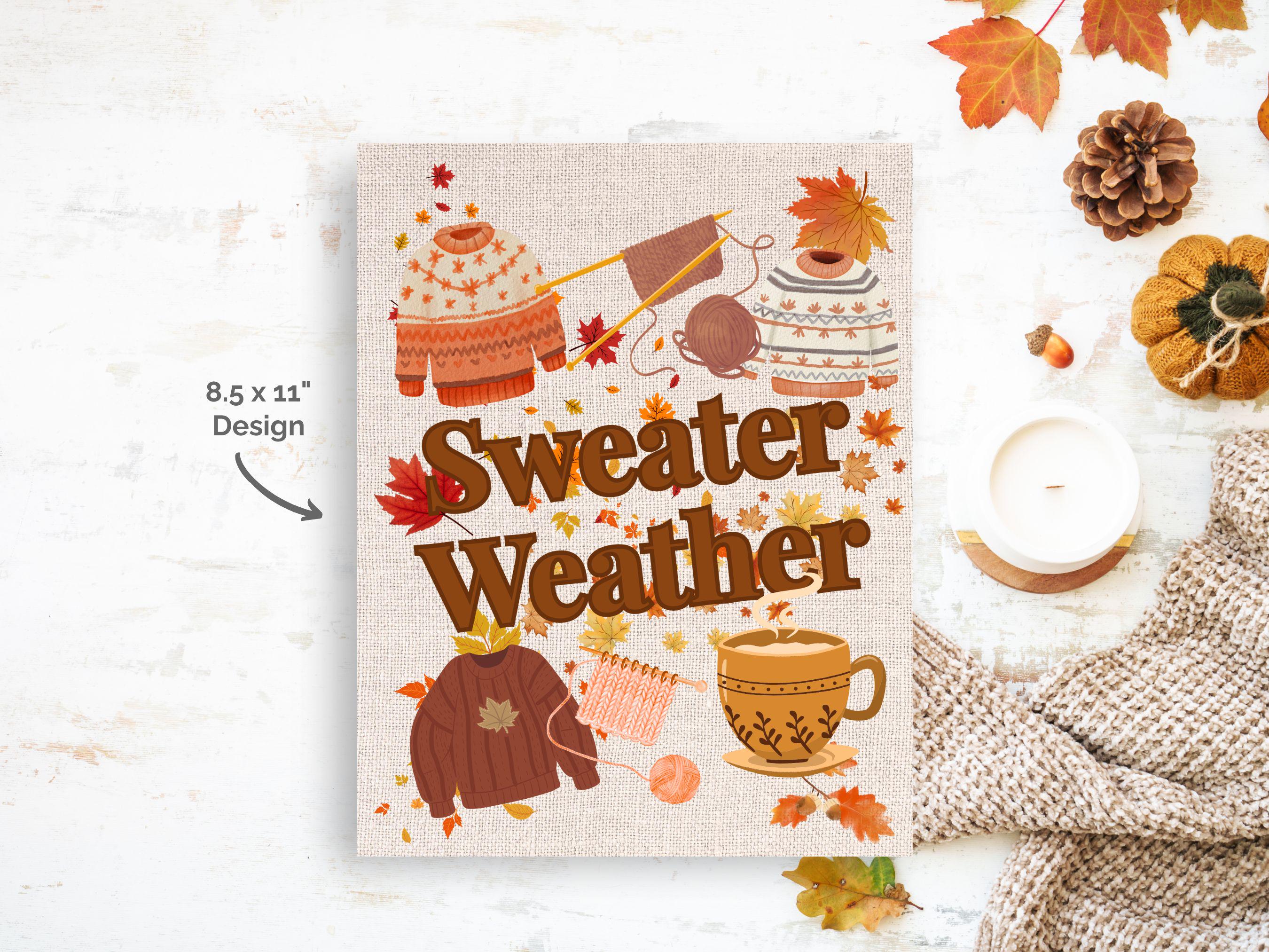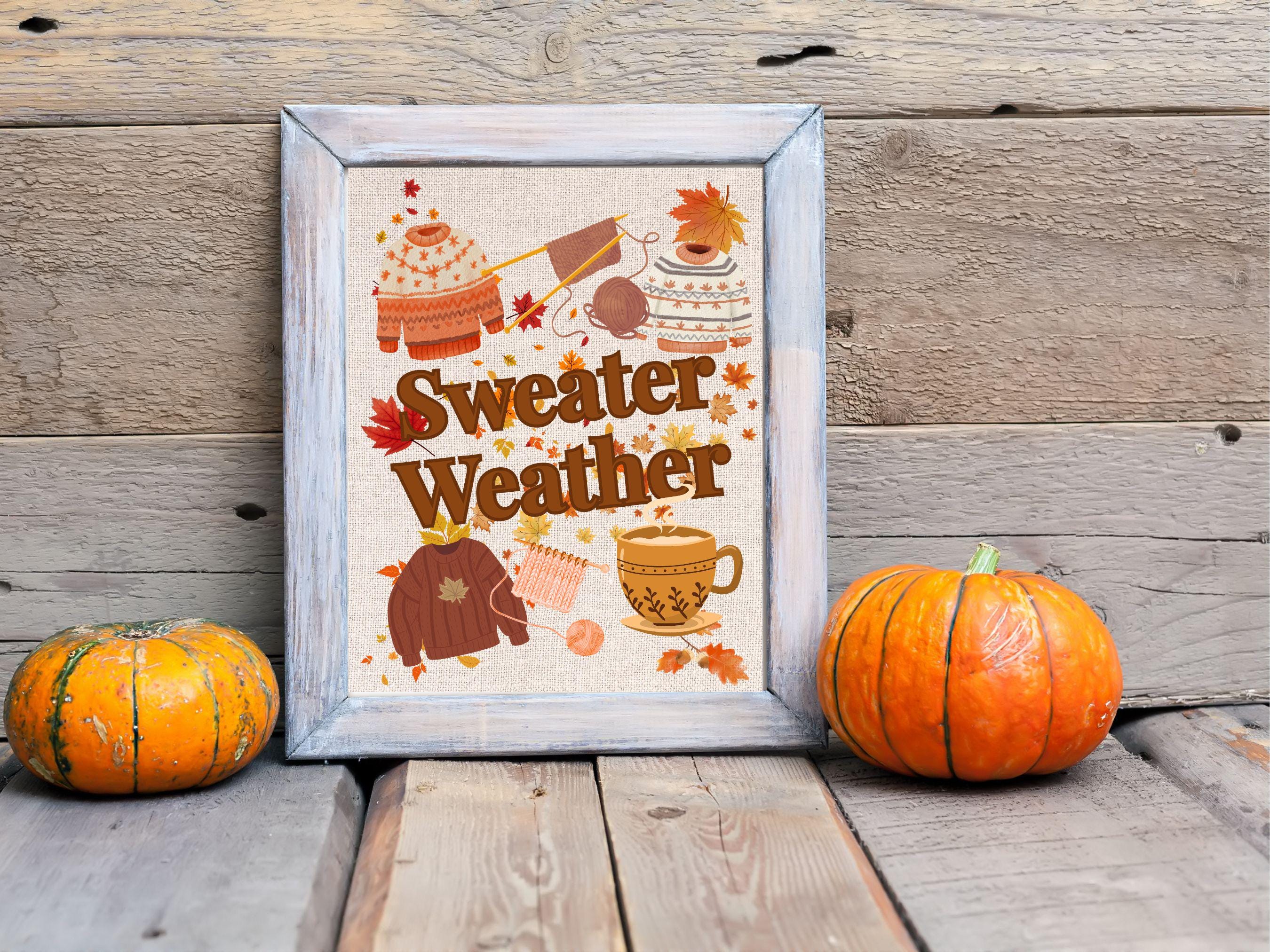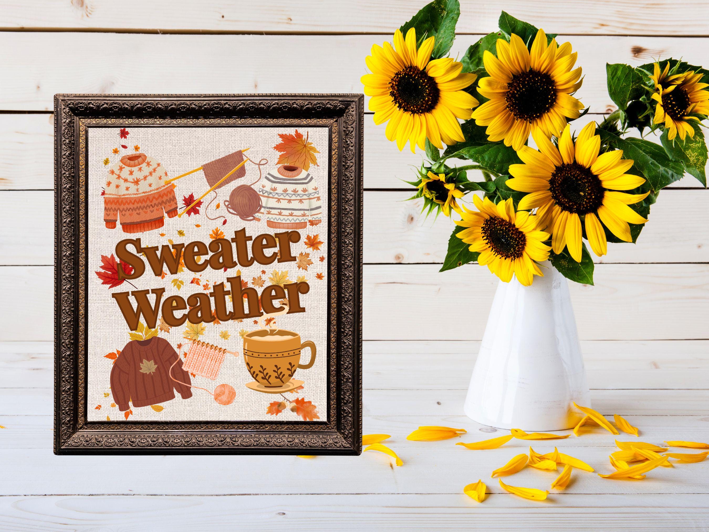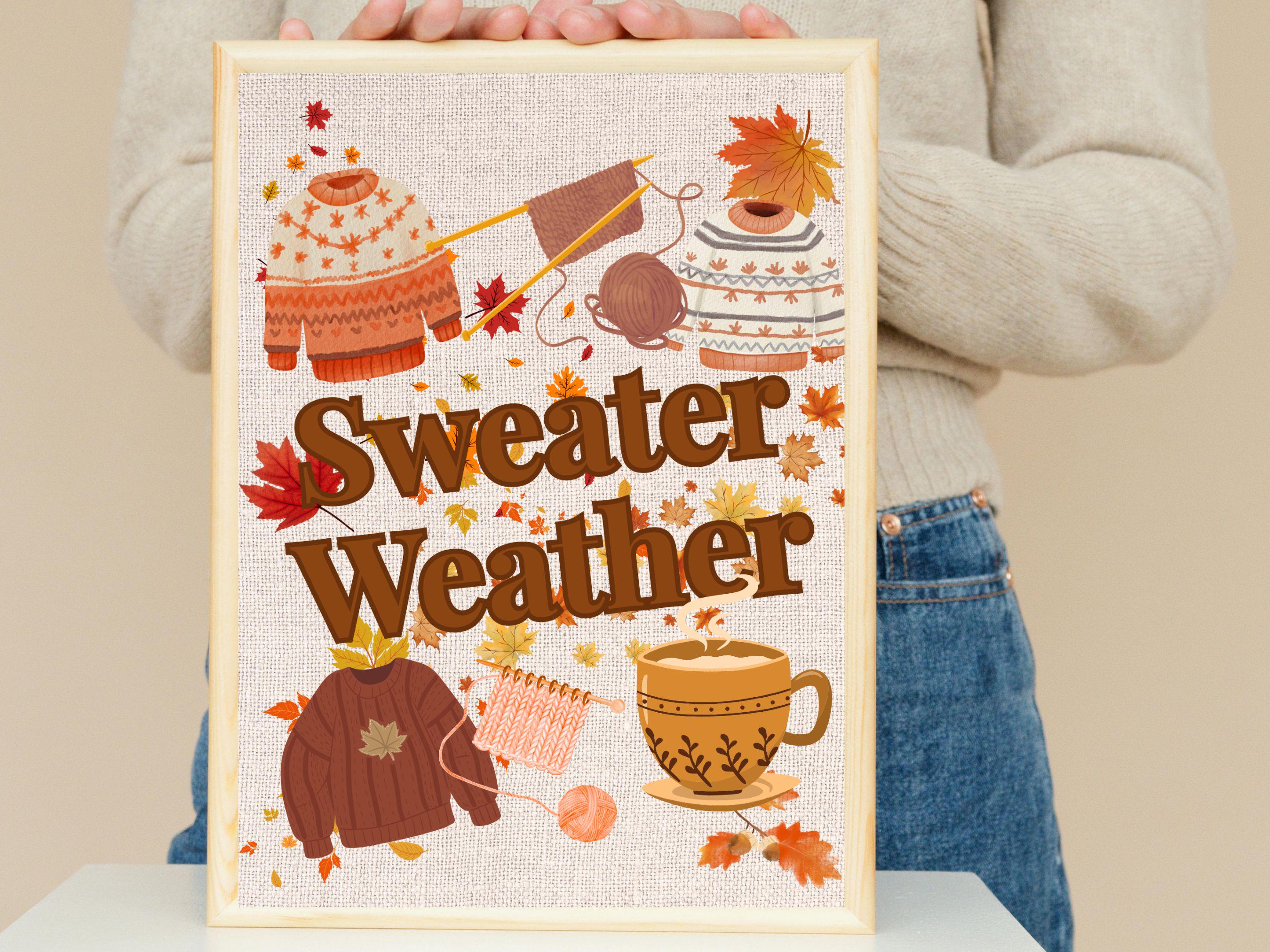 Warm Up Your Space with ‘Sweater Weather’ Wall Art Bring the magic of autumn indoors with our charming ‘Sweater Weather’ wall art! This design captures everything you love about sweater season, combining cozy elements that celebrate the beauty of fall.