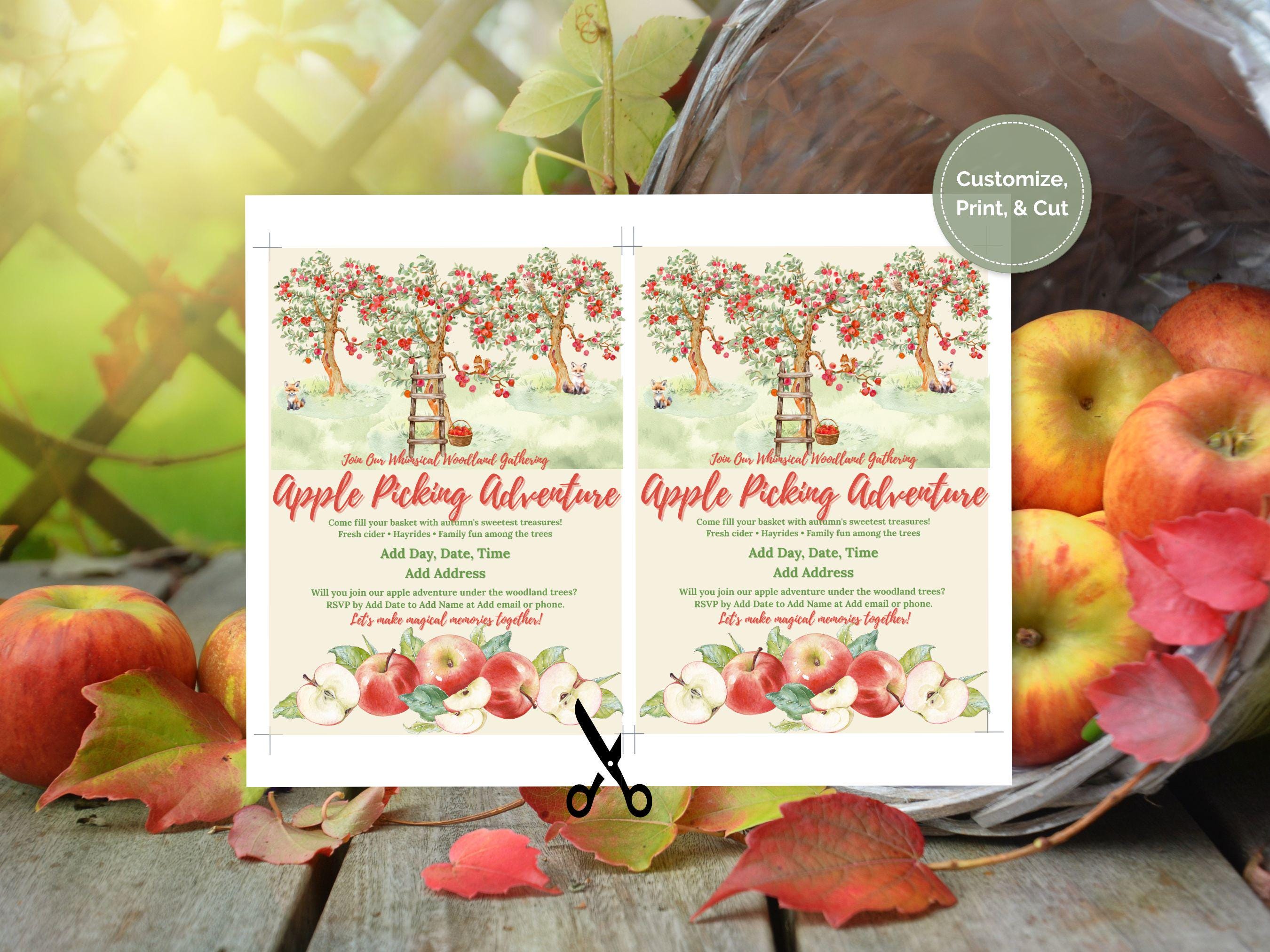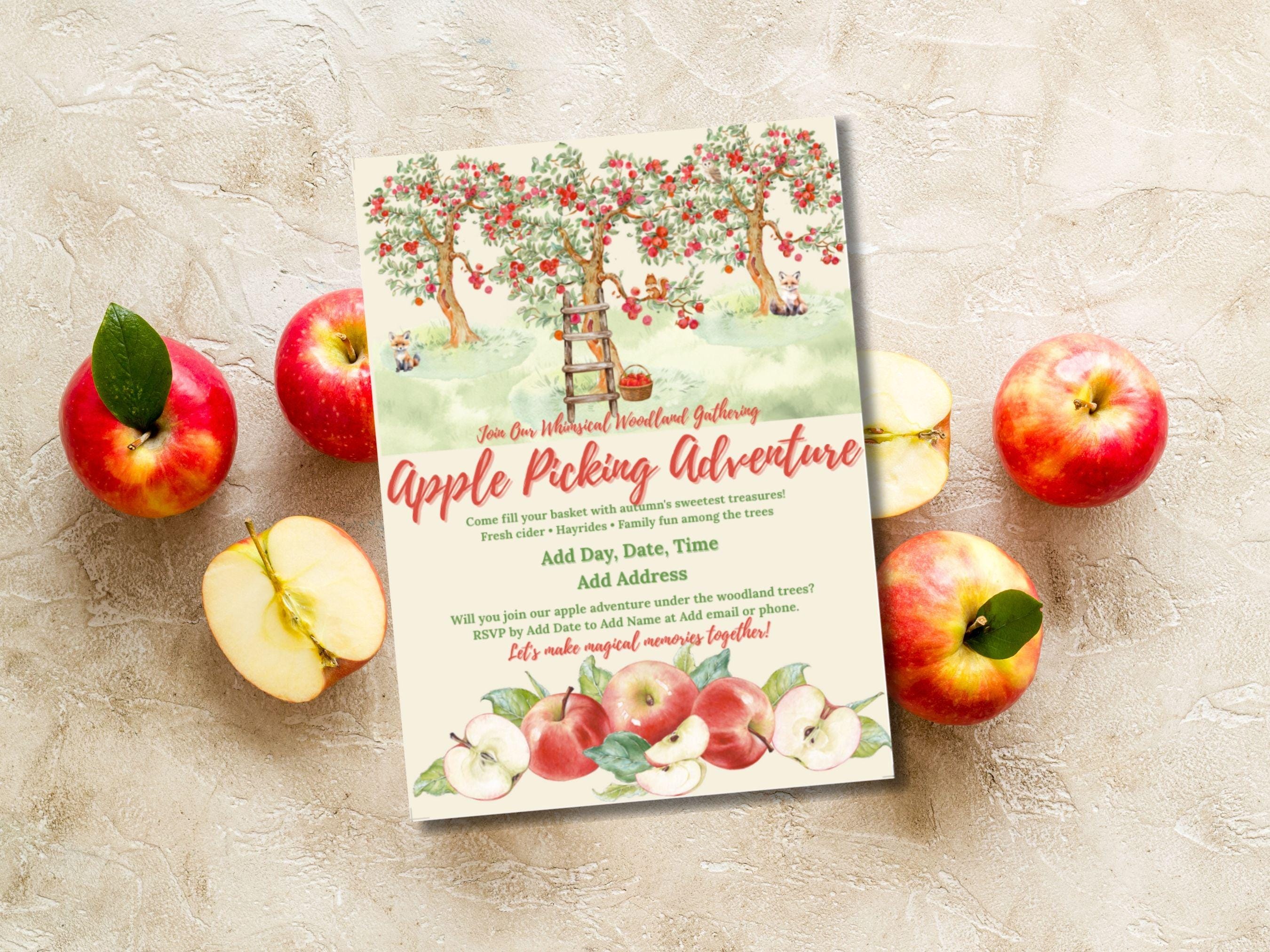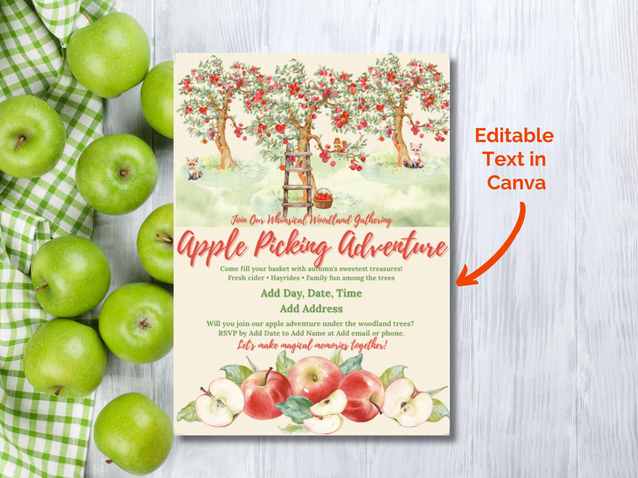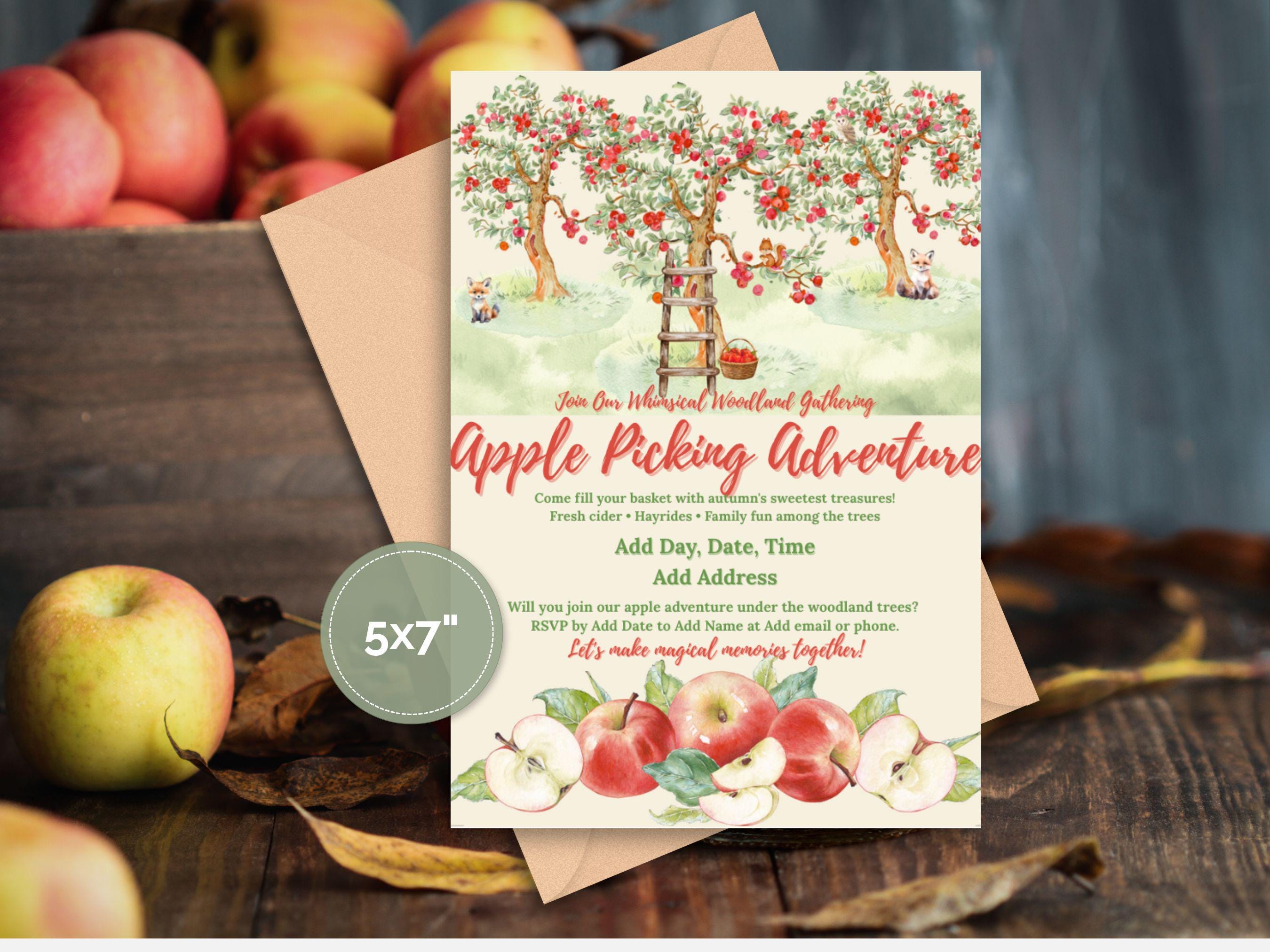Whimsical Woodland Apple Picking Party Invitation - Editable Autumn Event Template Transform your autumn gathering into a magical woodland adventure with this enchanting printable invitation template! Perfect for apple picking parties, fall festivals, or any seasonal celebration that deserves a touch of whimsy.