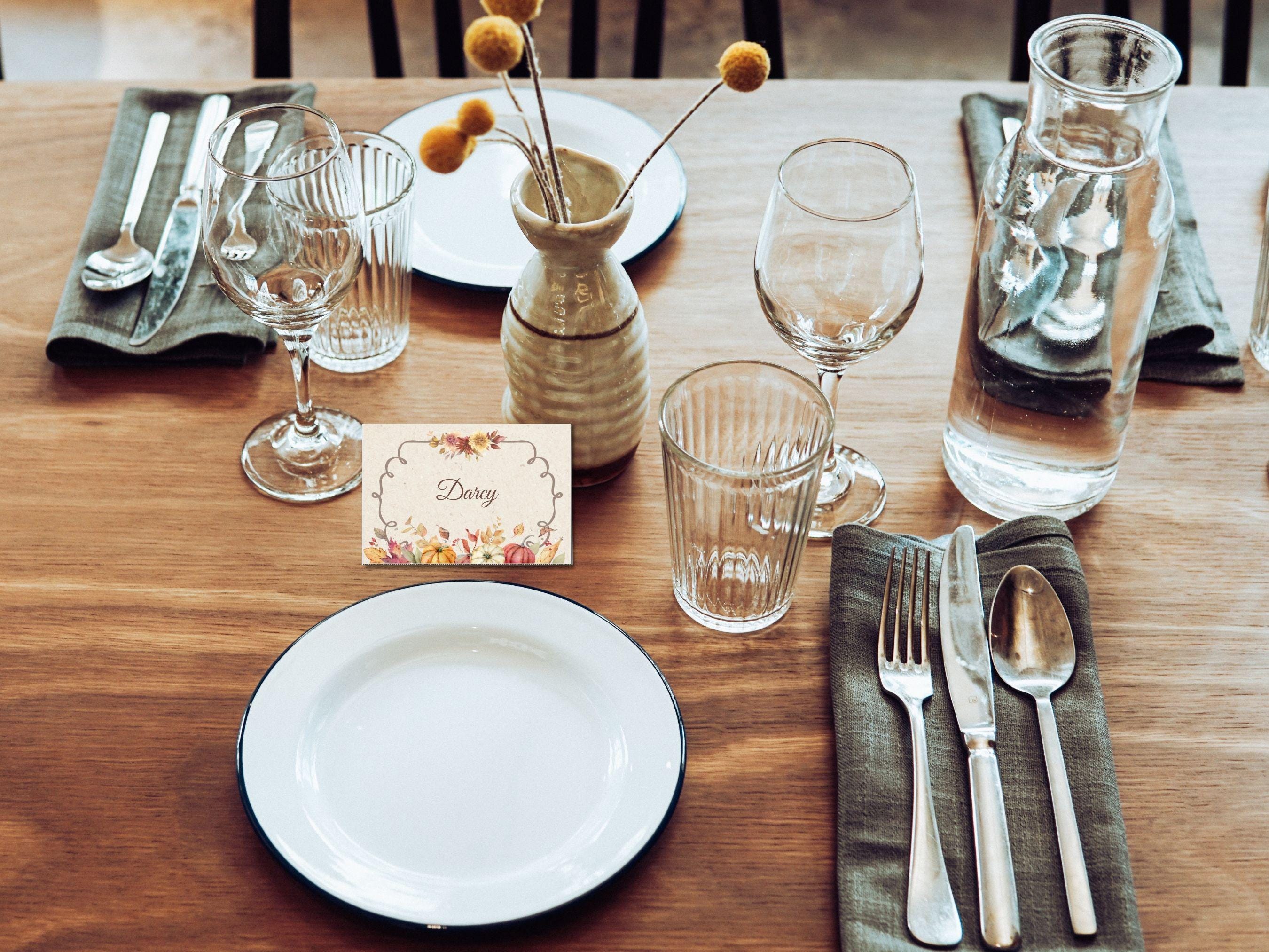 Perfect for Every Fall Celebration These versatile place cards enhance any autumn gathering: Thanksgiving dinners that bring families together Fall weddings with seasonal charm Harvest parties celebrating the season Corporate events with professional appeal Birthday celebrations during autumn months