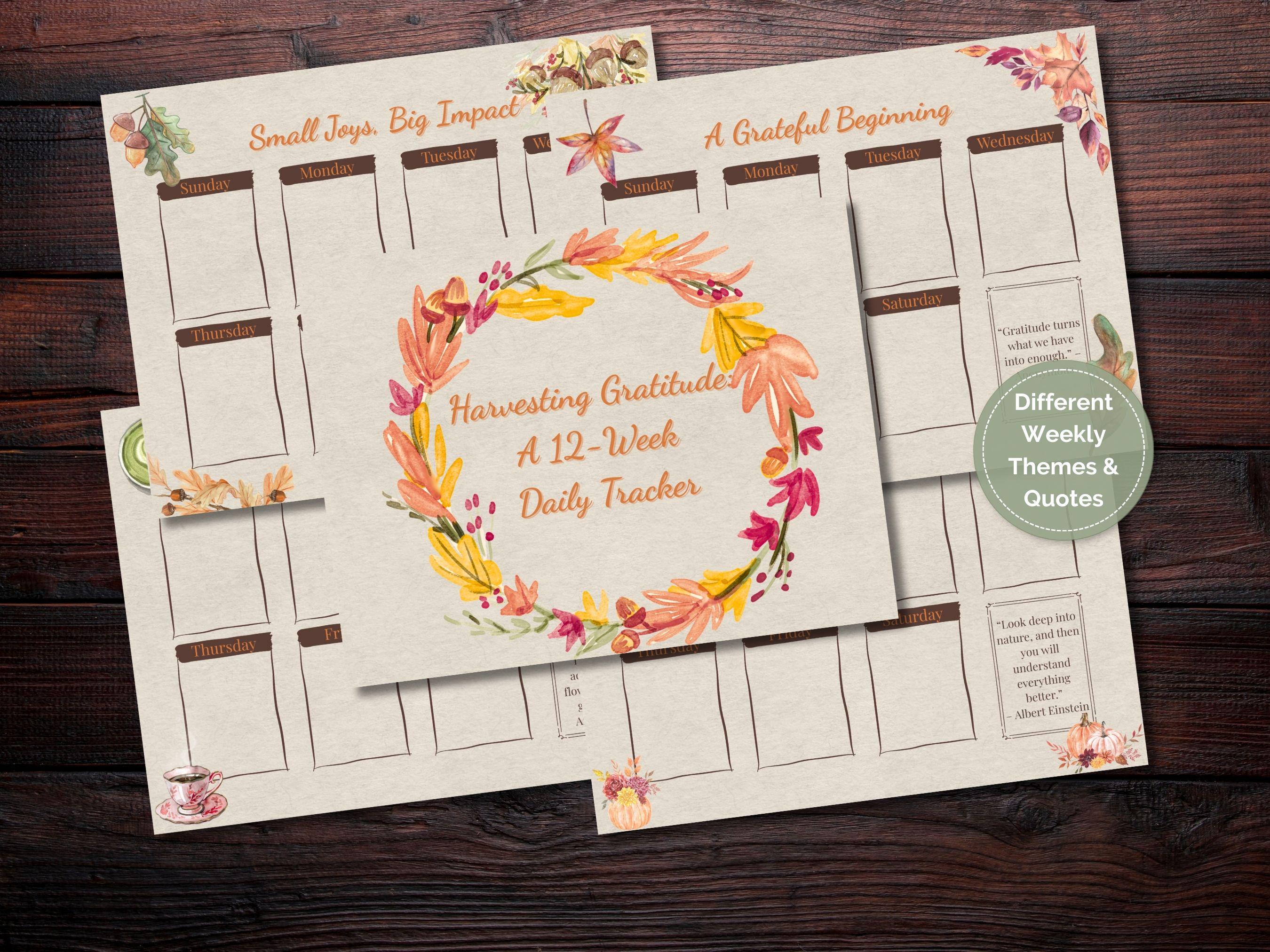 Ready to harvest gratitude in your daily life? Simply download, print, and begin your 12-week journey toward greater appreciation and mindfulness. Your future self will thank you for taking this meaningful step today.