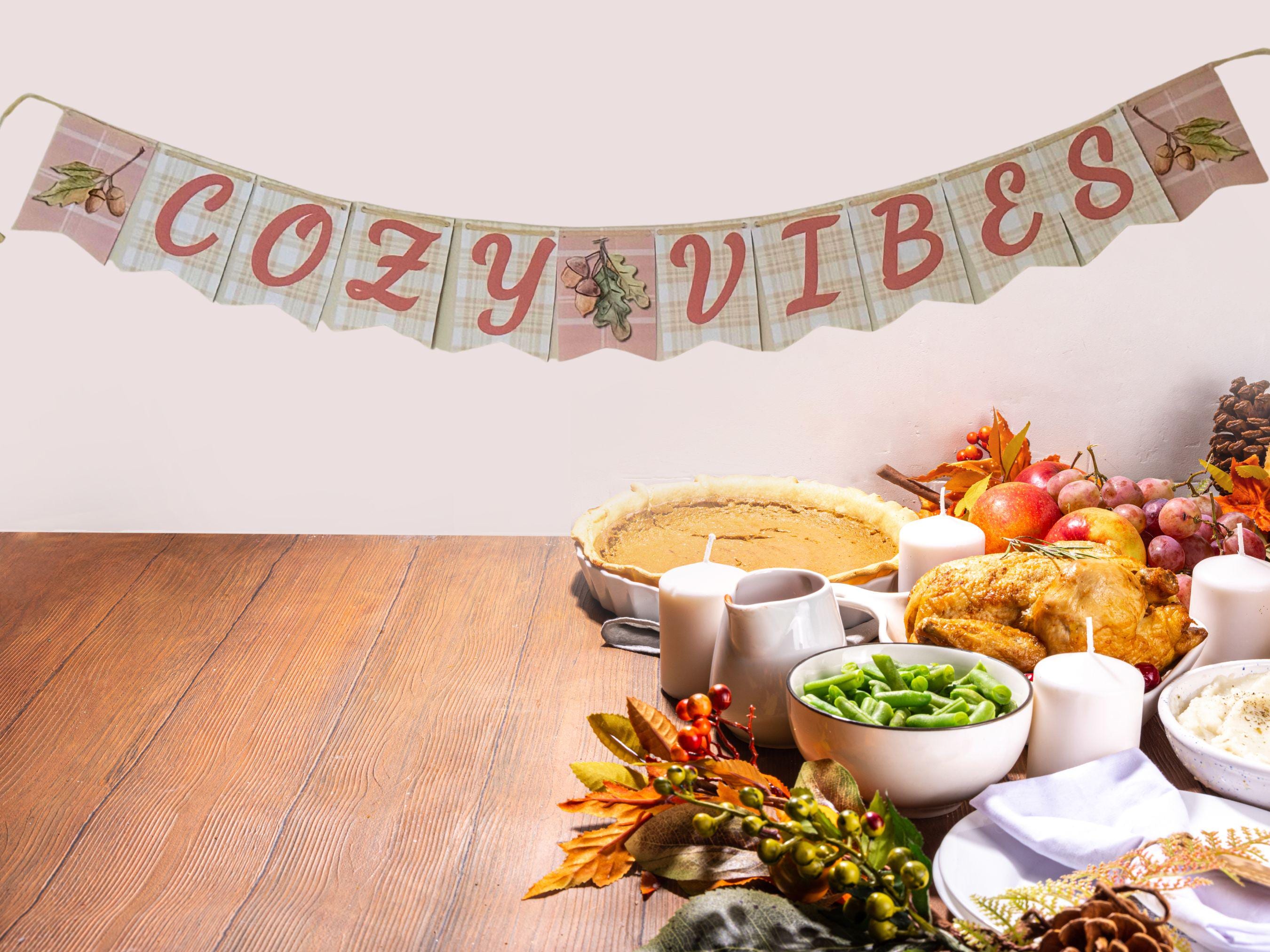 Transform your space for the season with this charming "Cozy Vibes" printable banner, designed to make decorating easy, fun, and creative. Each letter features a rustic plaid pattern and delightful acorn details, capturing the essence of autumn and inviting a cozy atmosphere into your home.