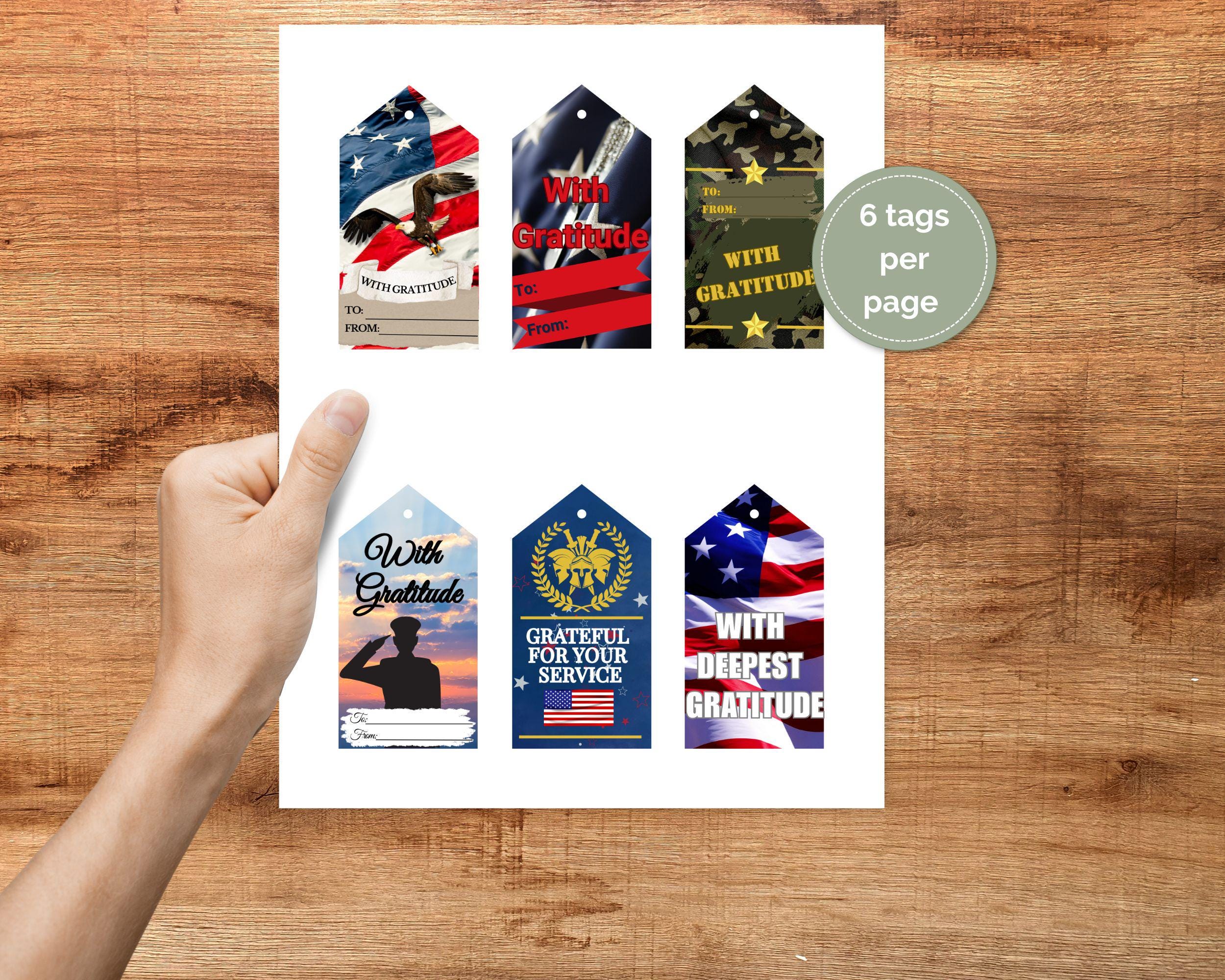 Perfect for Every Patriotic Occasion Share your gratitude and make any gift extra special at: Veterans Day celebrations – Say “thank you” with every tag Memorial Day remembrances – Express deep gratitude for heroes past and present Military appreciation events – Add a warm, appreciative touch to any gathering Care packages – Show service members you care from afar Homecoming gifts – Welcome loved ones home with words of gratitude Retirement parties – Mark the occasion with heartfelt appreciation