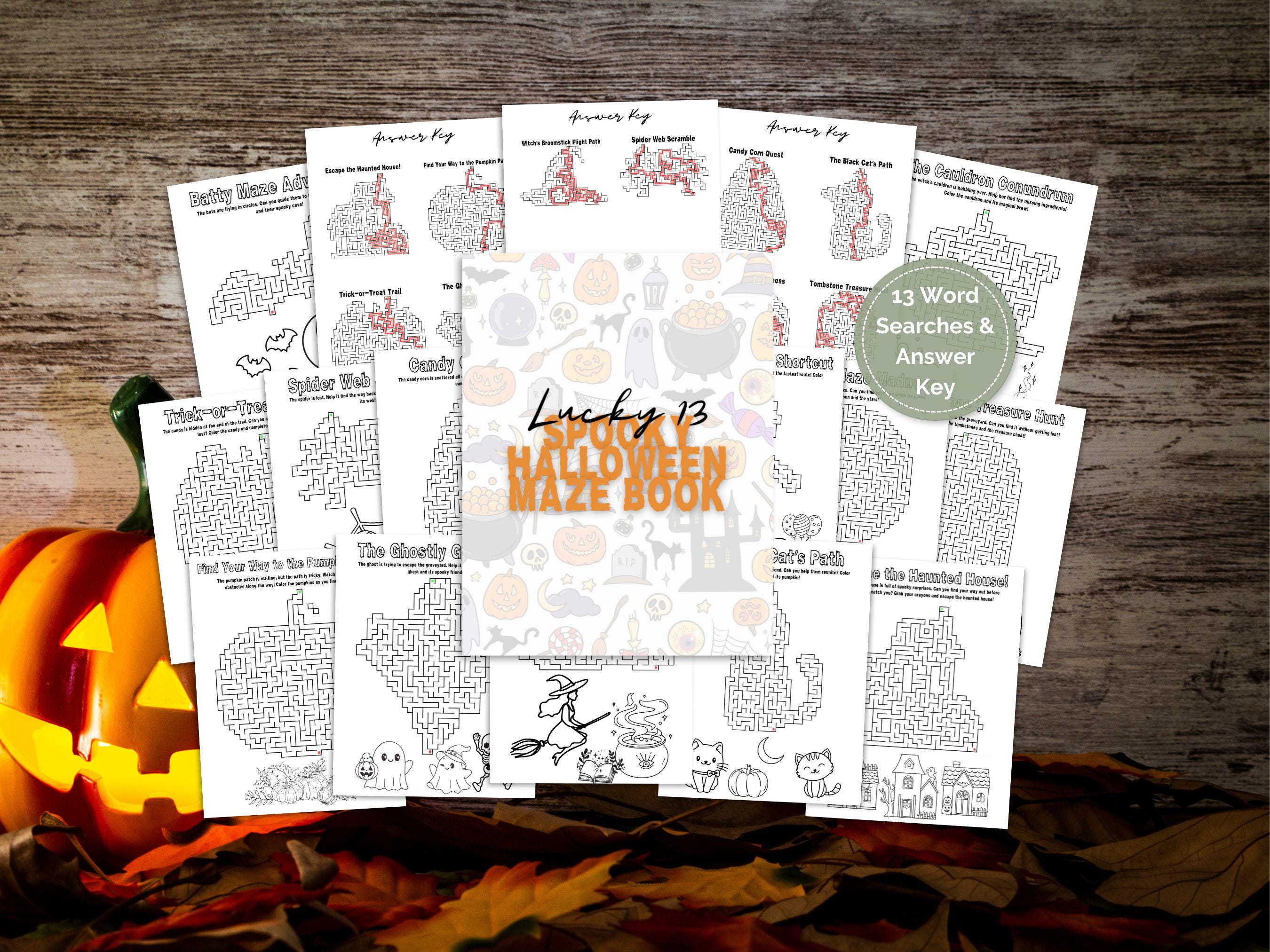 🎃 Make this Halloween unforgettable with the Lucky 13: Spooky Halloween Maze Book! 🎃 Click “Add to Cart” now and start the spooky fun today!