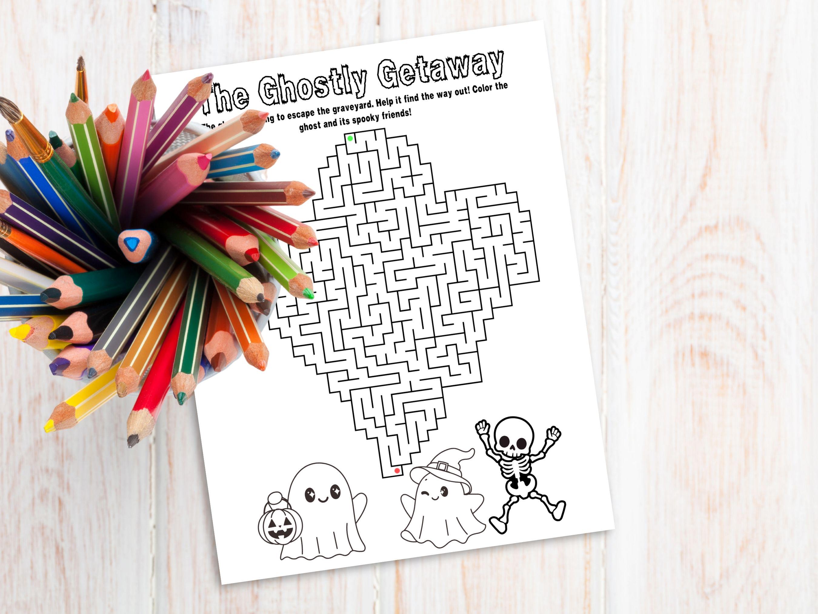 What’s Inside: 13 Unique Halloween Mazes: Navigate through haunted houses, pumpkin patches, ghostly trails, and more! Each maze is designed to challenge and delight. Colorable Illustrations: Add a creative twist with adorable Halloween-themed characters like ghosts, pumpkins, bats, and skeletons. Interactive Fun: Each page includes a maze, a short story or challenge, and plenty of space for coloring.