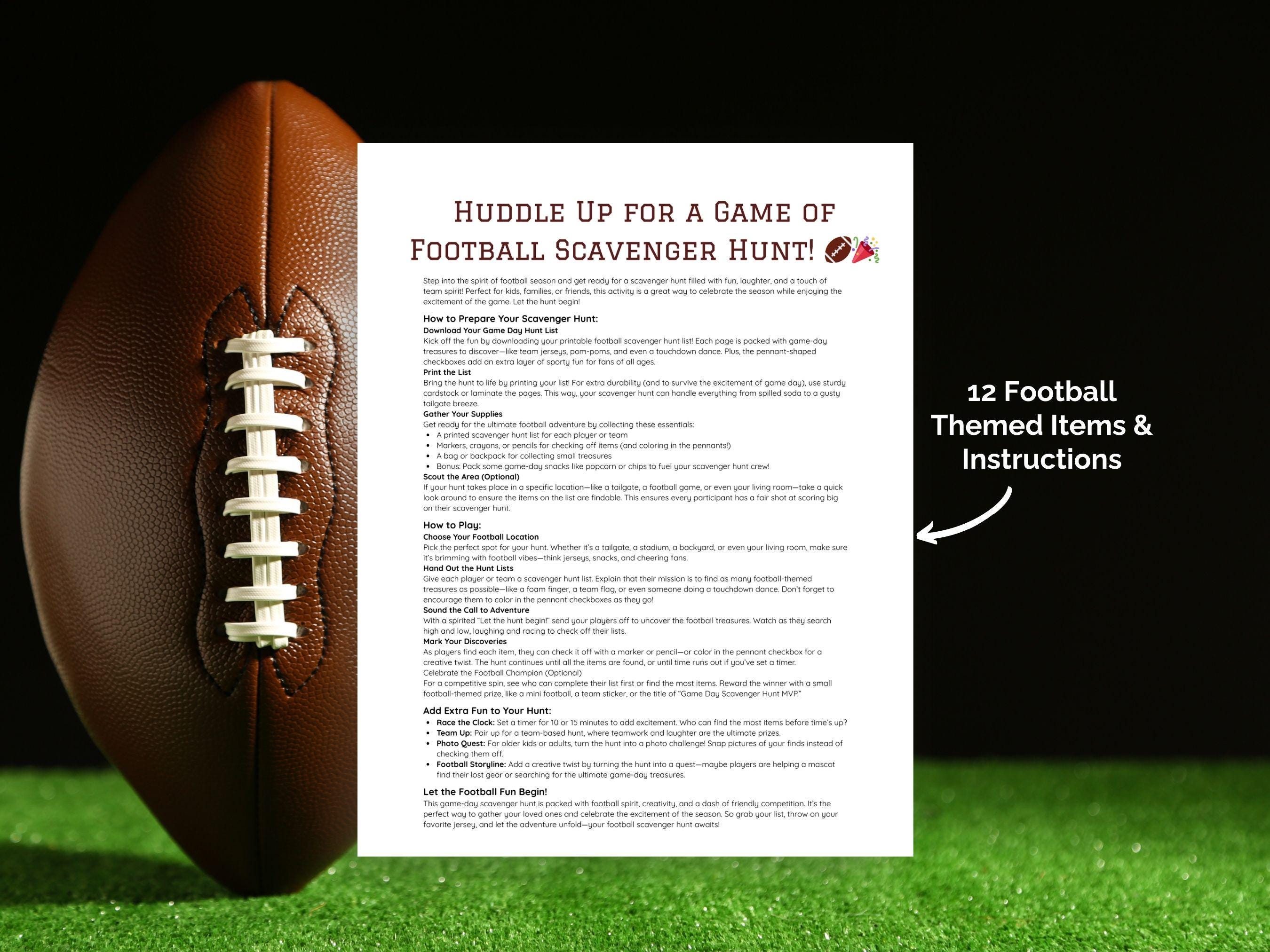 Ready to make this football season unforgettable? Download your Football Scavenger Hunt today and watch as your game day transforms into an adventure filled with laughter, teamwork, and touchdown-worthy memories!
