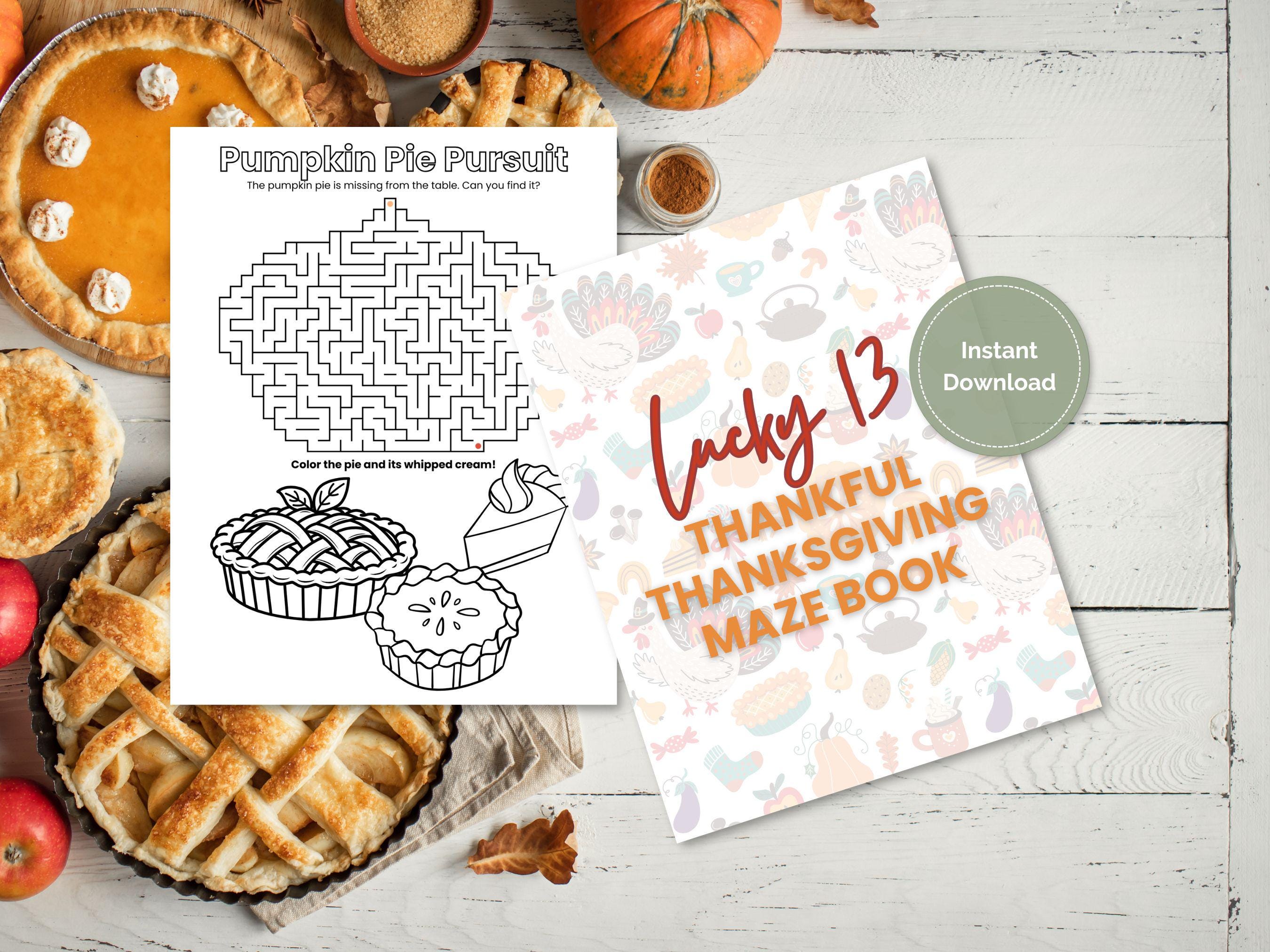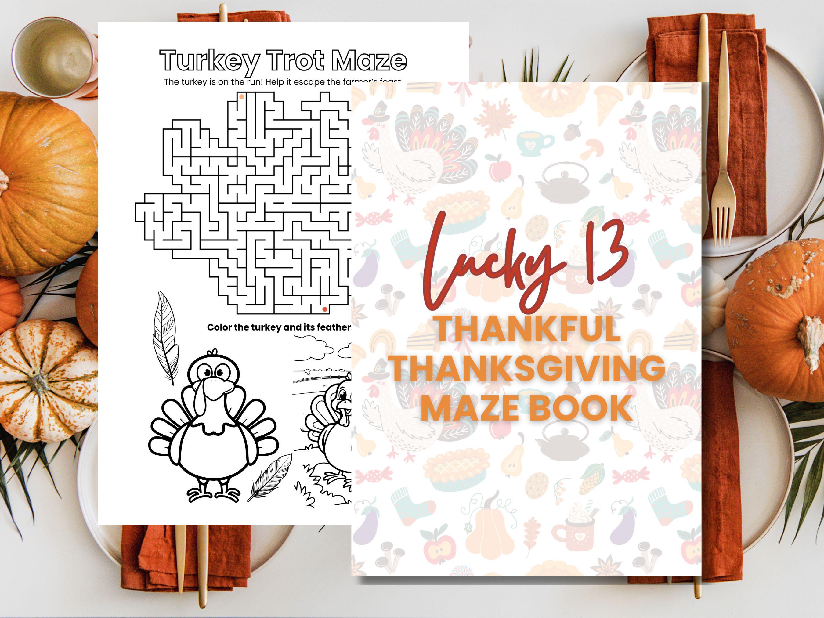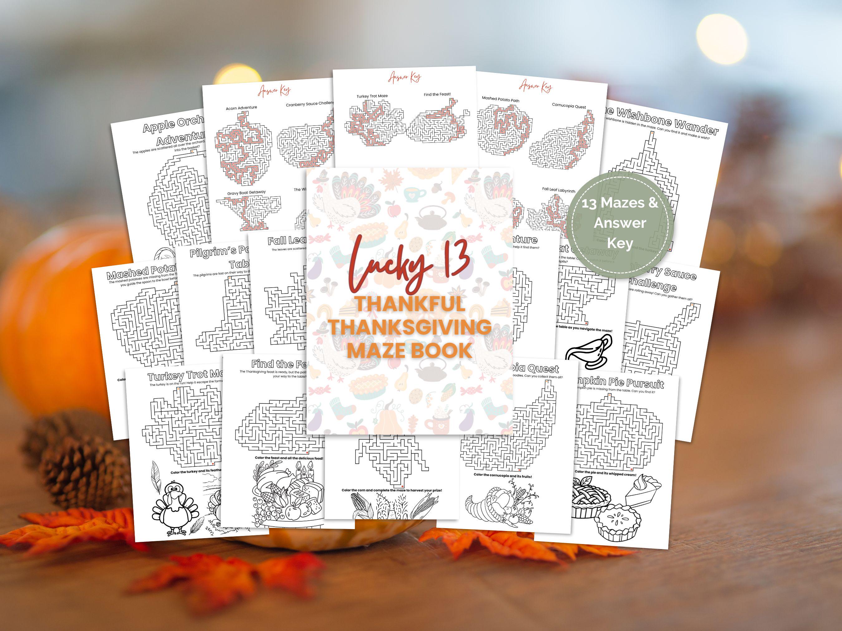 🦃 Make this Thanksgiving unforgettable with the Lucky 13: Thankful Thanksgiving Maze Book! 🦃 Click “Add to Cart” now and start the festive fun today!