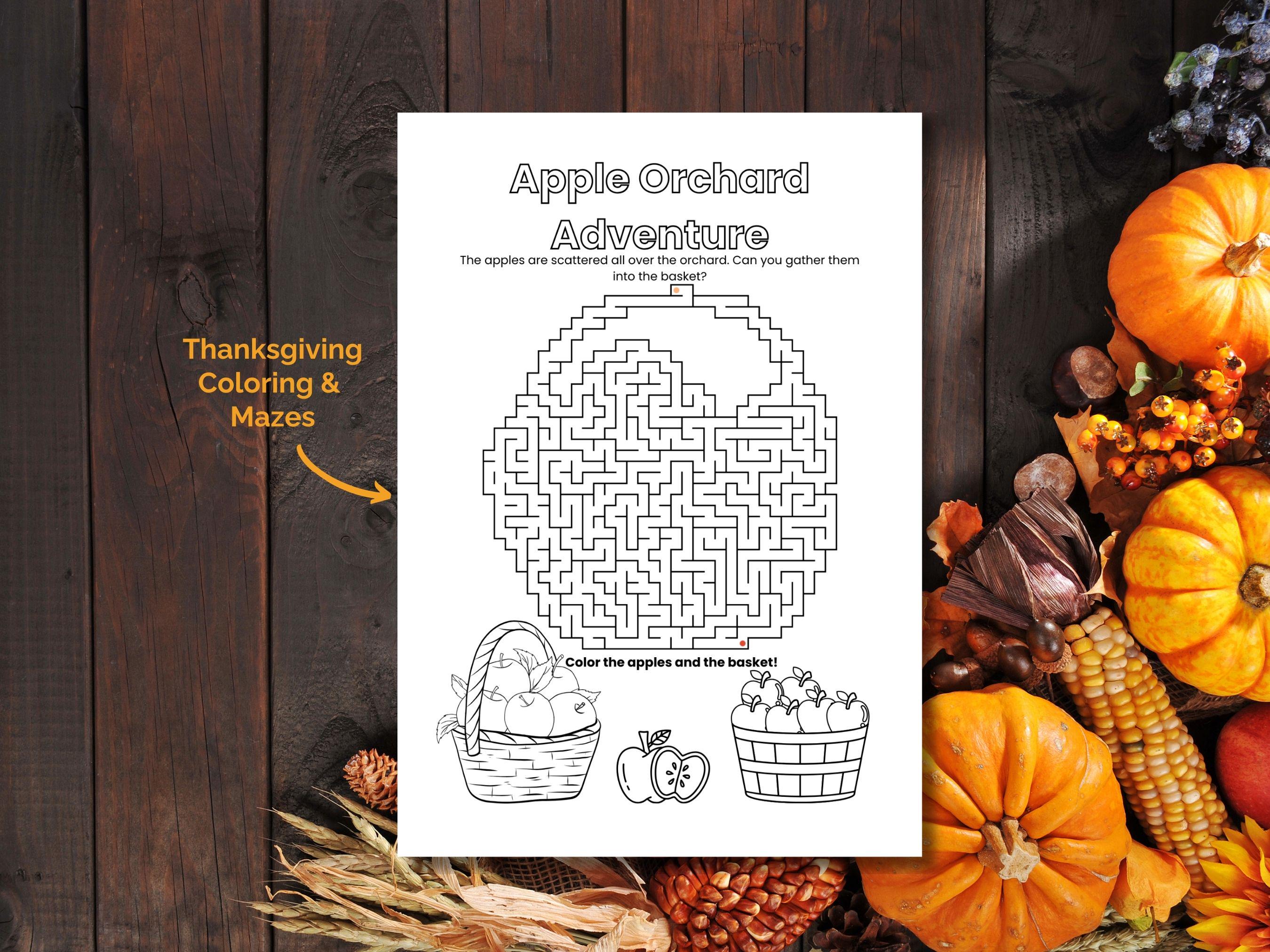 What’s Inside: 13 Unique Thanksgiving Mazes: Navigate through turkey trots, cornfields, and more! Each maze is creatively designed with a festive twist. Colorable Illustrations: Add a creative touch with adorable Thanksgiving-themed characters and scenes to color. Interactive Fun: Each page includes a maze, a short story or challenge, and plenty of space for coloring.
