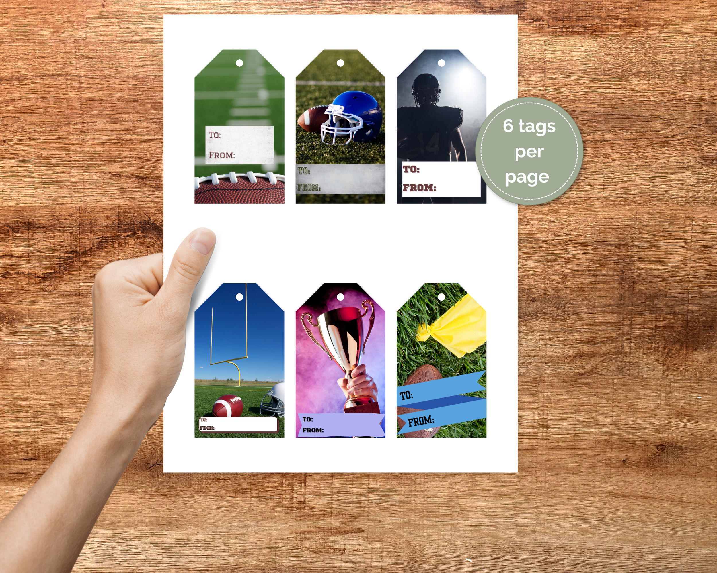 What Makes These Tags Special Six Distinct Designs: From dramatic player silhouettes to celebratory trophy scenes, each tag offers a unique football experience Ready-to-Use Format: Pre-printed "TO:" and "FROM:" fields make personalization quick and easy Professional Quality: High-resolution designs that print beautifully on any home printer Versatile Applications: Perfect for birthdays, game day parties, team celebrations, or any sports-themed occasion