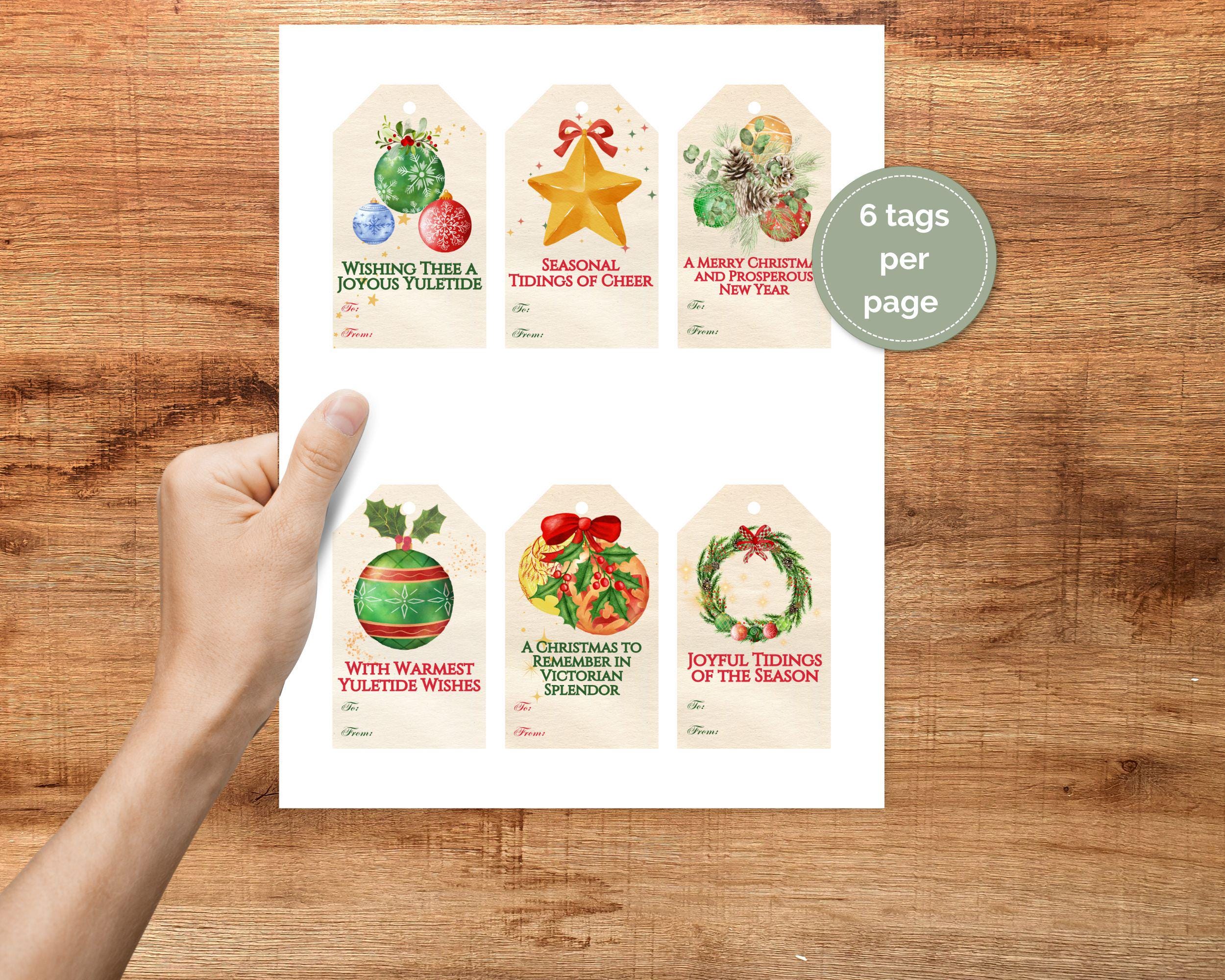 What’s Included: A high-quality PDF file with 6 unique gift tag designs. Each tag features a vintage-inspired design with ornate ornaments, holly, wreaths, and festive phrases like: "Wishing Thee a Joyous Yuletide" "Seasonal Tidings of Cheer" "A Merry Christmas and Prosperous New Year" "With Warmest Yuletide Wishes" "A Christmas to Remember in Victorian Splendor" "Joyful Tidings of the Season" Tags are designed to print on 8.5 x 11-inch paper for easy at-home printing.