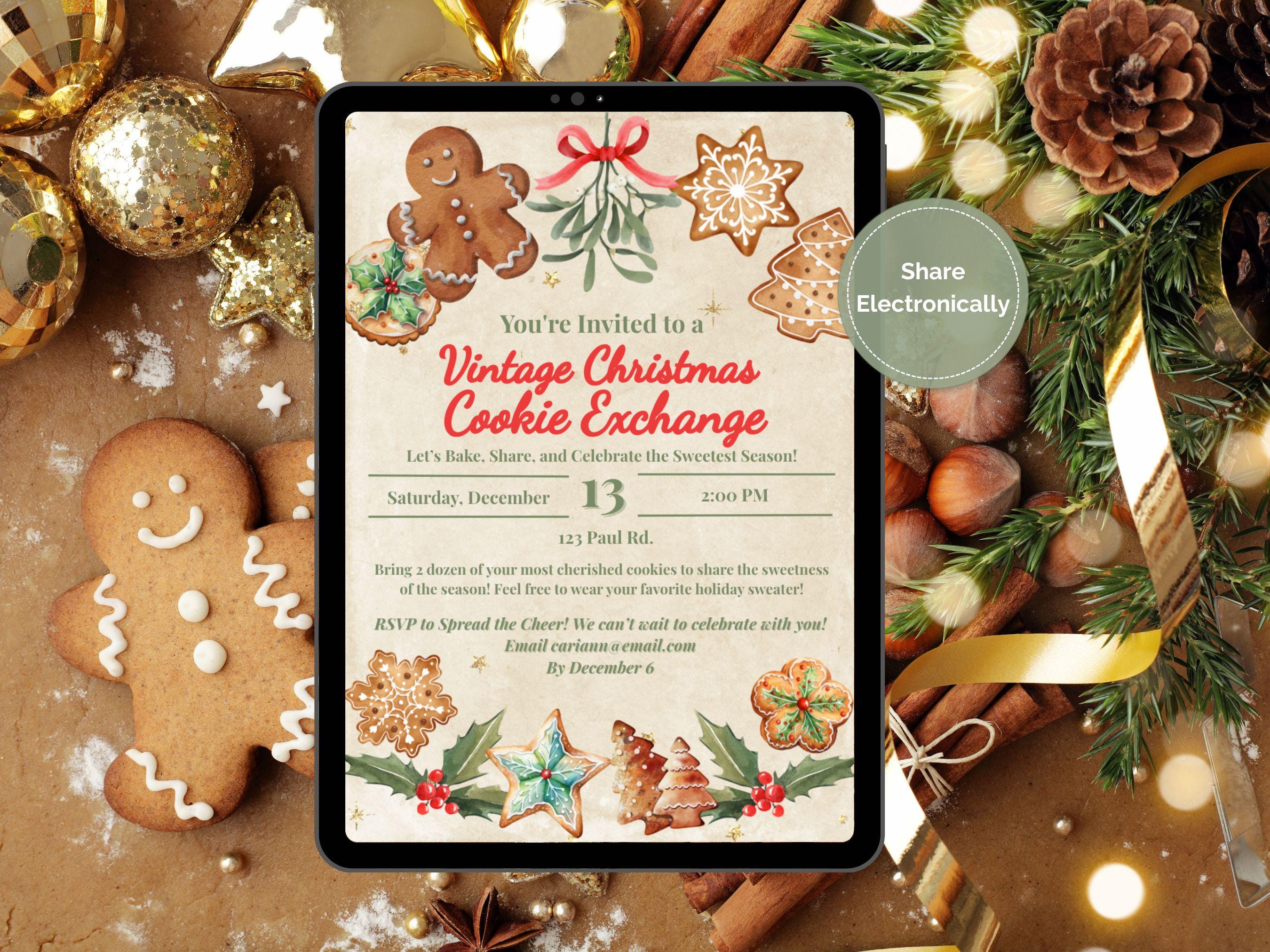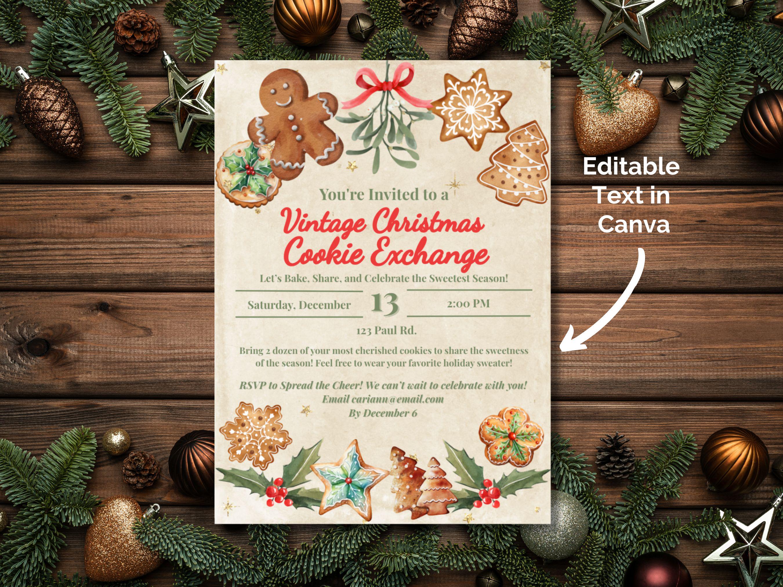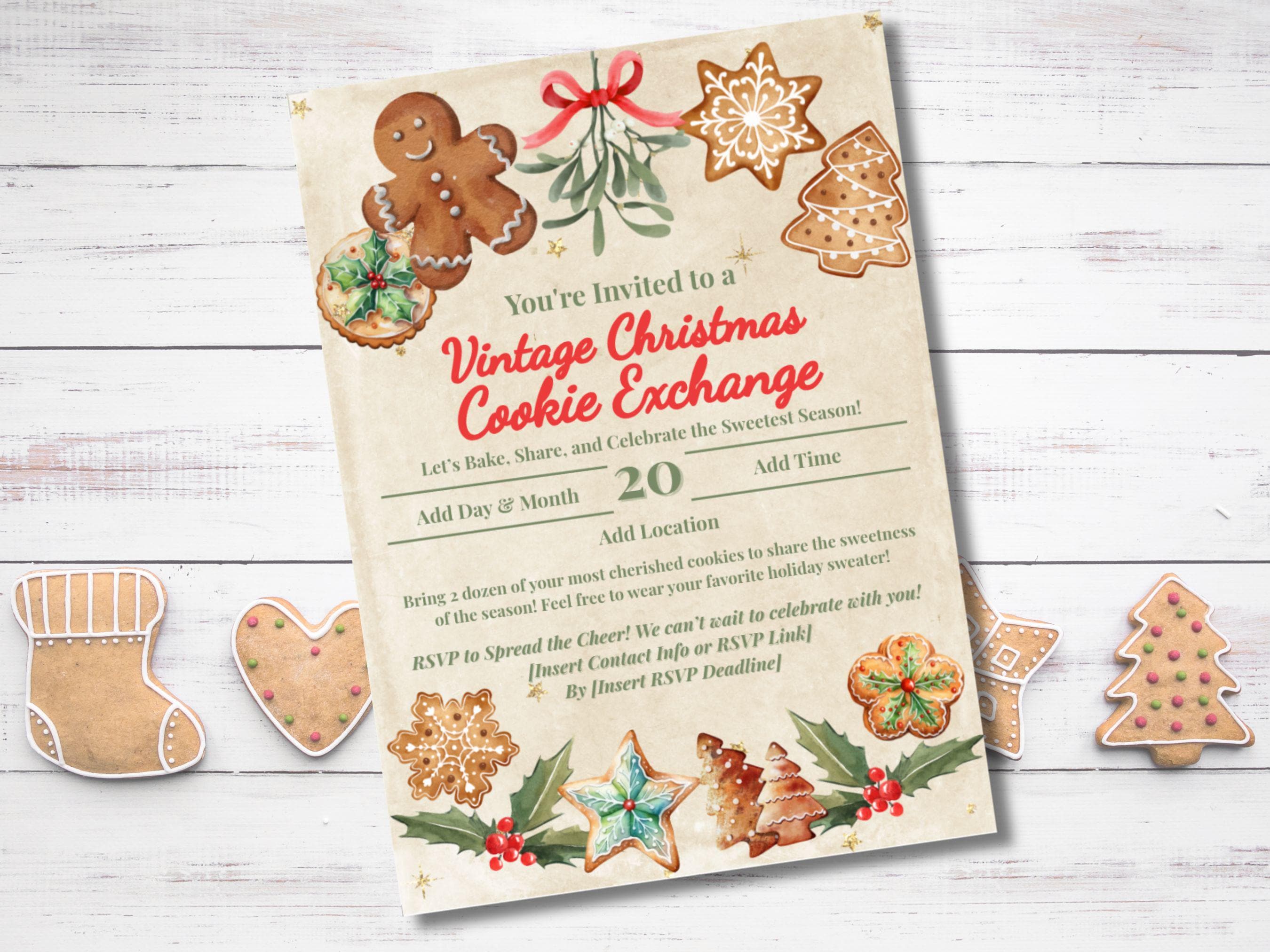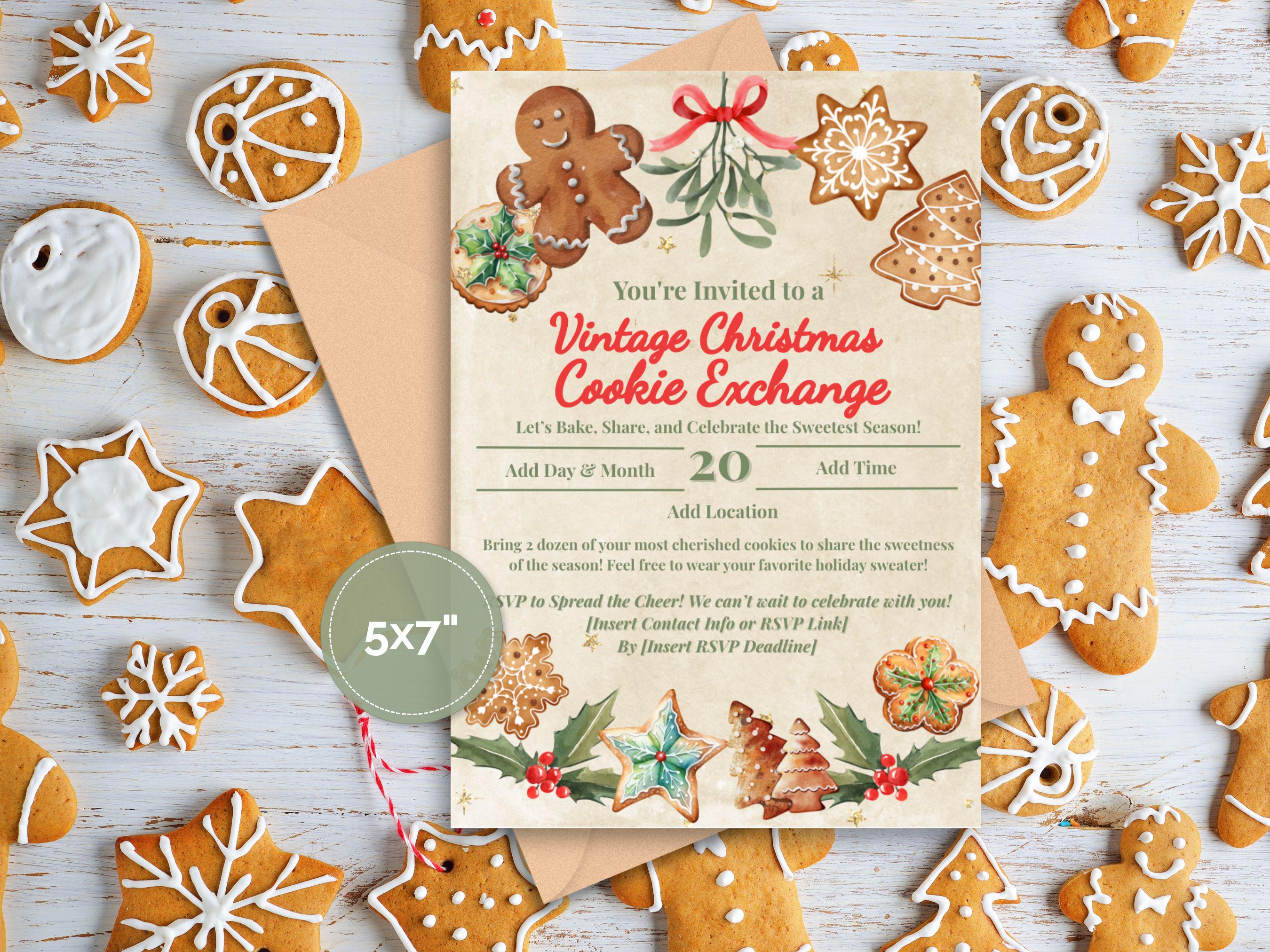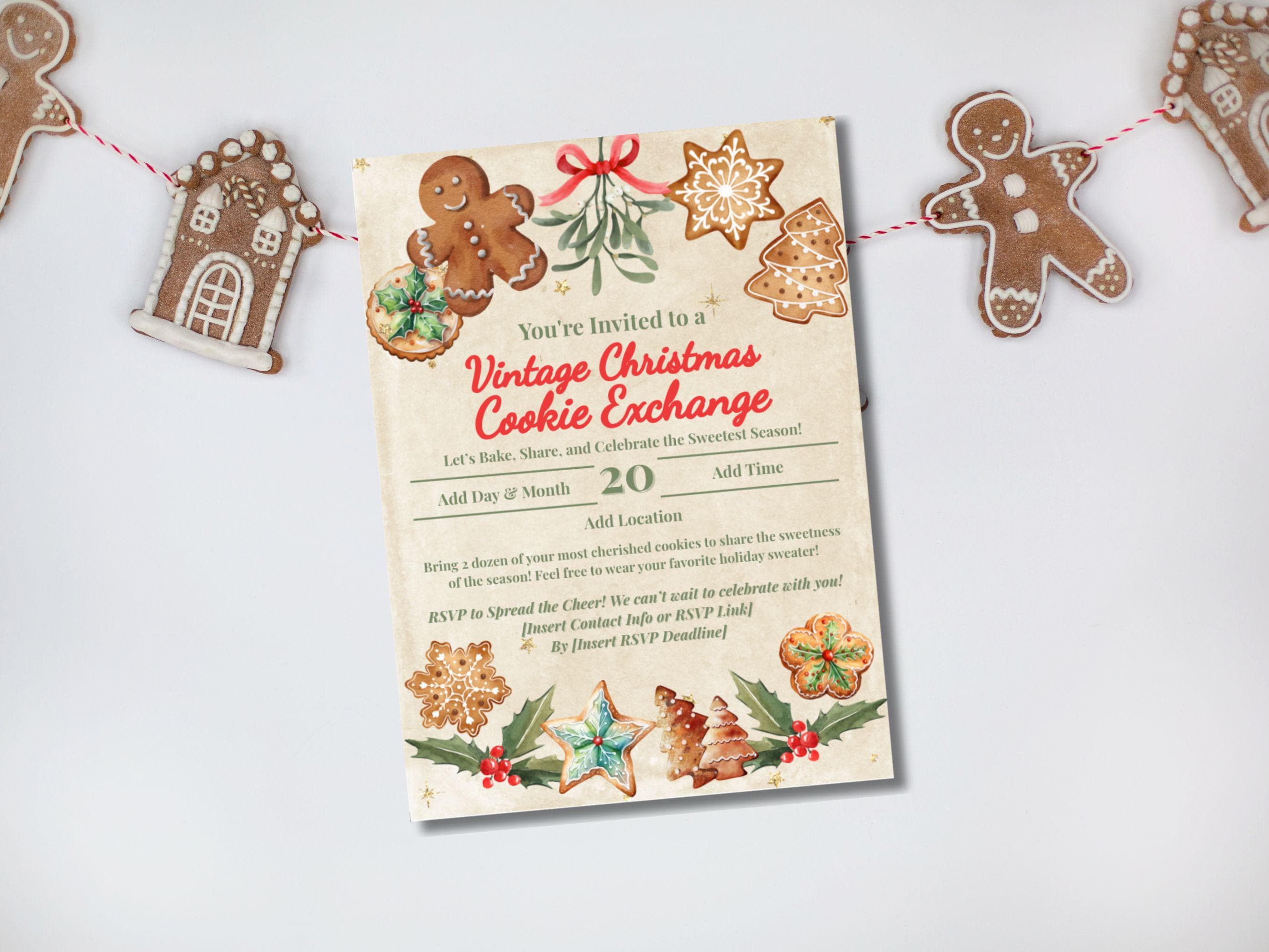 Celebrate the sweetest season with our charming Vintage Christmas Cookie Exchange Invitation! ๐๐ช