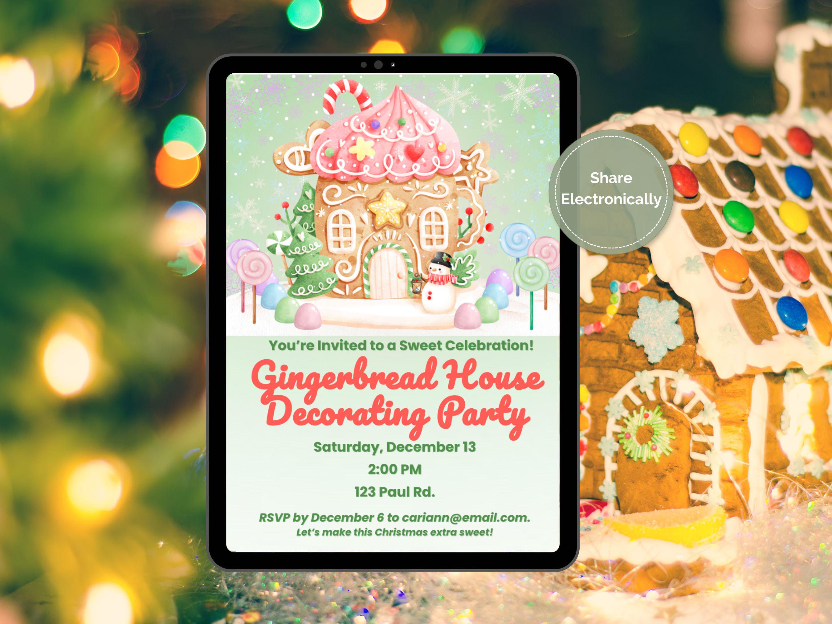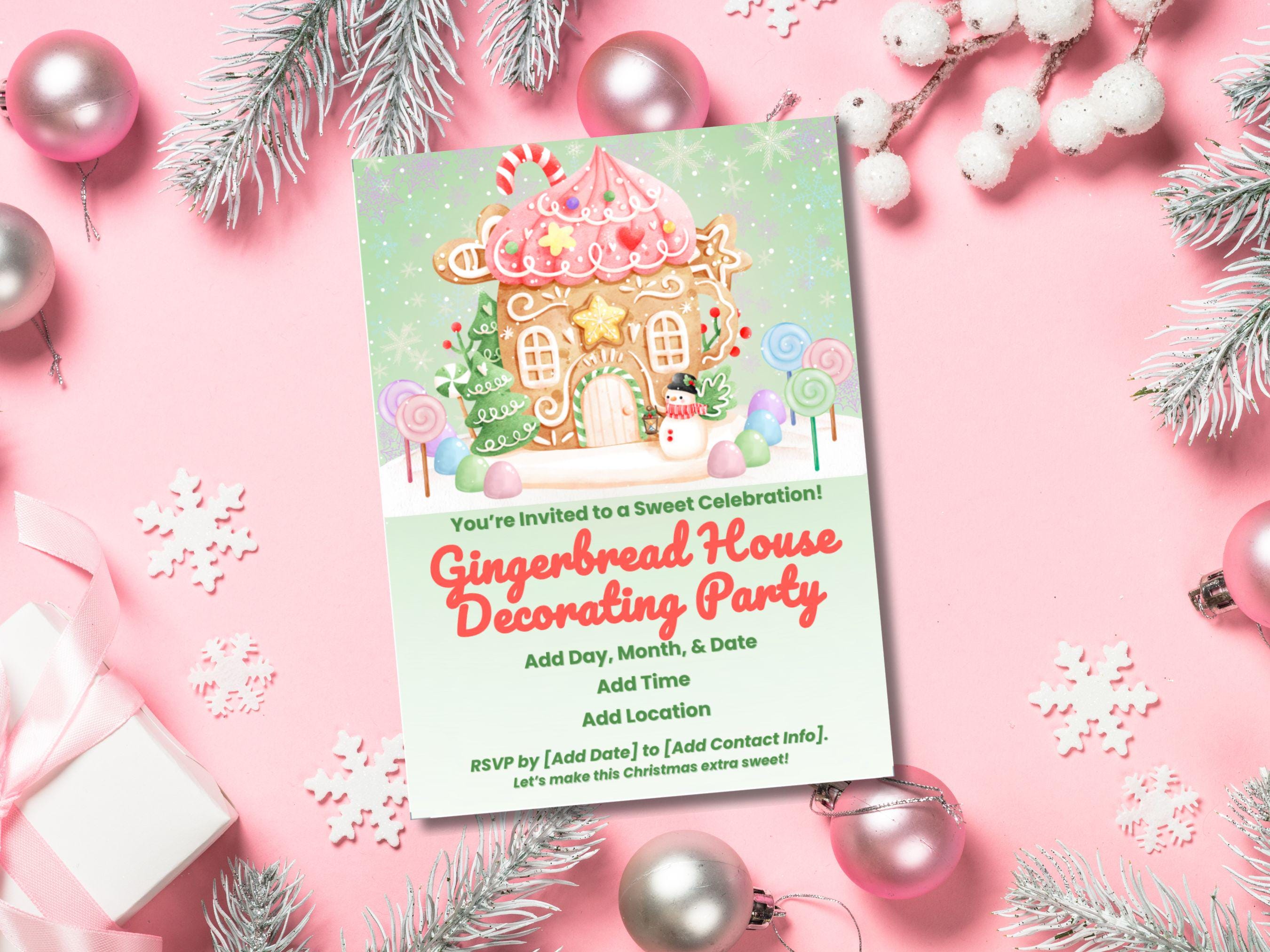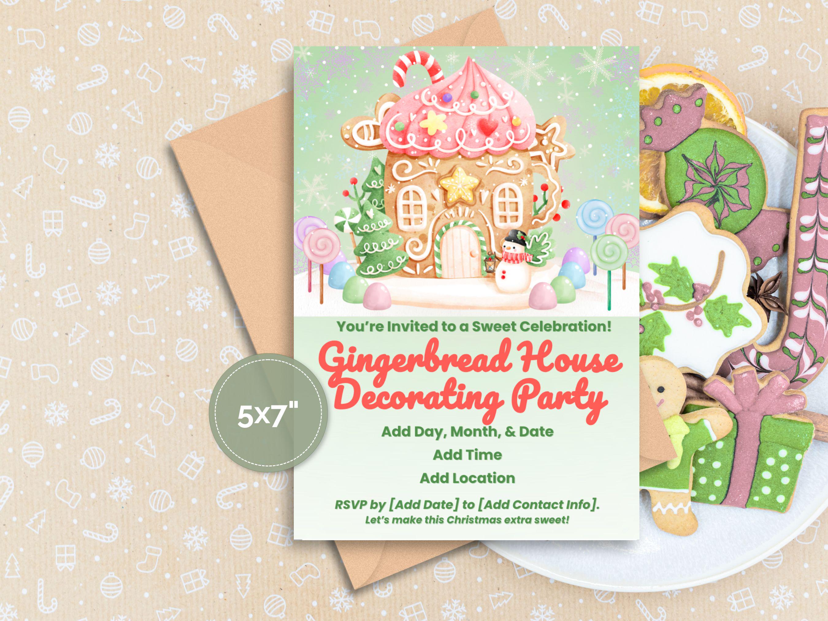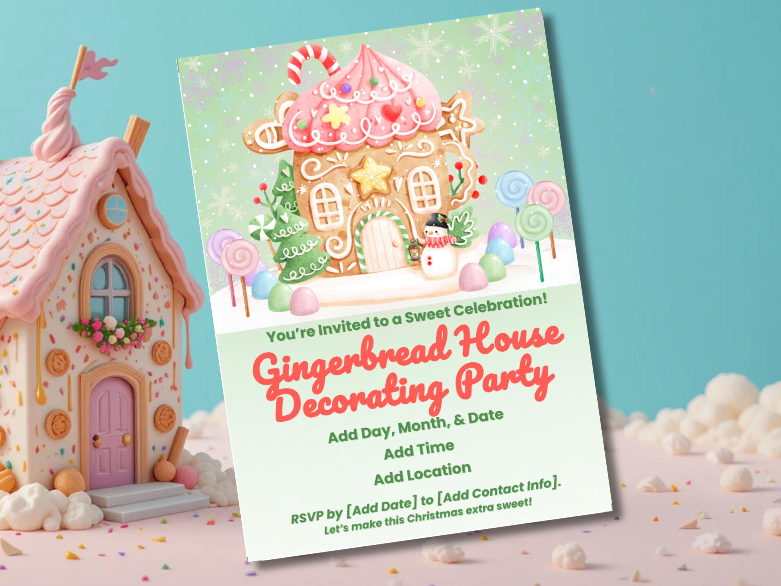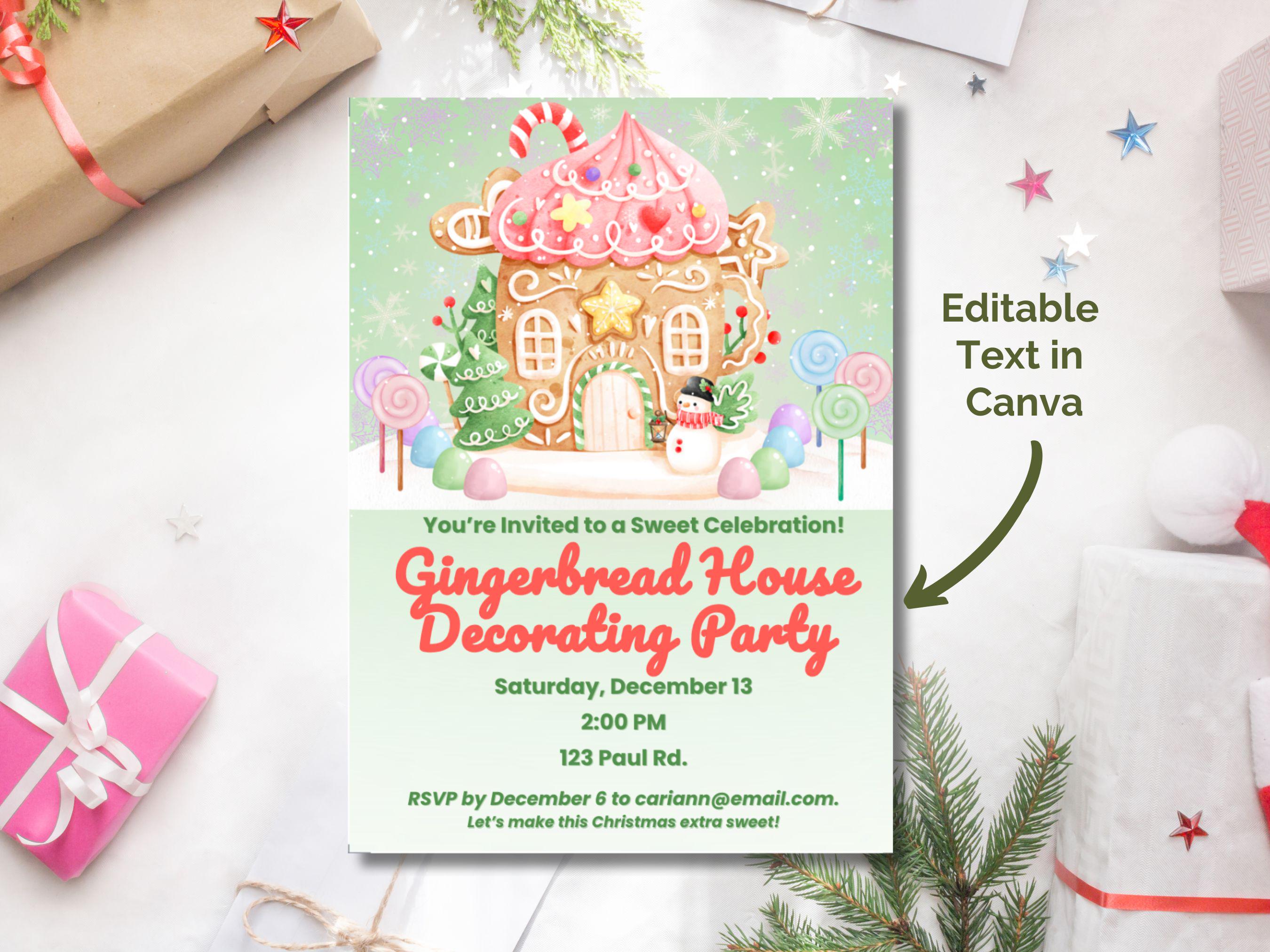 🎨 Why You’ll Love It: Editable in Canva: Quickly update the text to include your party details—no special software needed! Whimsical Design: Featuring pastel tones, candy accents, and a cozy gingerbread house, this invite sets the perfect tone for your holiday gathering. Instant Download: Get your file immediately after purchase and start customizing right away!