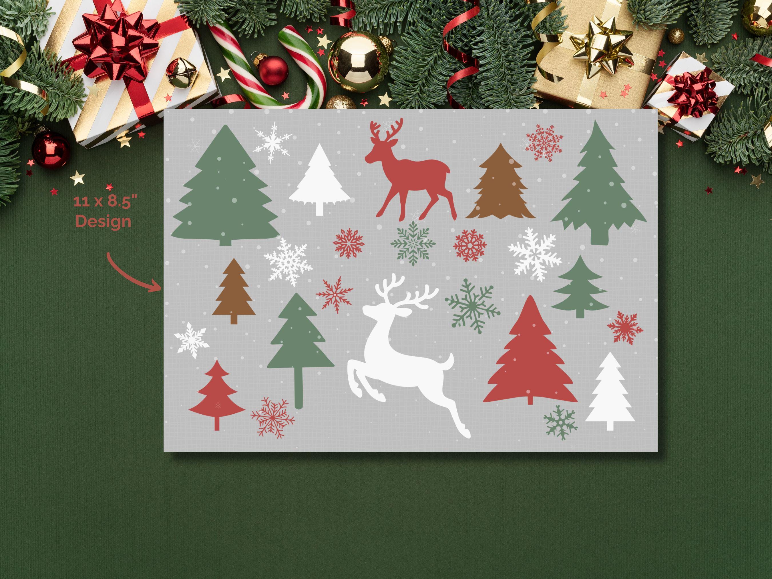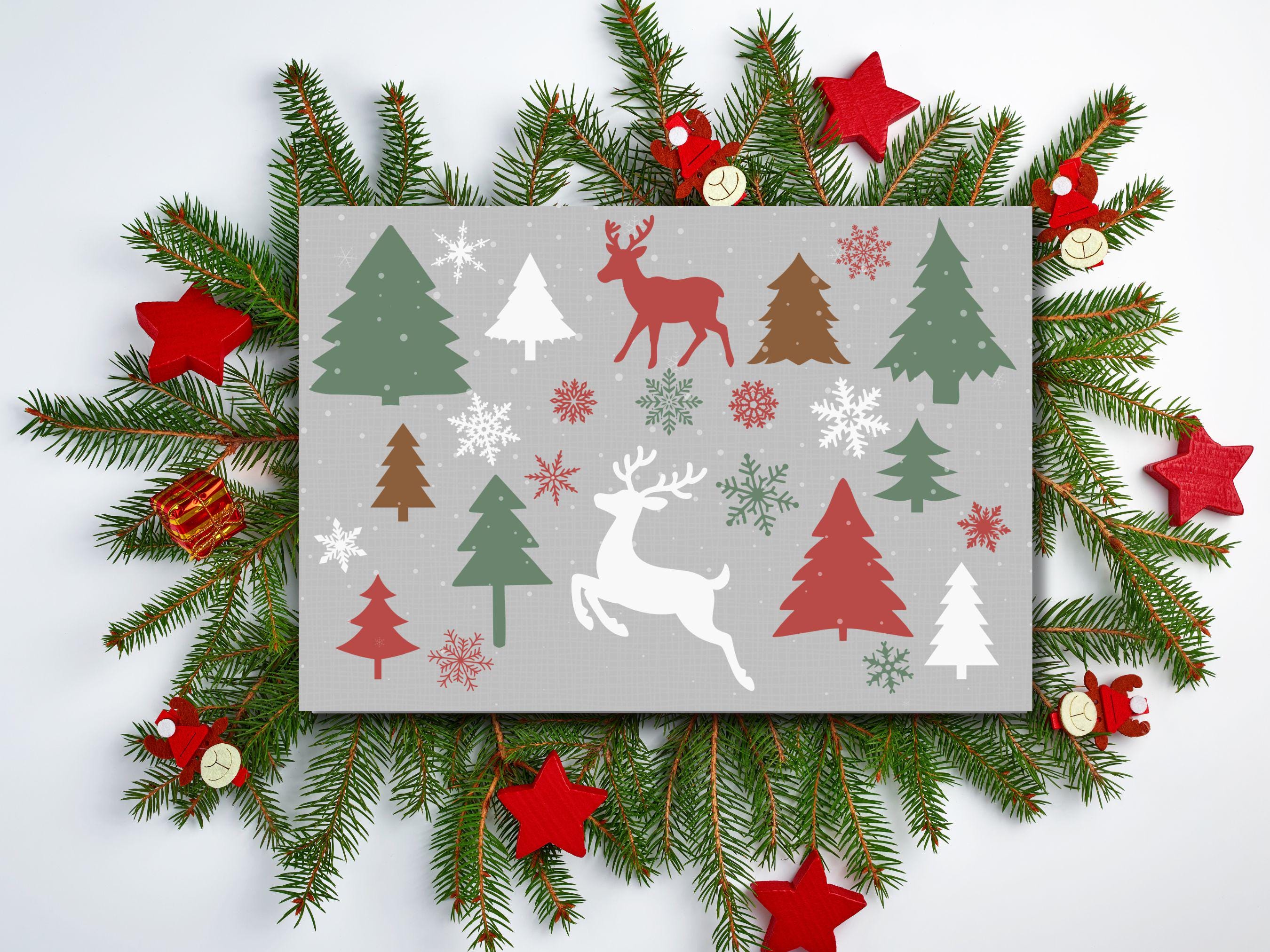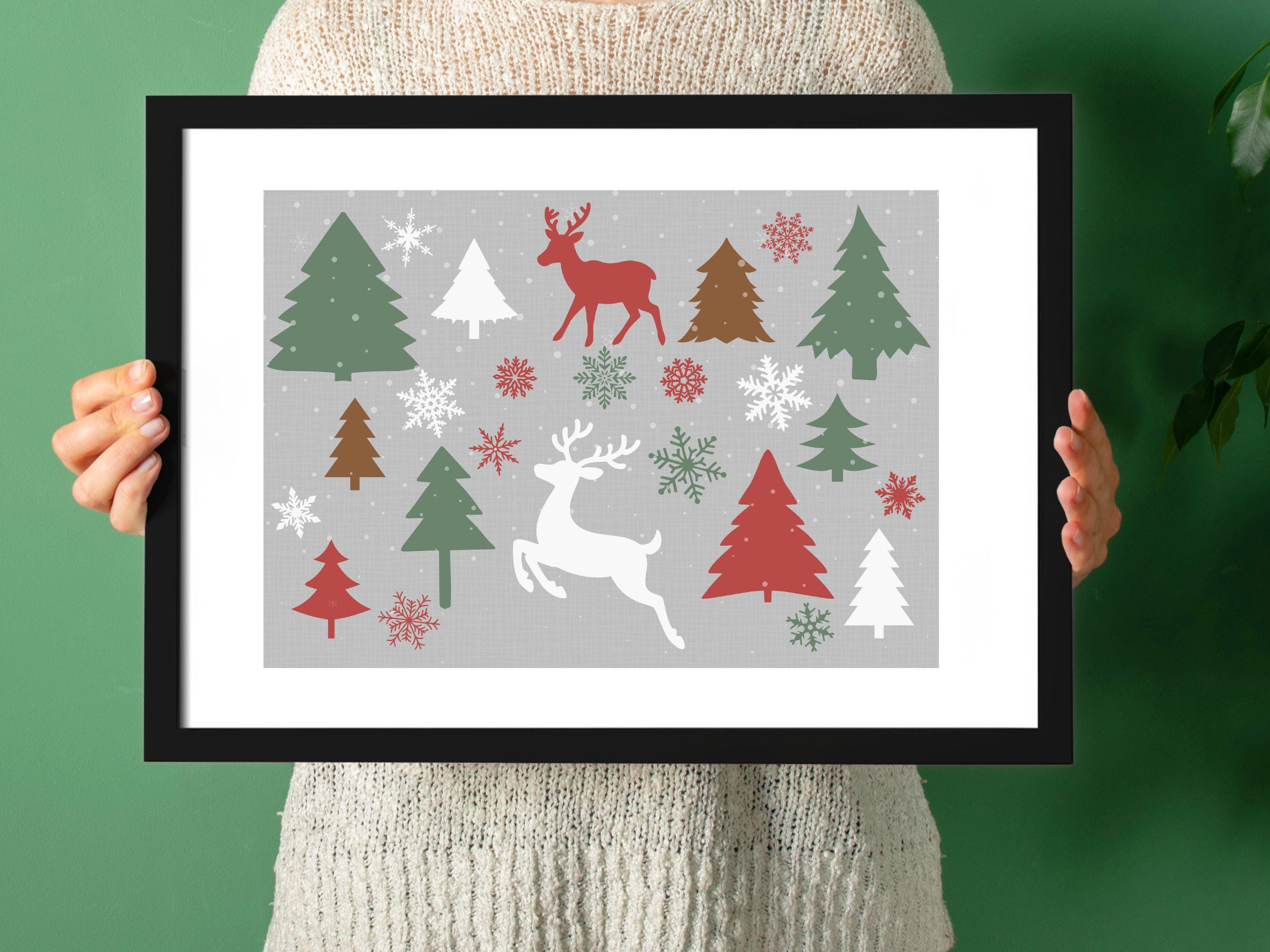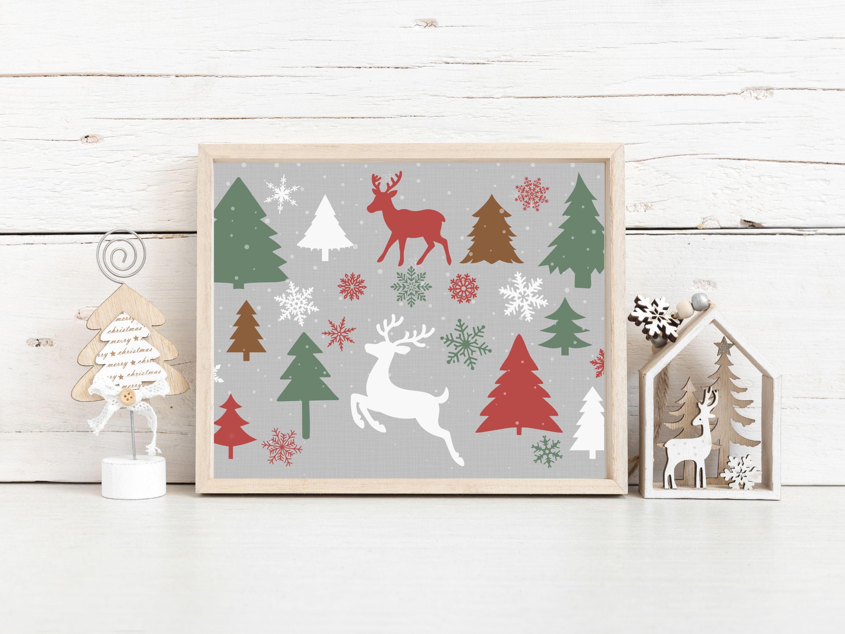 🌟 Why You'll Love It: Minimalist Design: Featuring stylized silhouettes of Christmas trees, reindeer, and snowflakes, this piece embodies the simplicity and elegance of Scandinavian decor. Nature-Inspired: Muted tones of red, green, brown, and off-white evoke a cozy, natural holiday vibe. Versatile Use: Ideal as wall art, a digital download, or even printed on wrapping paper or greeting cards.