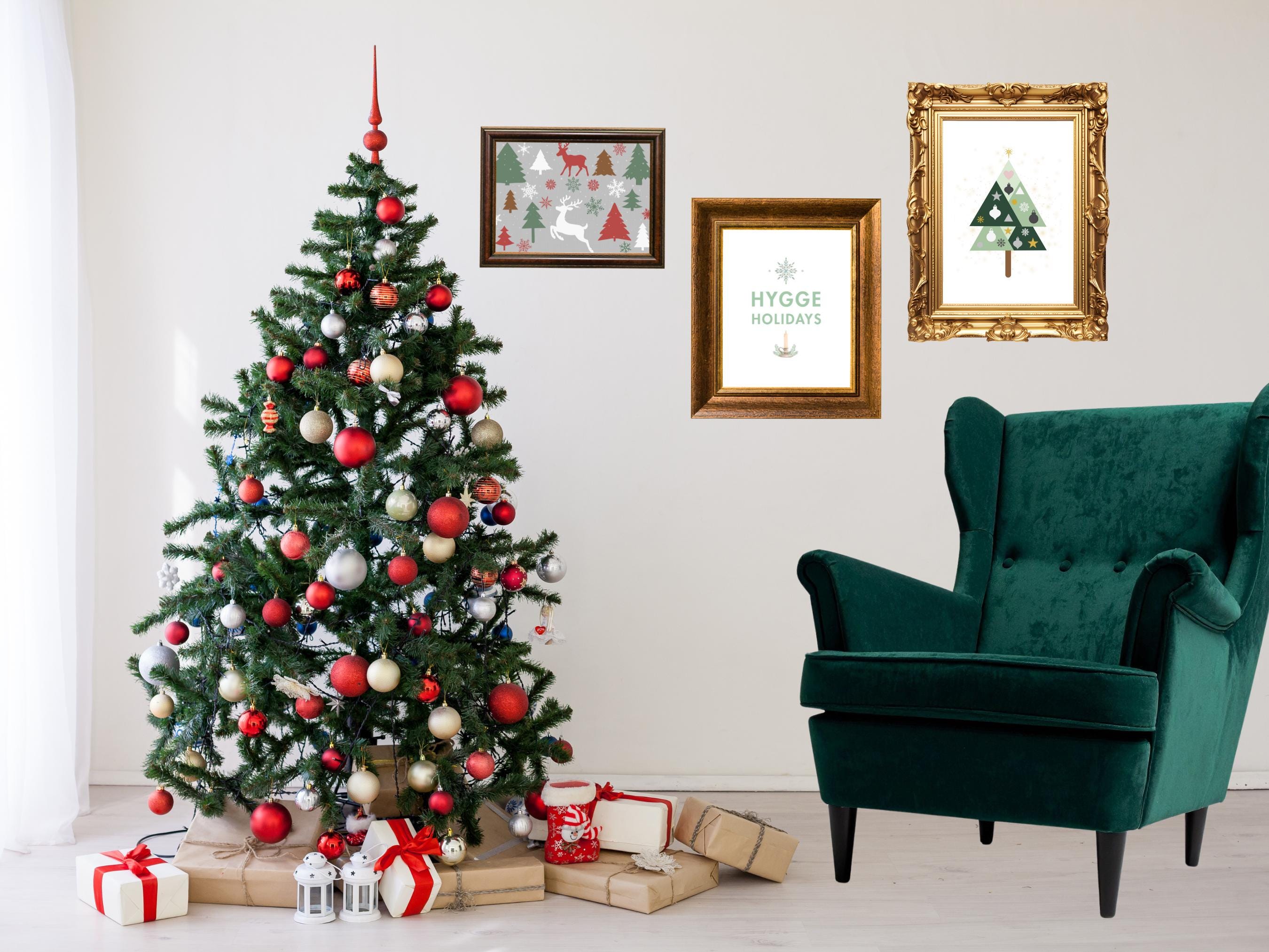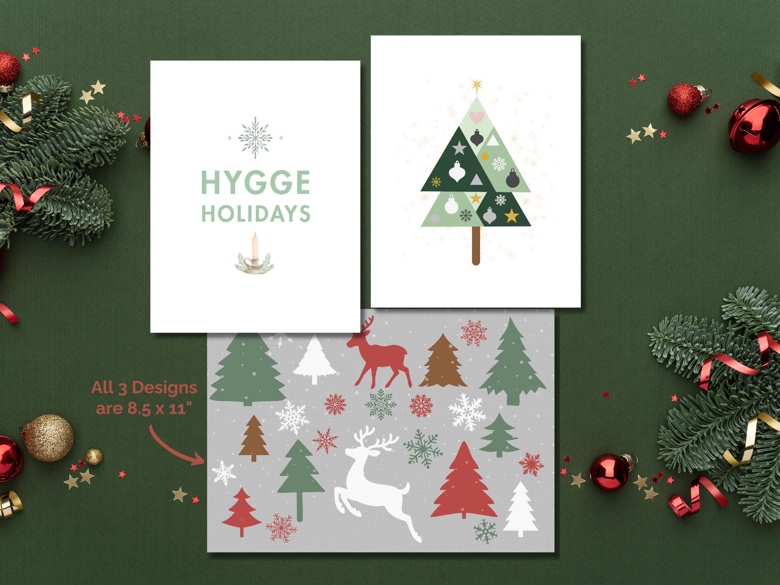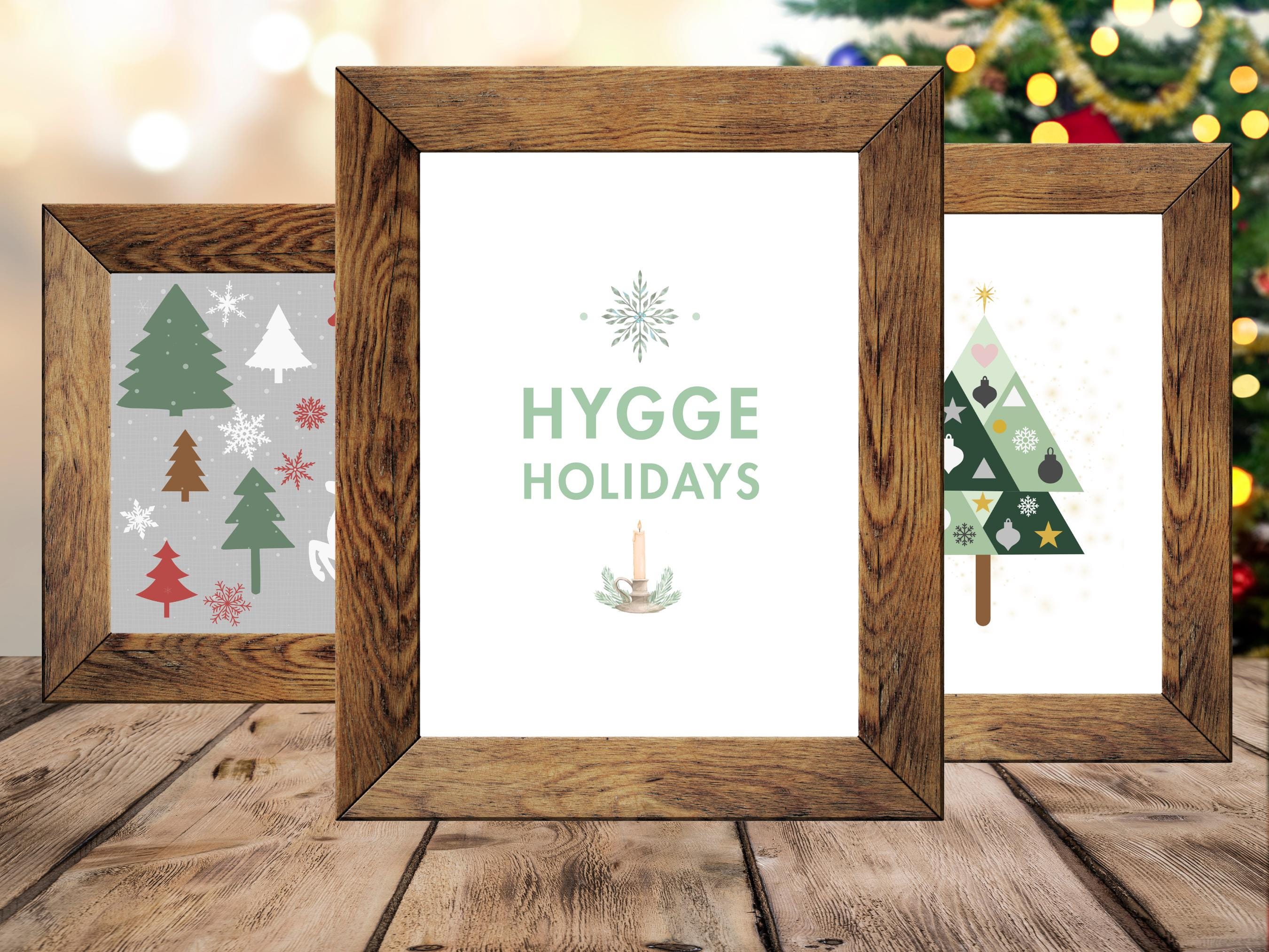Inside the Collection Explore each thoughtfully designed piece included in your download: Geometric Christmas Tree Print: This piece features a minimalist Christmas tree constructed from stacked, colorful triangles. Adorned with modern ornaments and a golden star, it brings a playful yet elegant touch that complements both classic and contemporary holiday spaces. 🎄 Nature-Inspired Silhouettes Art: Discover the serene beauty of Scandinavian forests with an art print showcasing stylized Christmas trees, gentle reindeer, and delicate snowflakes. The earthy color palette and subtle textures make this design perfect for adding peaceful, wintery charm to your decor. ❄️✨ Hygge Holidays Typography Art: Embrace the cozy spirit of the season with a print highlighting the word "HYGGE HOLIDAYS" in calming sage green. Accented by soft watercolor touches—like foliage and a glowing candle—this artwork invites warmth and comfort into your home. ✨🖼️