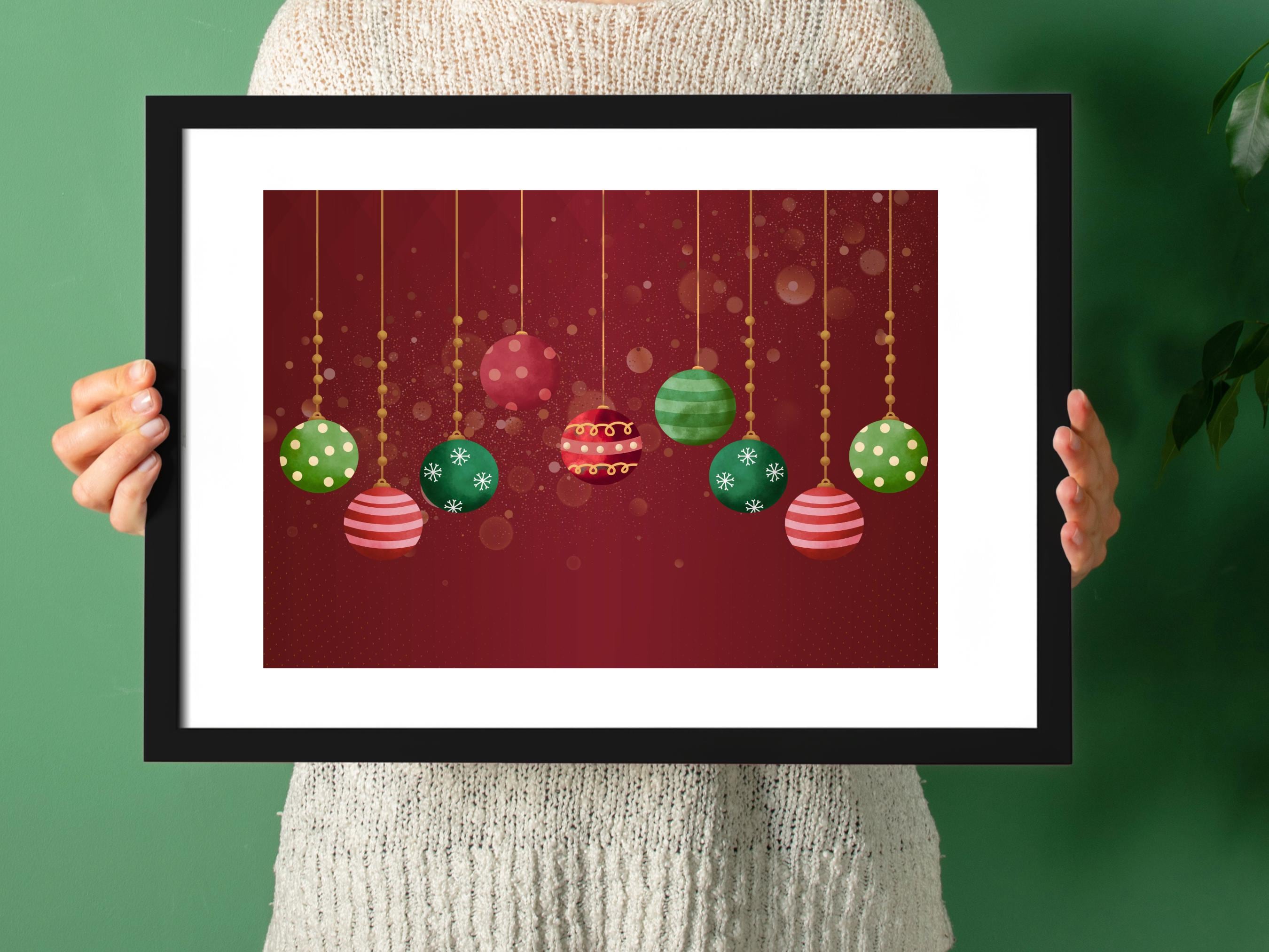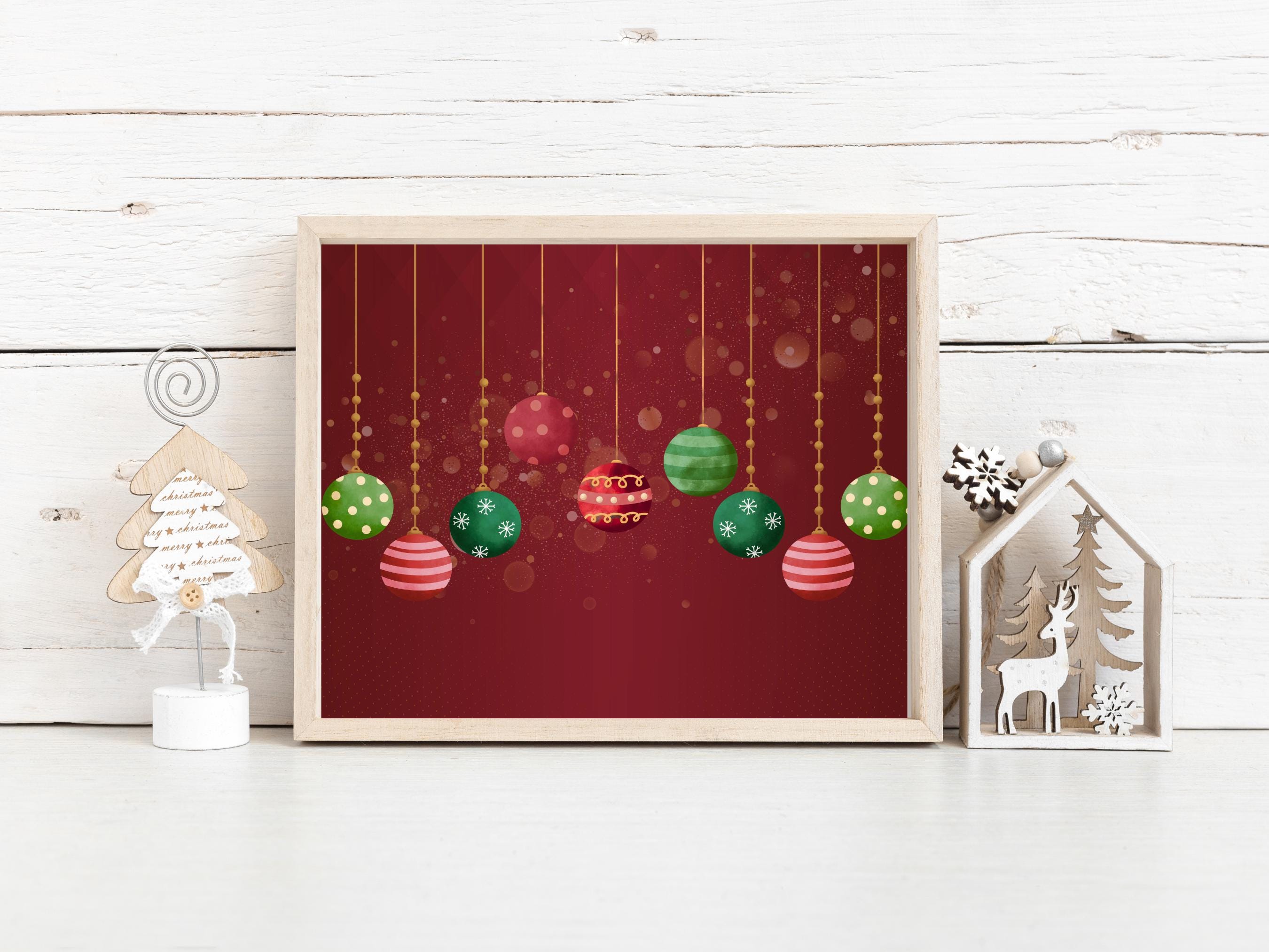 Vintage Christmas Wall Art - Red Ornament Collection 🎄✨ Step back in time and bring a touch of nostalgic holiday magic into your home with our Vintage Christmas Ornament Collection wall art! This beautiful digital print captures the timeless charm of classic holiday decor, making it the perfect piece to brighten your space for the festive season. Imagine the warm glow of twinkling lights reflecting off these beautifully designed ornaments, hanging gracefully against a rich, velvety burgundy background. Each ornament, from delicate snowflakes to cheerful polka dots, is crafted with a watercolor-like texture, evoking memories of Christmases past. It's more than just decor; it's a piece of holiday nostalgia.
