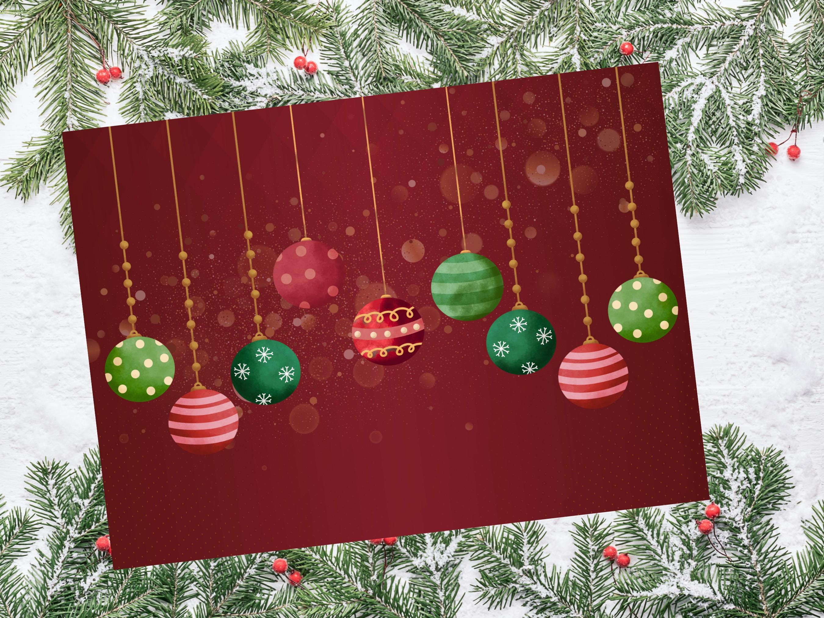 What You'll Receive 🎁 Instant Digital Download: One high-resolution PDF file. Size: 11 x 8.5 inches, perfect for standard letter-sized paper and easy framing. Design: A stunning collection of red, green, and gold vintage-style ornaments on a festive burgundy backdrop.