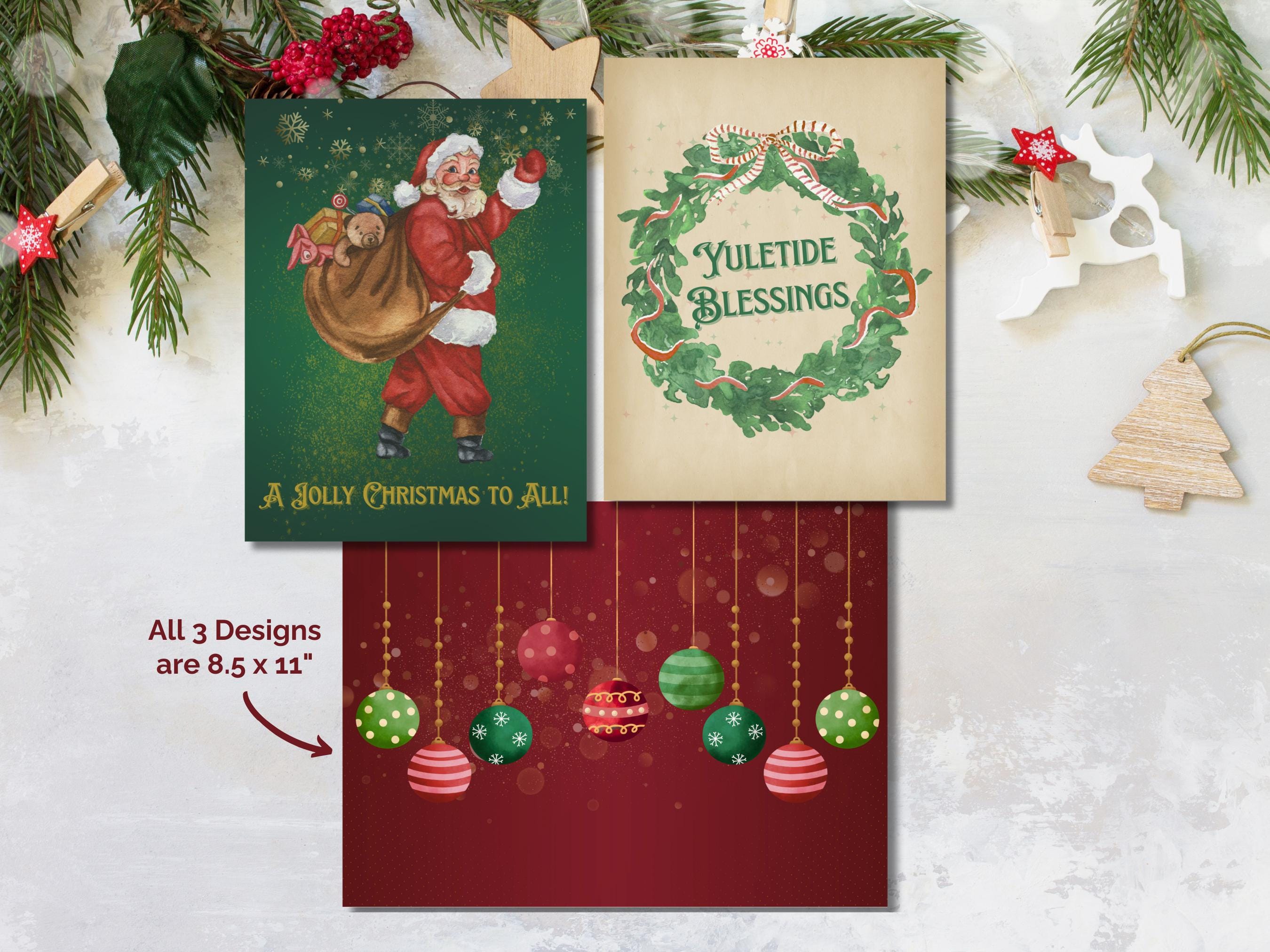 What's Included in Your Collection This delightful trio of high-resolution digital art files captures the timeless spirit of Christmas. You will receive three distinct pieces, each with its own unique vintage charm: