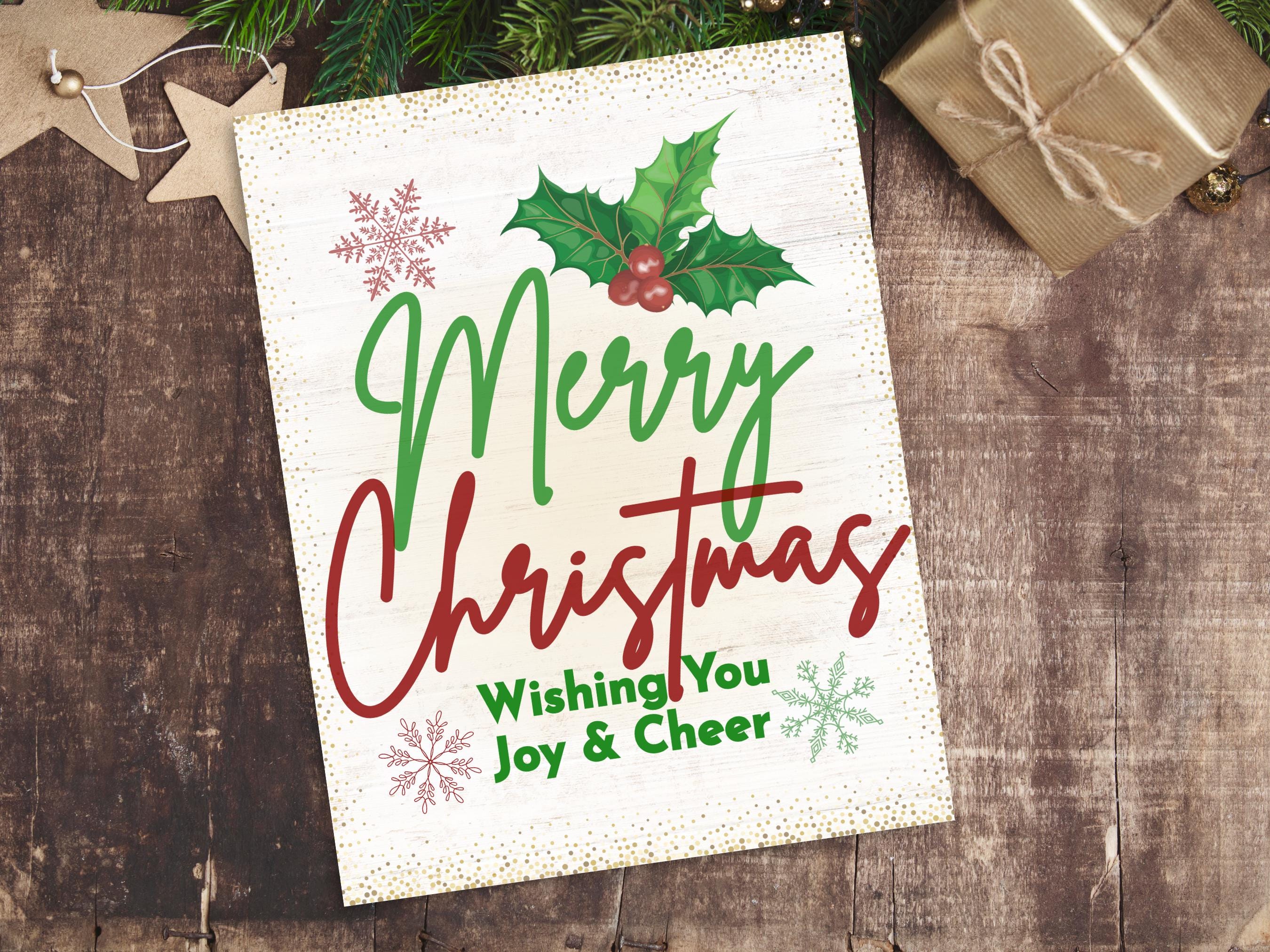 Bring the warmth and charm of a rustic farmhouse Christmas into your home with this beautiful "Merry Christmas" printable wall art! 🎄✨ Imagine the cozy feeling of the holidays filling your space. This festive printable captures that perfectly, featuring elegant script, traditional holiday colors, and charming details like holly and sparkling snowflakes against a rustic white wood background. It's the perfect touch to make your home feel merry and bright.