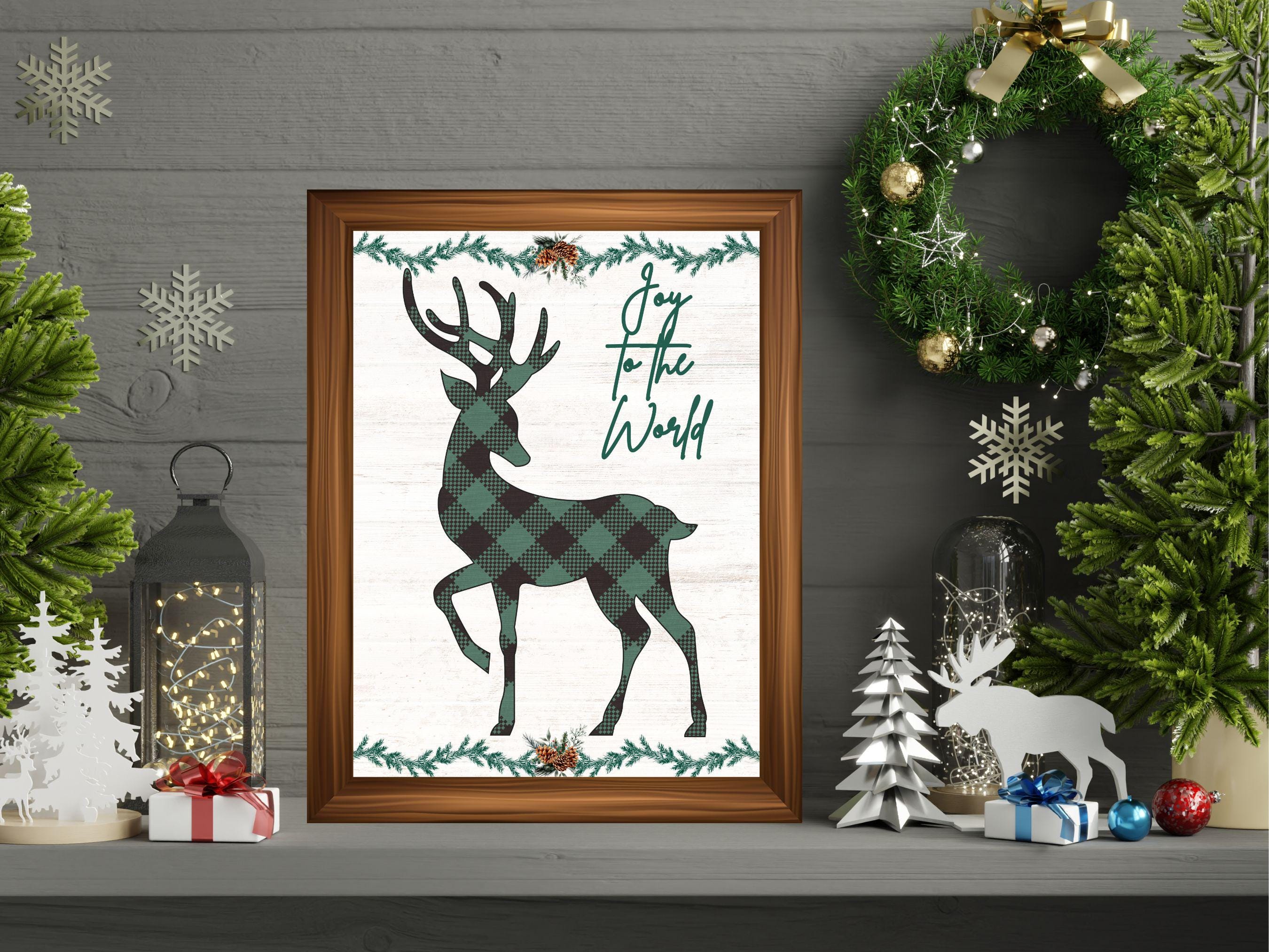 What You'll Receive Instant Digital Download: Get immediate access to your art! No waiting for shipping. 💌 High-Quality PDF File: One 8.5x11" PDF, perfectly sized for standard home printers. Stunning Design: A beautifully crafted piece featuring a buffalo plaid reindeer, "Joy to the World" text, and rustic pine garland details.