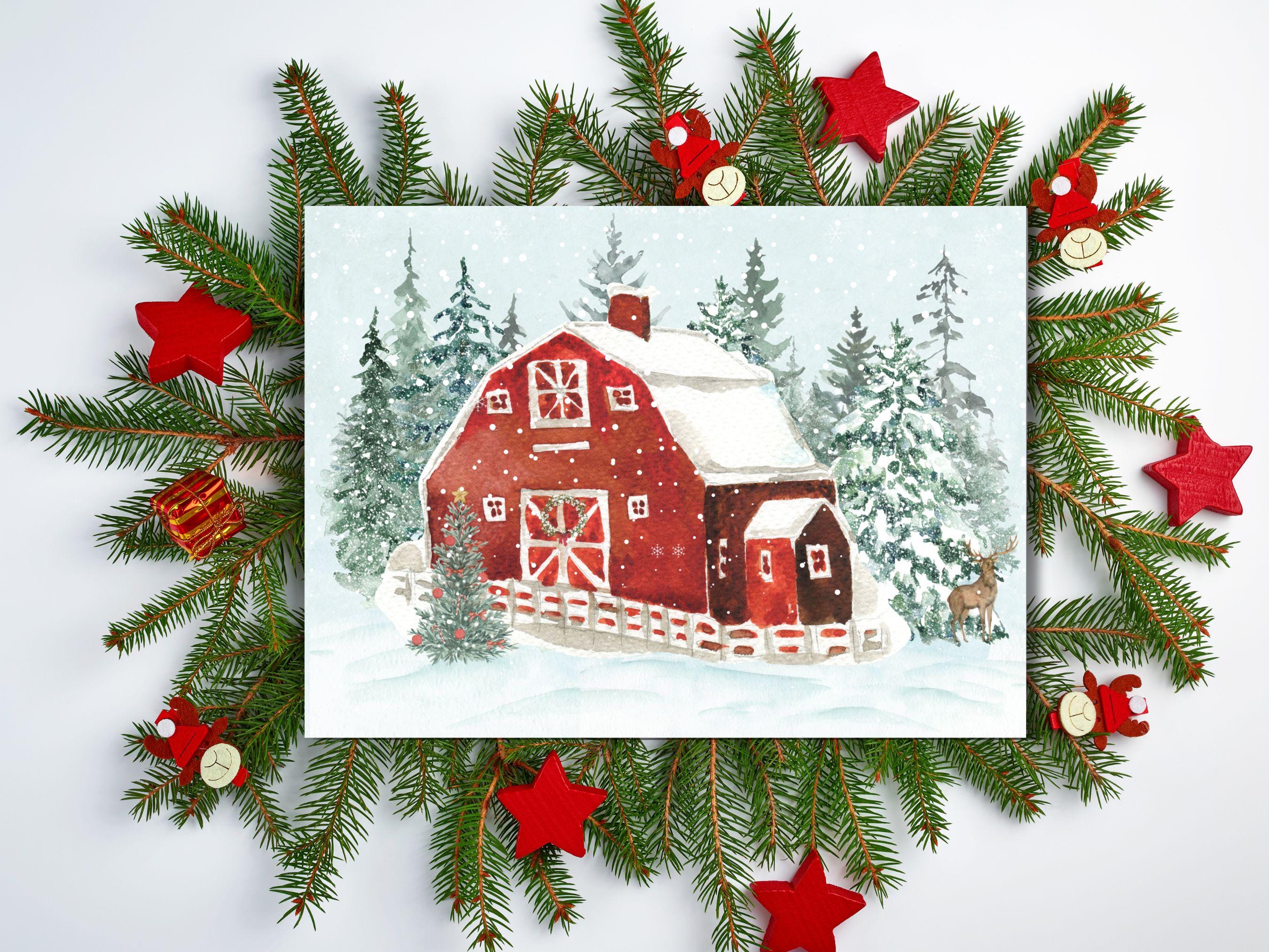 What You'll Love ❤️ Imagine the cozy feeling of a winter wonderland right on your walls. This beautiful print is designed to evoke the peaceful, magical spirit of the holidays. Festive Farmhouse Charm: Features a classic red barn, a decorated Christmas tree, and gentle snowfall, creating a timeless rustic aesthetic. Warm & Inviting: The soft watercolor style adds a touch of handmade artistry, making any room feel more welcoming and bright. Instant Holiday Decor: As a digital download, you get immediate access to the file. Simply print, frame, and display for an instant touch of Christmas magic! ✨