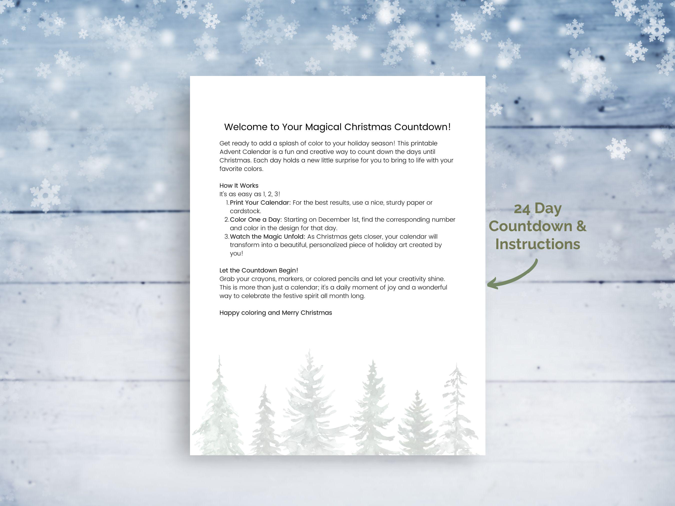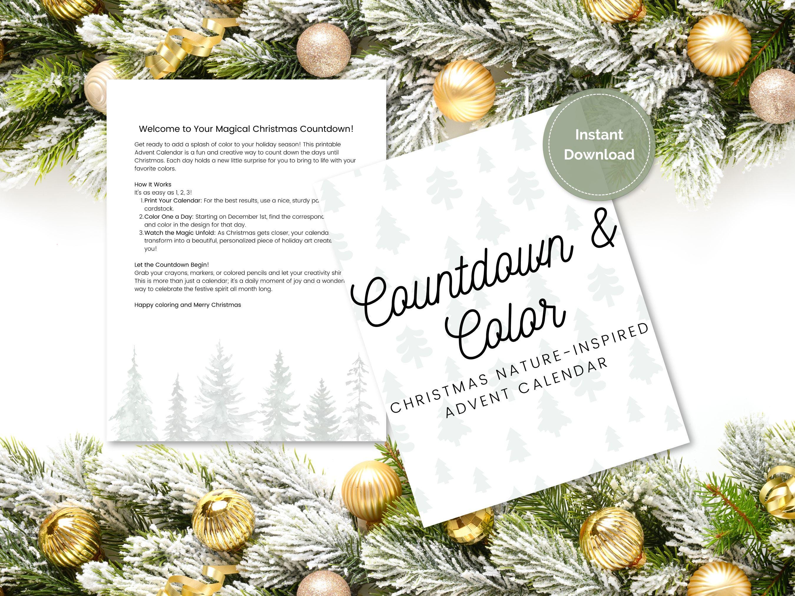 💌 How It Works Purchase this listing. Download your PDF file instantly. Print it on your favorite paper (we recommend cardstock for the best coloring experience!). Color & Countdown! Grab your markers, colored pencils, or crayons and let the woodland magic begin!