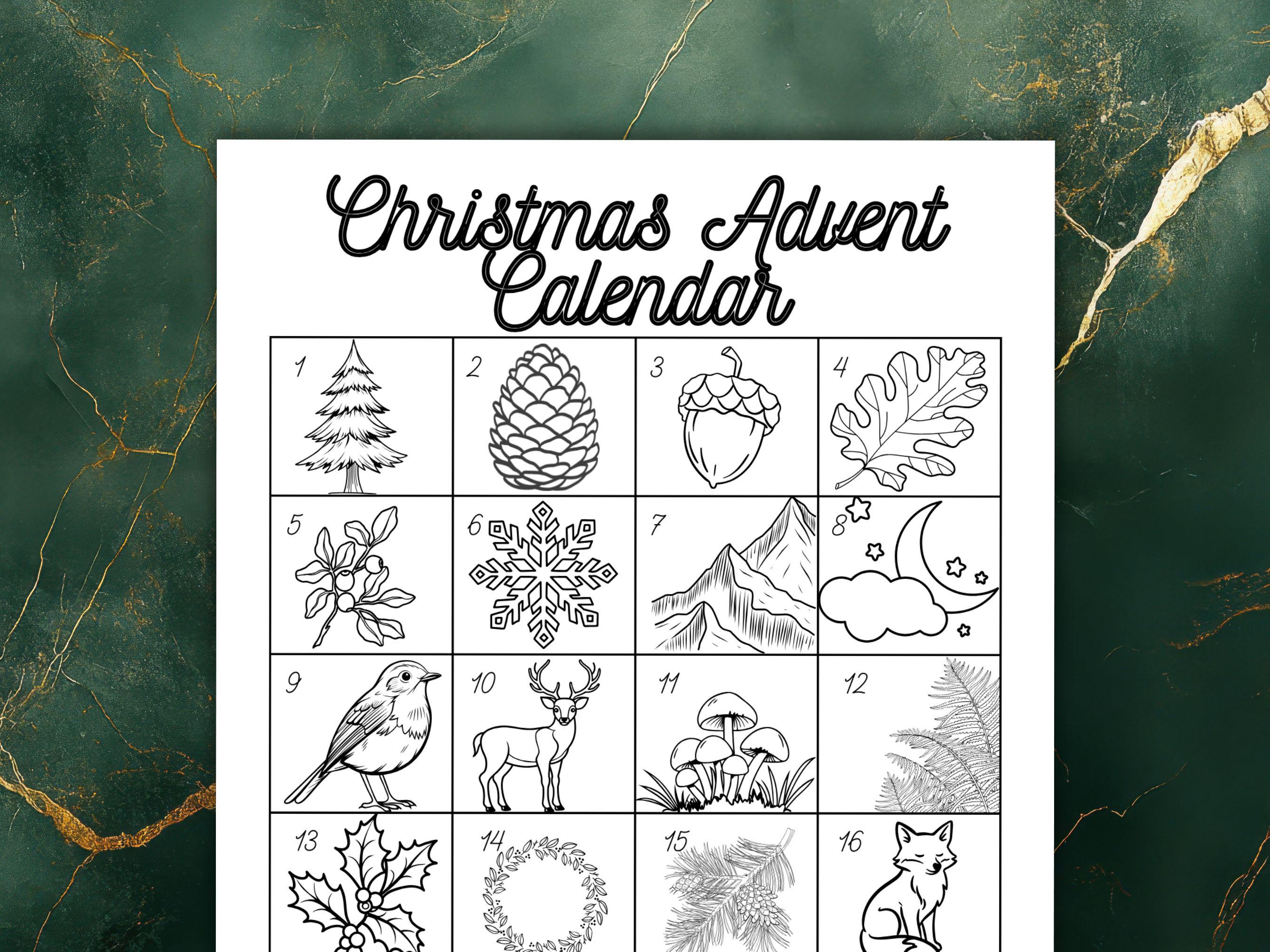 🦉 What Makes It So Special? A Daily Dose of Nature: Starting December 1st, color one enchanting icon a day—from festive pine trees and woodland creatures to twinkling stars. Watch as your calendar transforms into a personalized piece of natural art! Fun for All Ages: Whether you're a child with a fresh box of crayons or an adult seeking a peaceful holiday activity, this coloring page is designed for everyone to enjoy. Instant Holiday Fun: No waiting for shipping! This is a digital download you can print right from the comfort of your cozy home.
