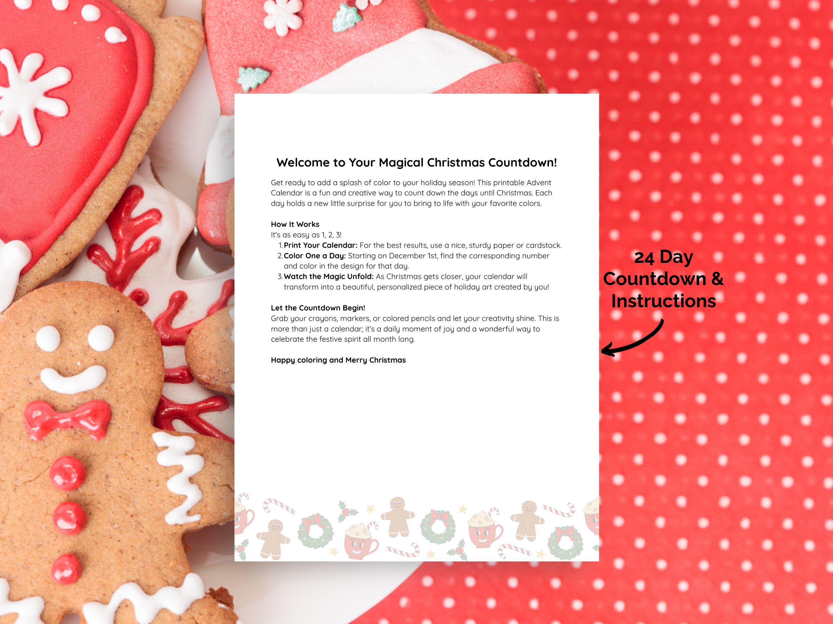 💌 How It Works Purchase this listing. Download your PDF file instantly from your Etsy account. Print it on your favorite paper (we recommend cardstock for the best coloring results). Color & Countdown! Grab your crayons, markers, or colored pencils and start a new, sweet holiday tradition.