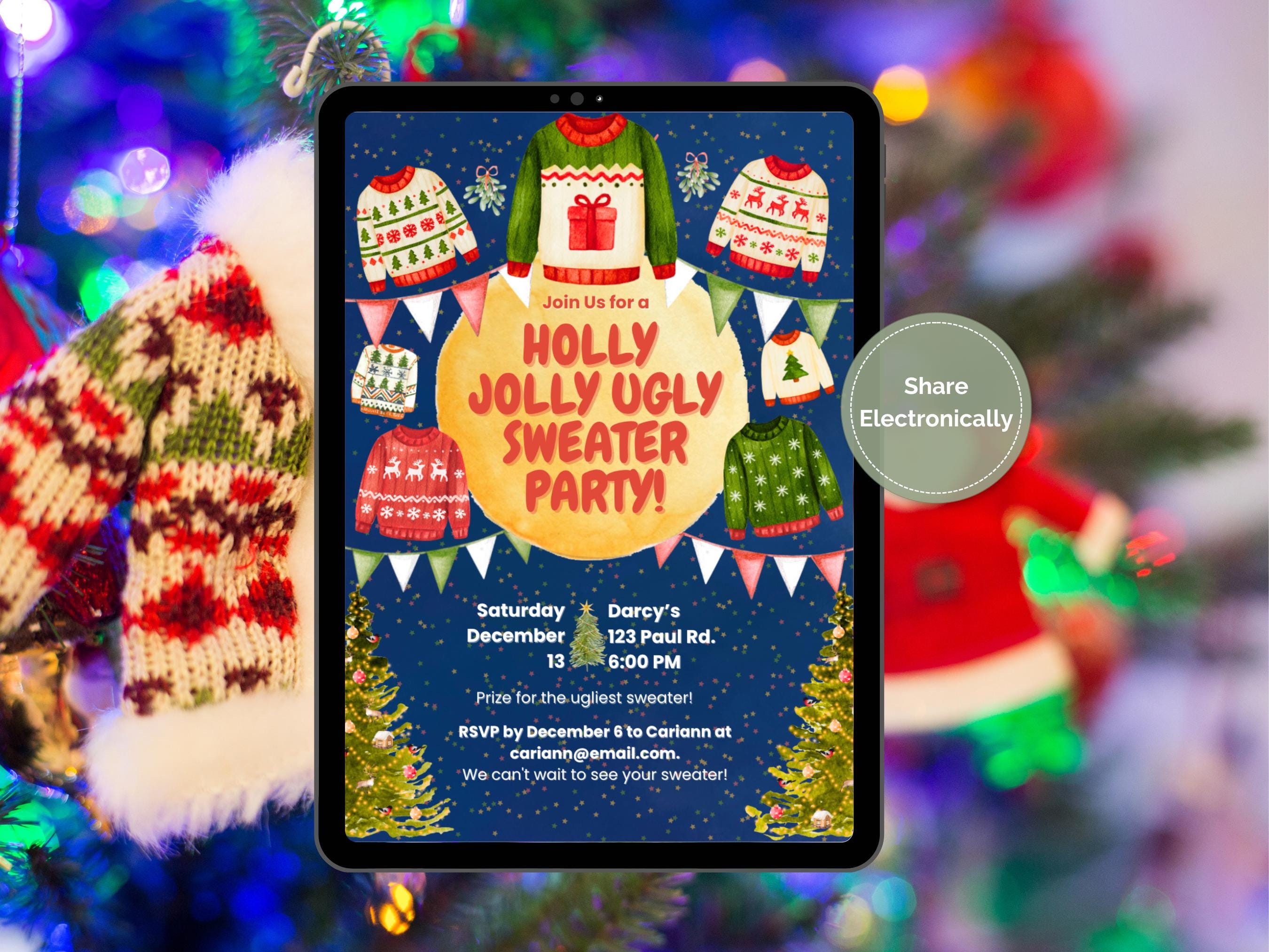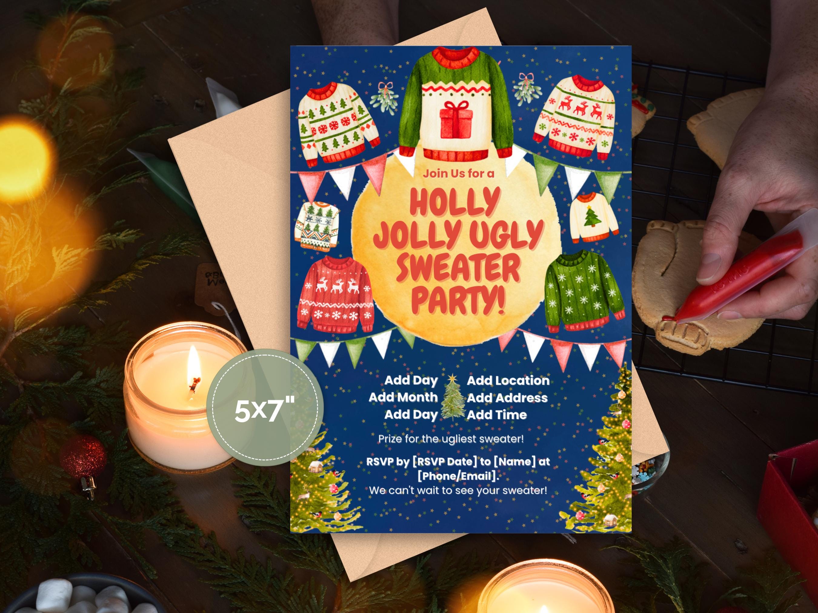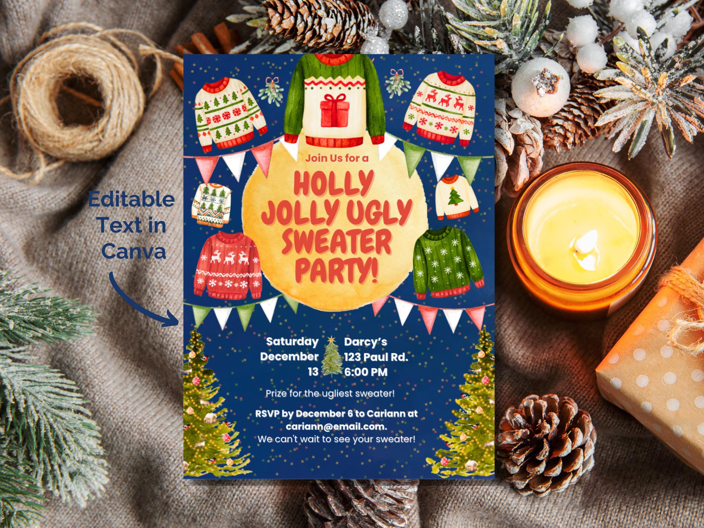 Whimsical Ugly Sweater Party Invitation ✨🎄 Get ready to host the most memorable holiday bash of the season with our Whimsical Ugly Sweater Party Invitation! 🎅 This charming, printable invite is bursting with festive fun, featuring a magical starry background, playful watercolor sweaters, and cheerful holiday details. It’s the perfect way to get your guests excited for a night of cozy, ugly fun!