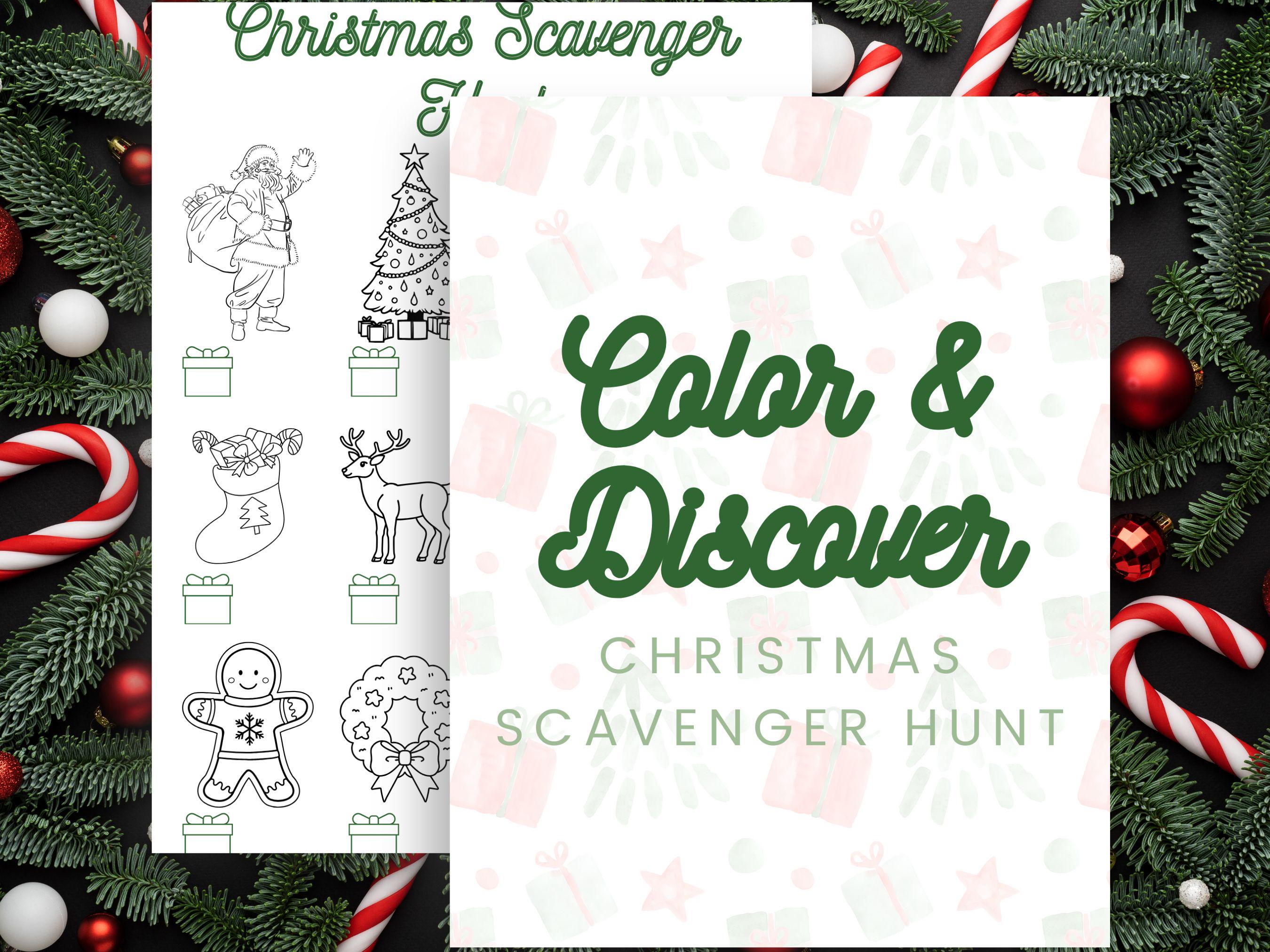 Color & Discover: Christmas Scavenger Hunt for Kids & Families Spark holiday magic 🎄✨ with our Color & Discover: Christmas Scavenger Hunt! This printable 8.5x11" PDF activity is the perfect way to bring your family together for a festive adventure.! 🎄✨ This printable 8.5x11" PDF activity is the perfect way to bring your family together for a festive adventure. Watch as your little ones search for iconic holiday treasures like Santa Claus 🎅, candy canes 🍬, and twinkling lights, all while adding their own creative touch by coloring in each discovery.