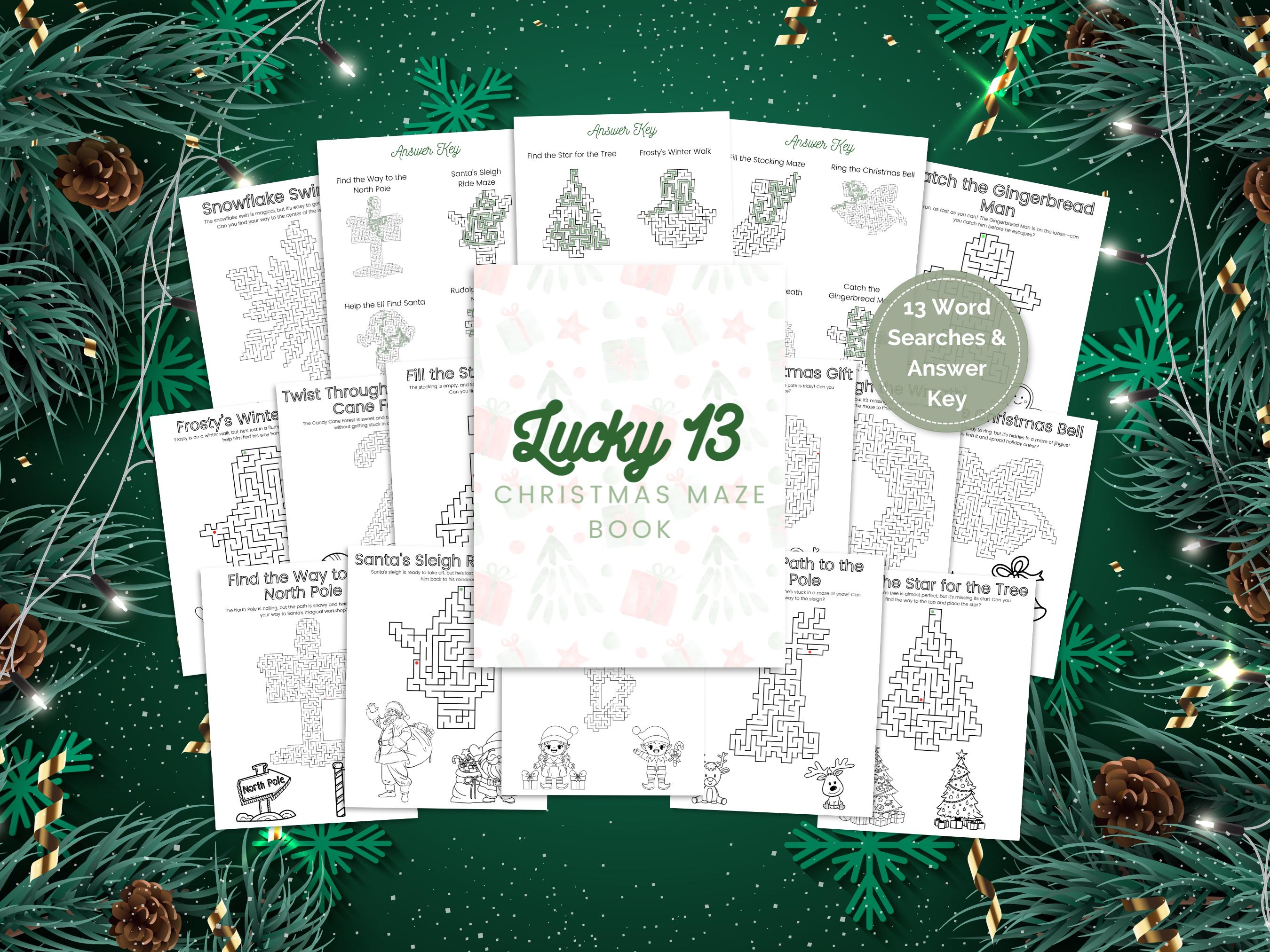 ✨ What’s Inside: 13 unique Christmas mazes with charming themes like Santa, reindeer, snowmen, candy canes, and more! Fun and festive prompts at the top of each page to spark excitement and imagination. Perfect for family gatherings, classroom activities, or cozy winter nights by the fire.