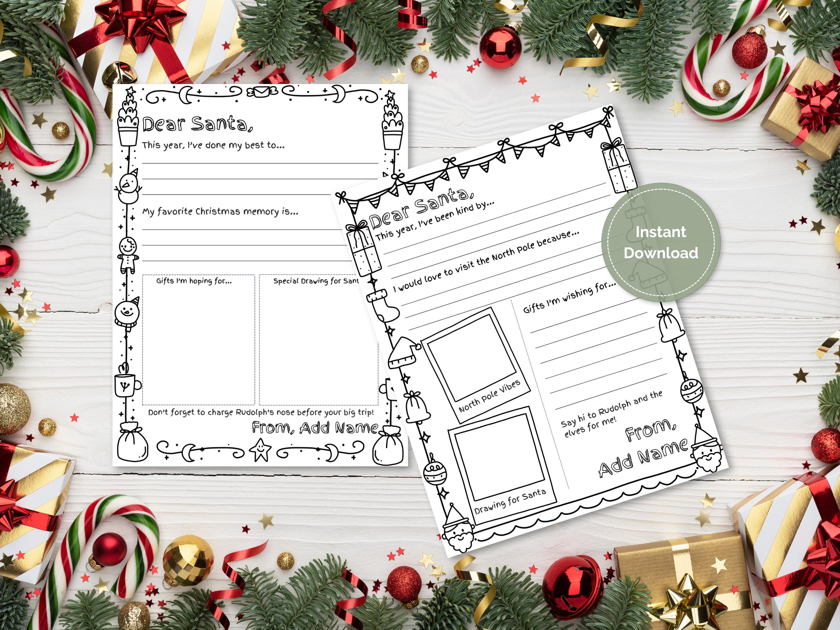 4 "Letters to Santa" Designs (Colorable & Fun!):