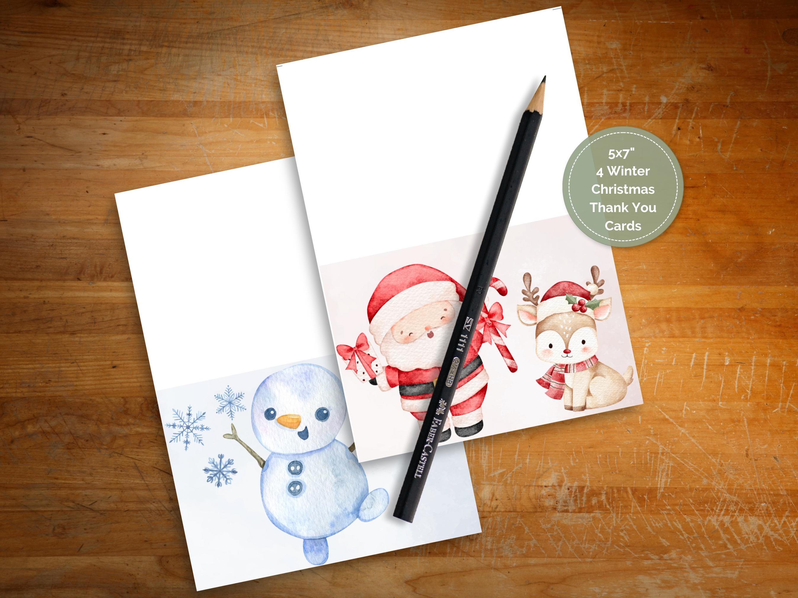 ❄️ Printable Winter Thank You Cards - Set of 4 🎄 Spread holiday cheer and gratitude with this adorable set of 4 printable winter thank-you cards! Perfect for Christmas, winter weddings, small business packaging, or simply saying "thank you" in style. 💌✨