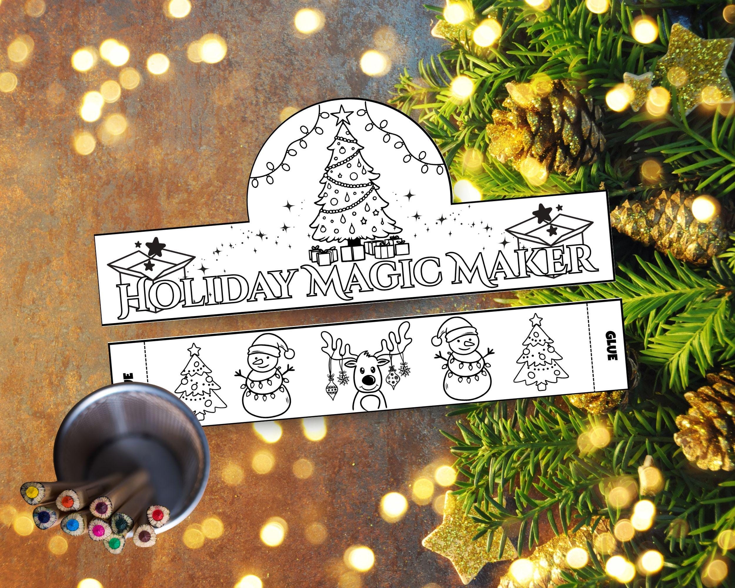 How It Works Creating these festive crowns is as easy as 1-2-3! Print: Download the files and print them at home. We recommend using cardstock for extra durability. Color: Let the creativity begin! Break out the crayons, markers, or colored pencils and bring each design to life. 🖍️ Assemble: Simply cut out the crown and the included adjustable bands, then tape or glue the ends to create the perfect fit.