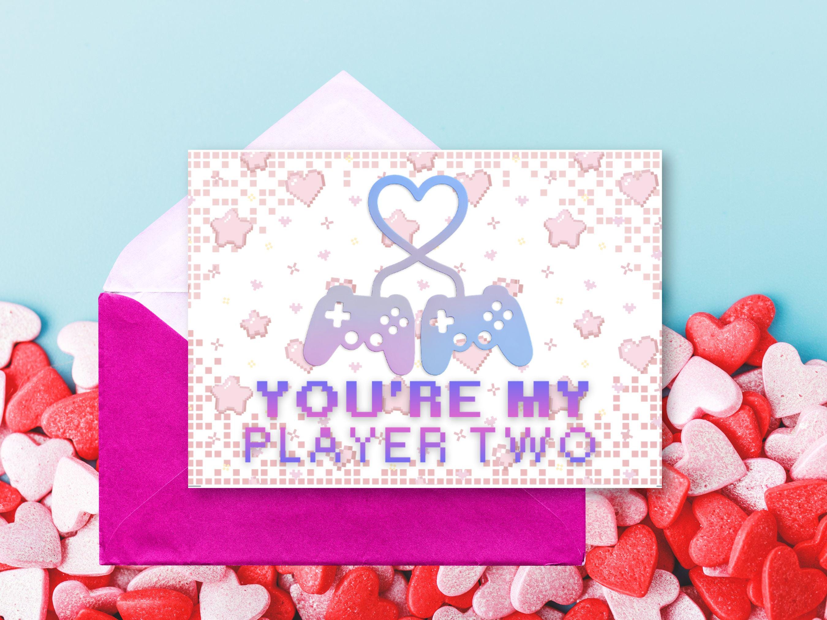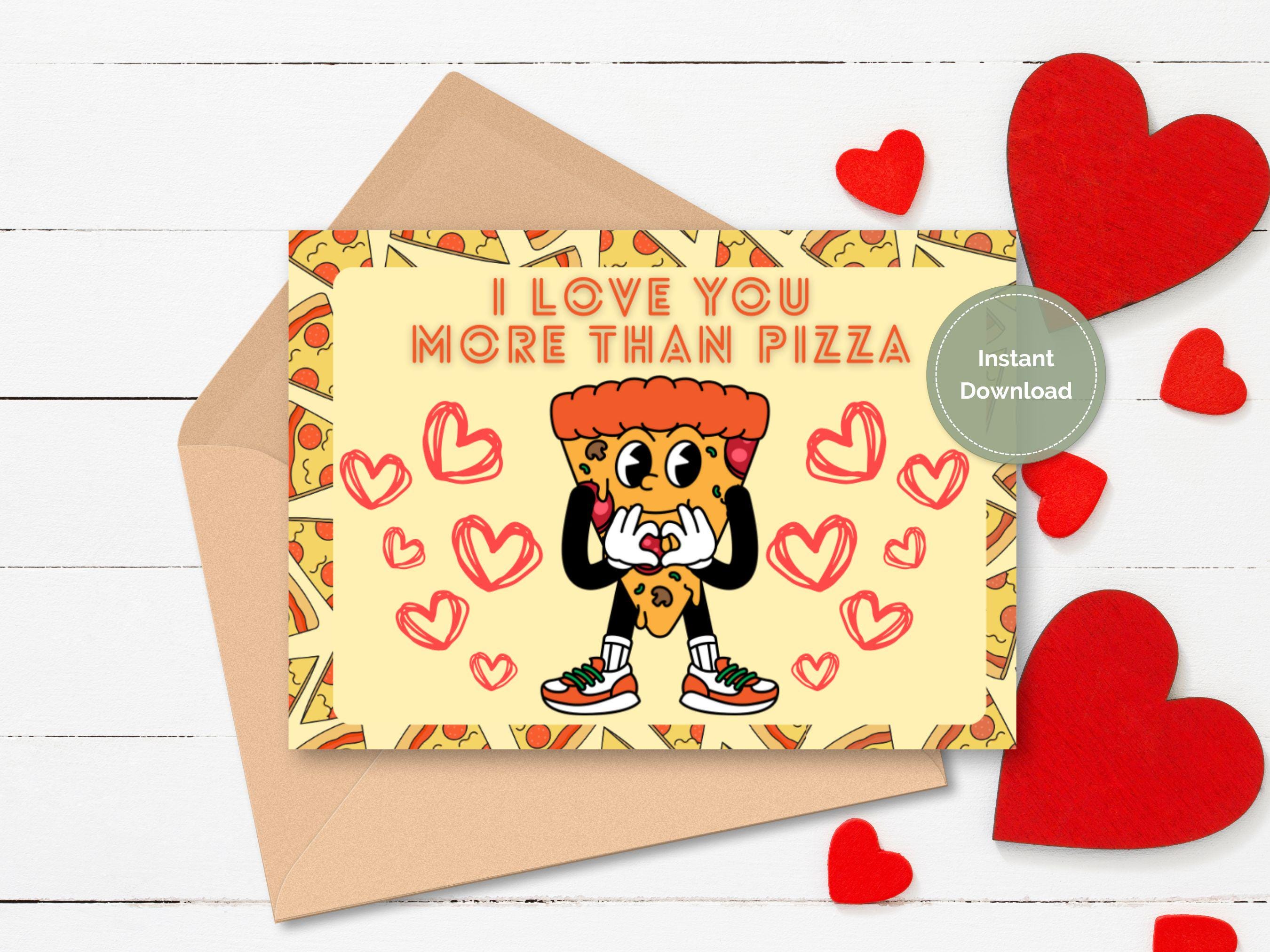 Designs: 🎮 "You're My Player Two": A gaming-inspired card featuring two cute controllers connected by a heart-shaped cable, surrounded by pixelated hearts. Perfect for your co-op partner in life! 🍕 "I Love You More Than Pizza": A food-themed card with a smiling pizza slice surrounded by hearts and cheesy goodness. Because love is cheesy, and so is pizza!