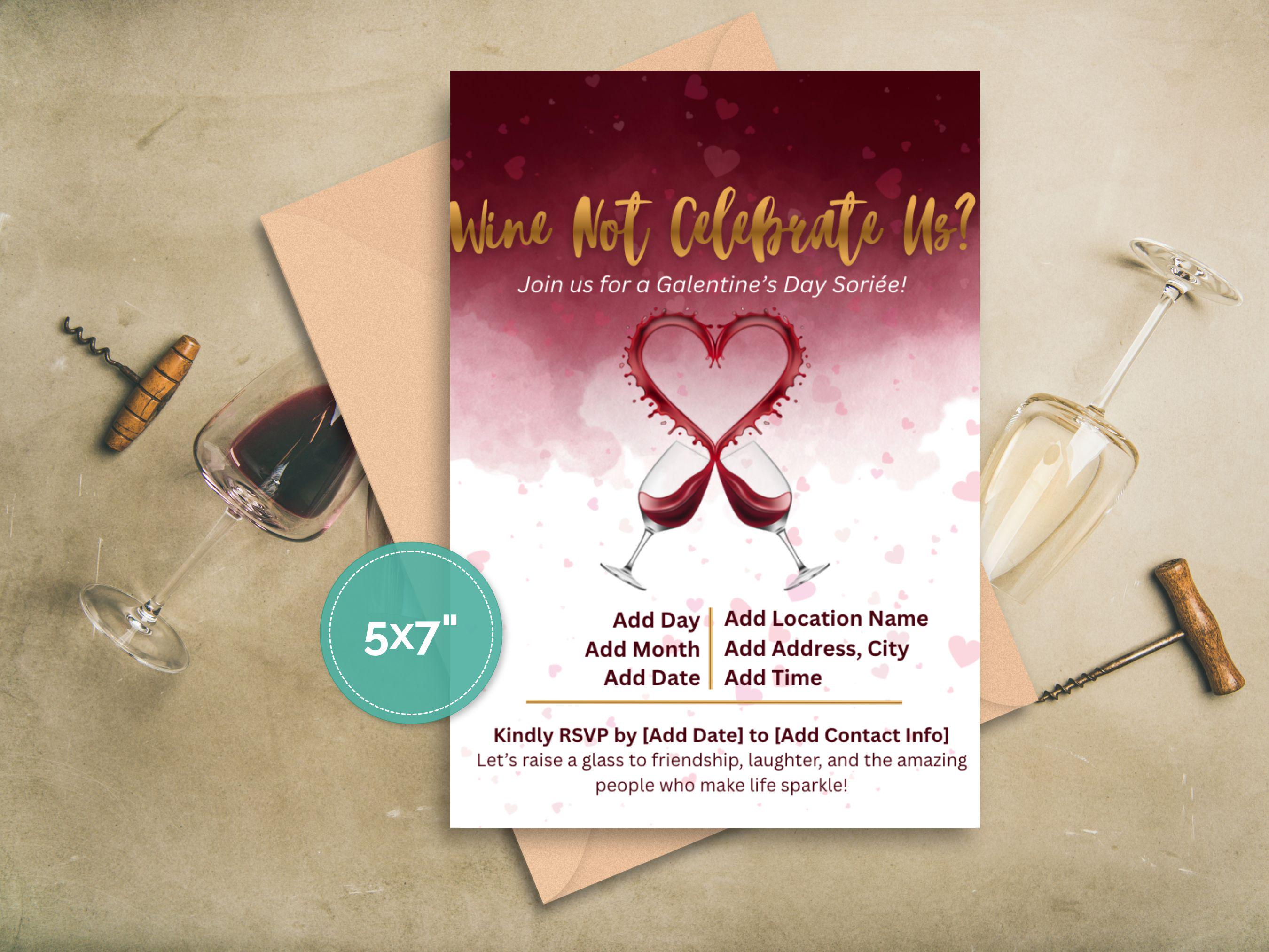 Wine Not Celebrate Us? Galentine's Day Invitation 🍷✨ Raise a glass to friendship with our elegant "Wine Not Celebrate Us?" printable invitation! This sophisticated design is the perfect way to gather your best friends for a memorable Galentine's Day Soirée. With a stunning heart-shaped wine splash and luxurious gold accents, this invite sets the tone for a night of laughter, love, and celebration.