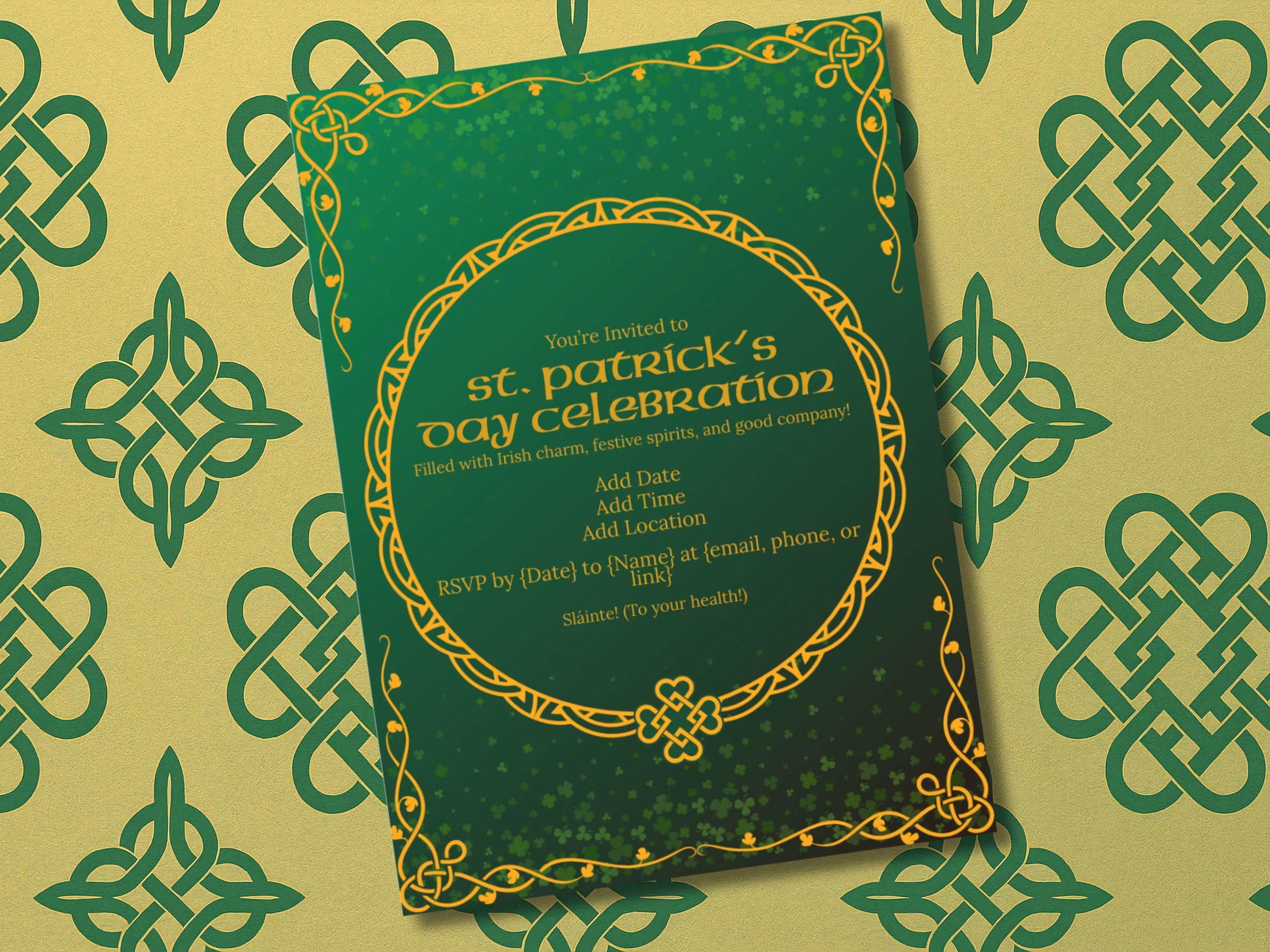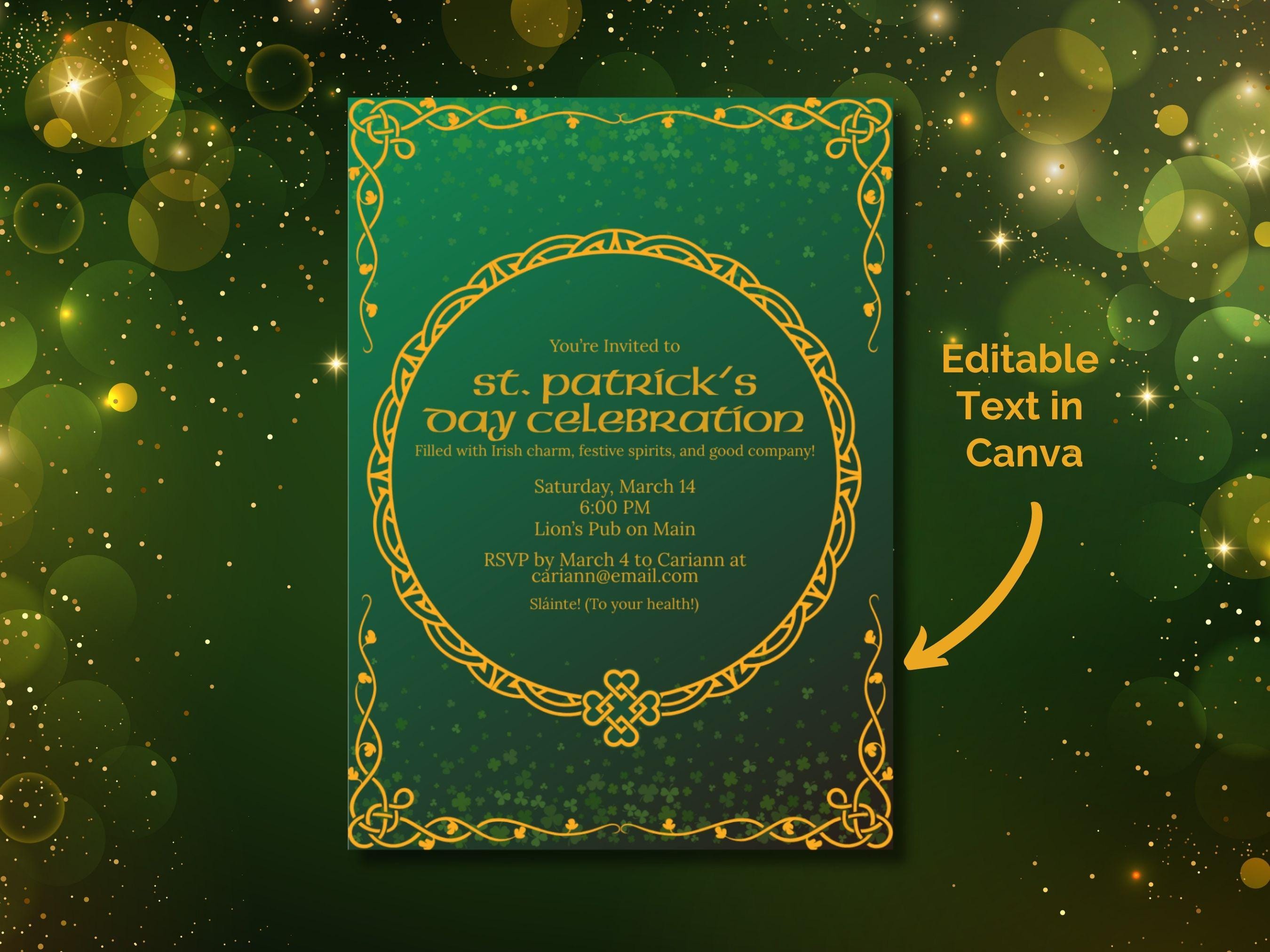 Important Editing Note ⚠️ Please note that only the text is editable in this design. The background graphics—including the Celtic knots and shamrock patterns—are fixed and cannot be moved or changed. This ensures the design integrity remains perfect for your print!