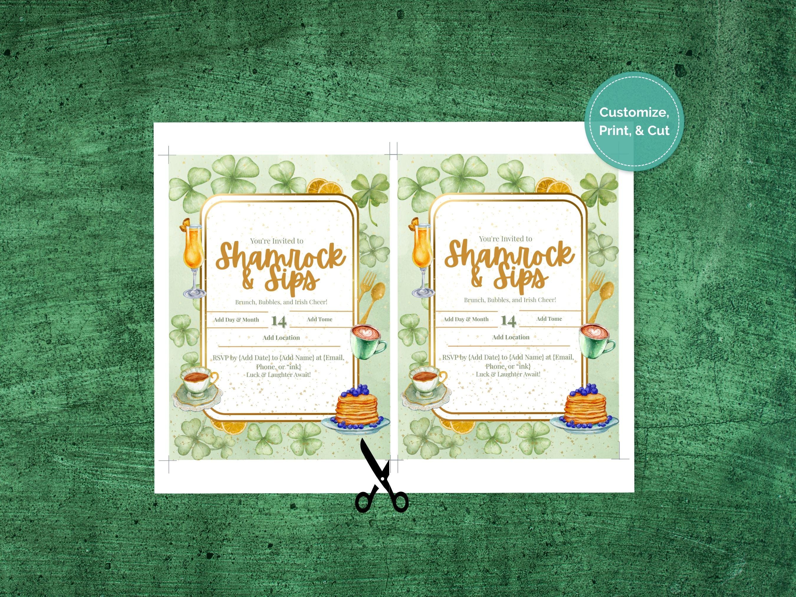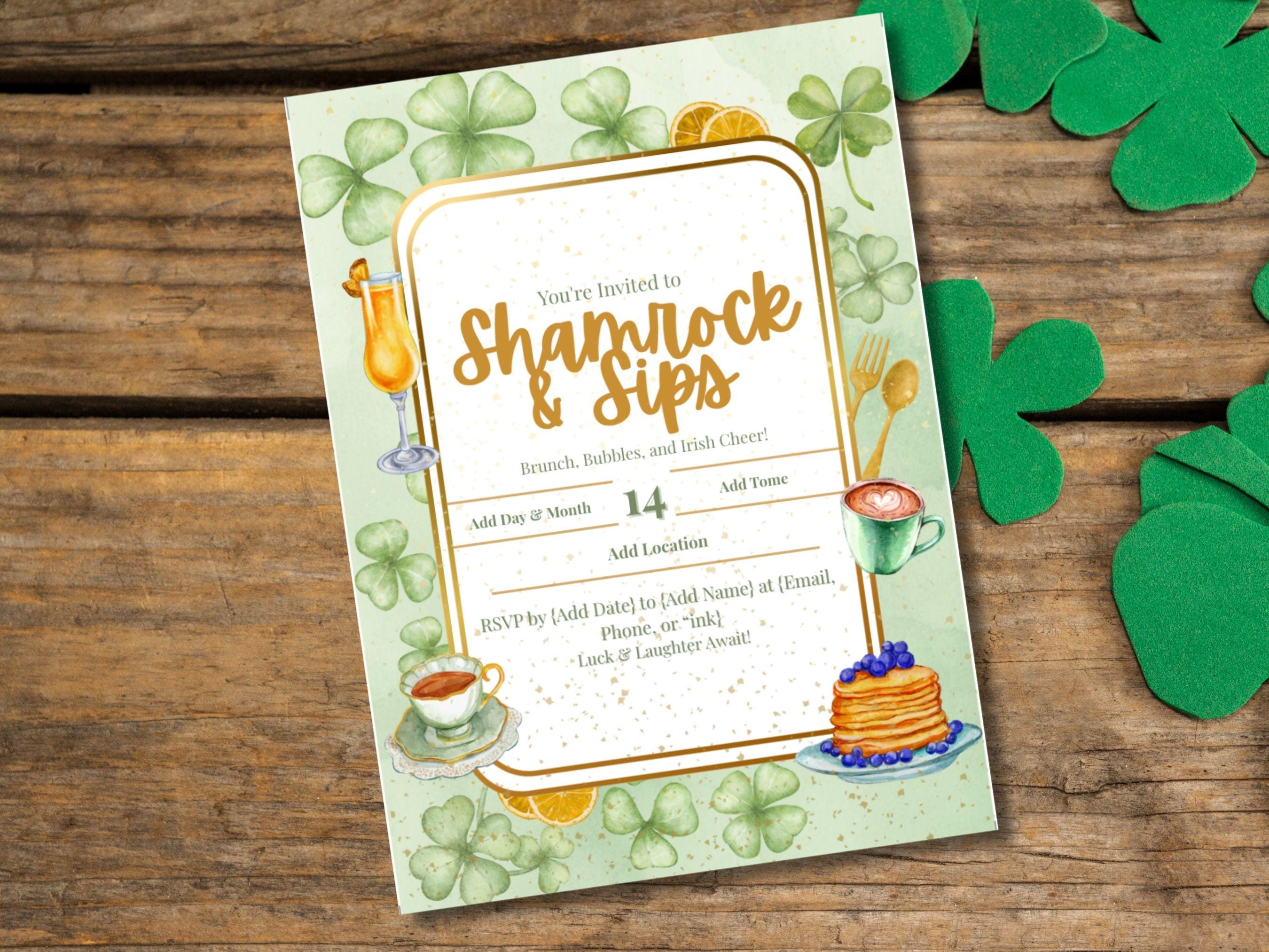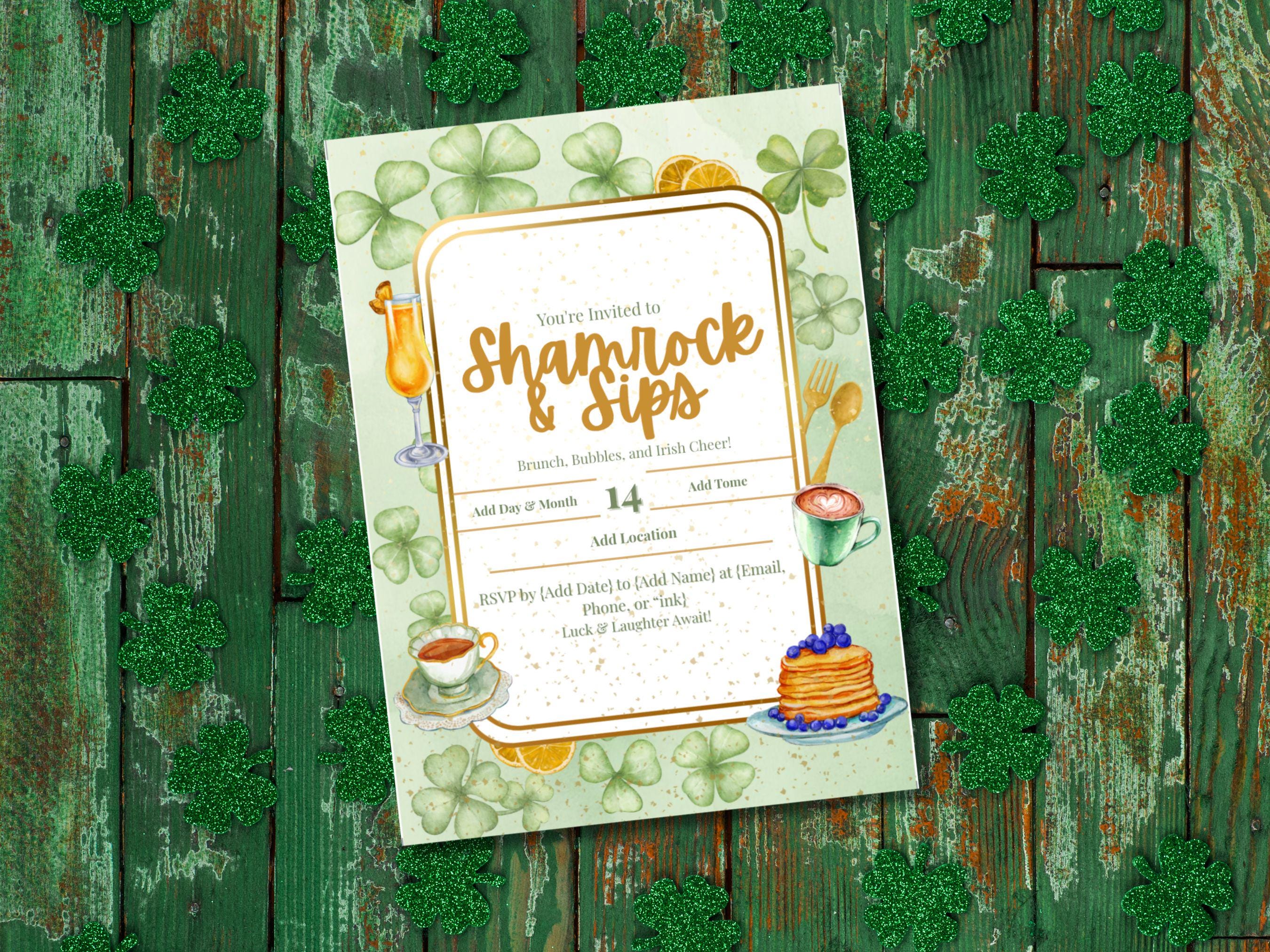 St. Patrick's Day Brunch Invitation | Shamrock & Sips Editable Template 🥂☘️ Host a morning of luck, laughter, and delicious bites with our elegant St. Patrick's Day Brunch invitation! Designed for the perfect "Shamrock & Sips" gathering, this template combines festive charm with sophisticated style to set the tone for your celebration. ✨
